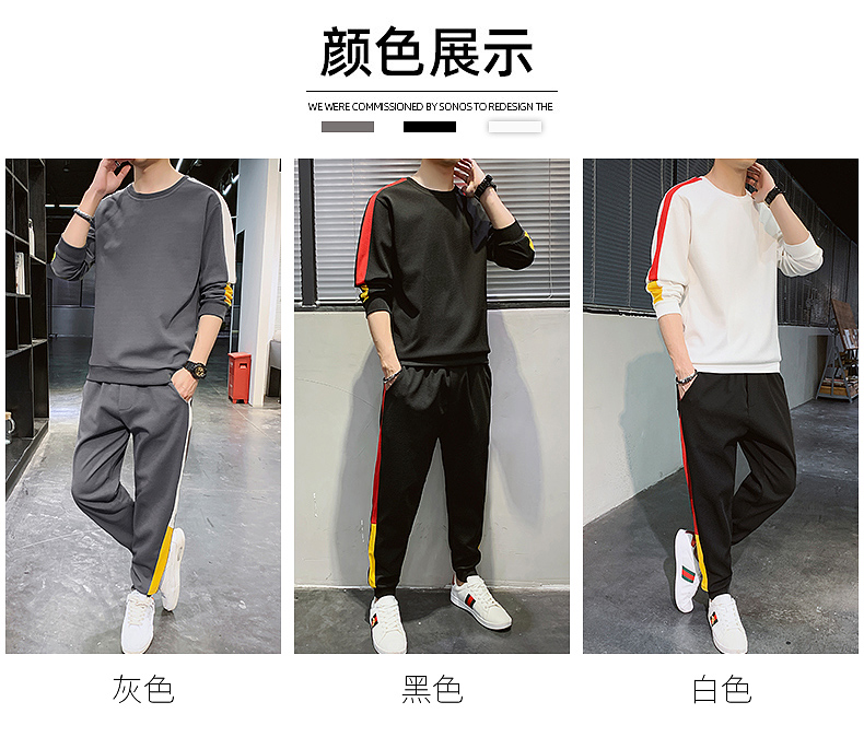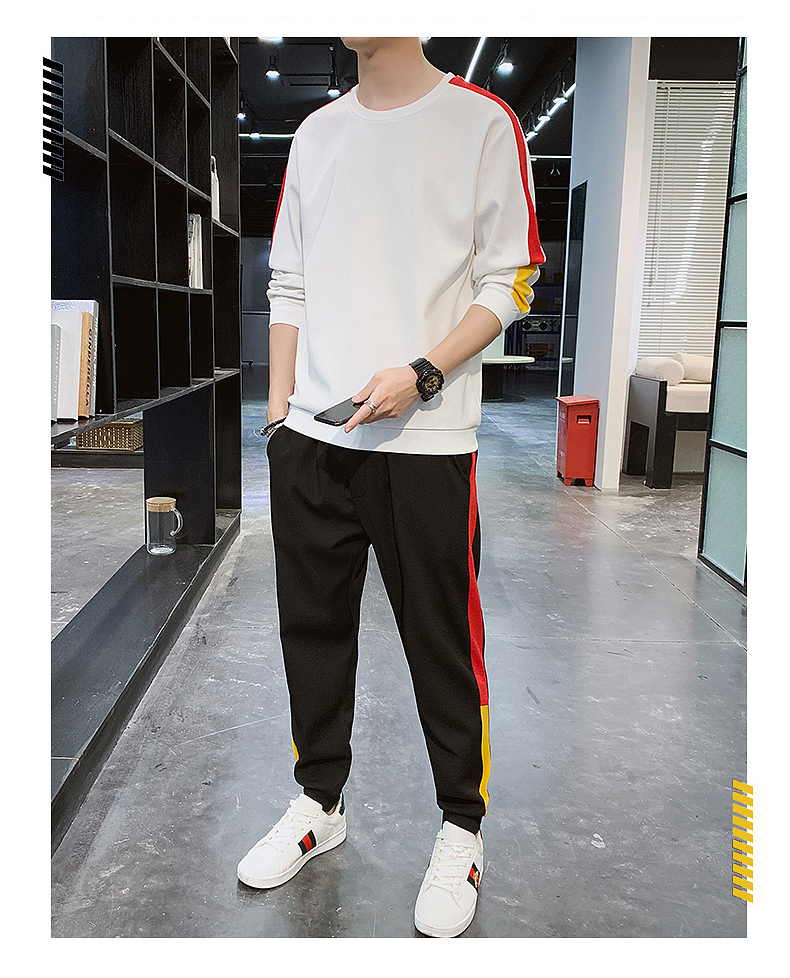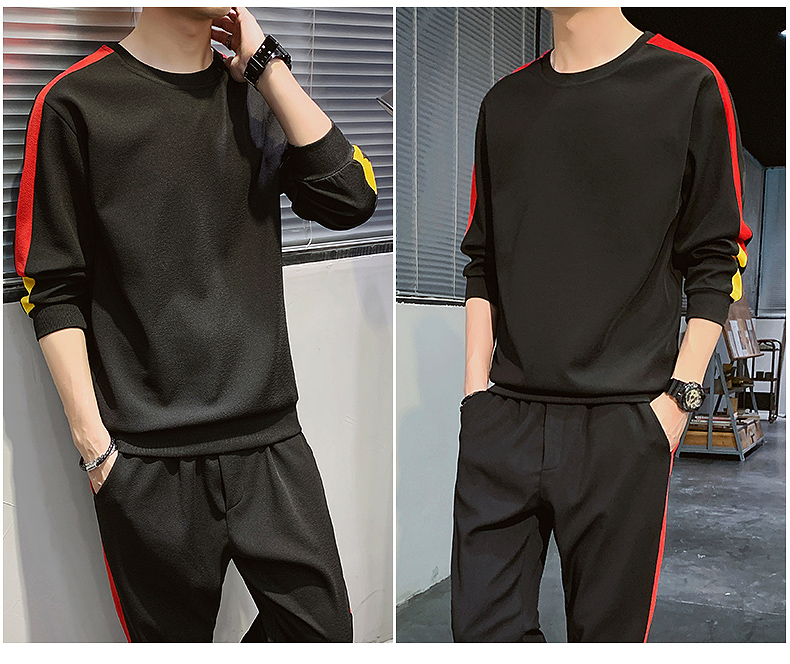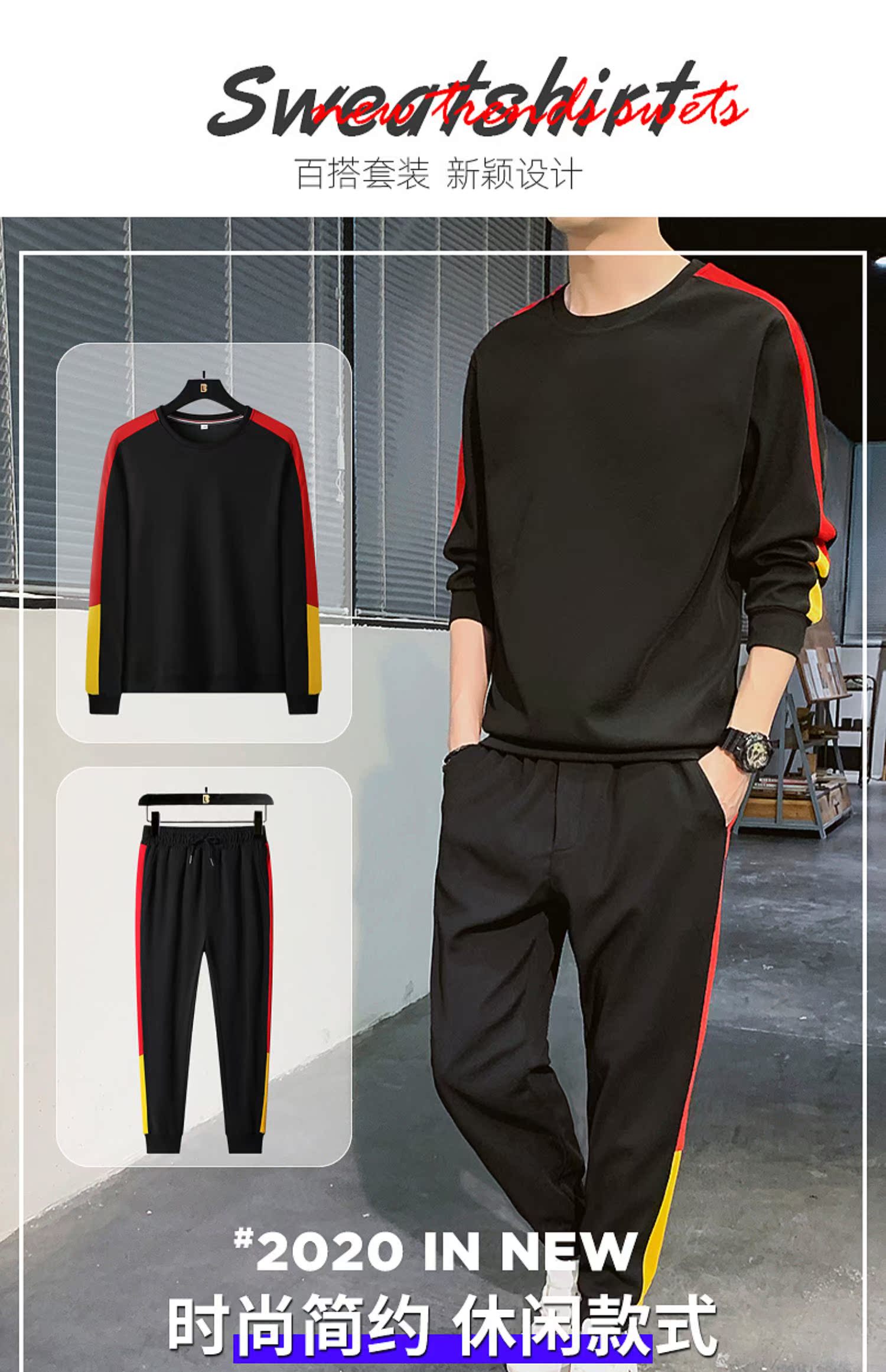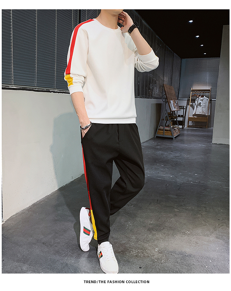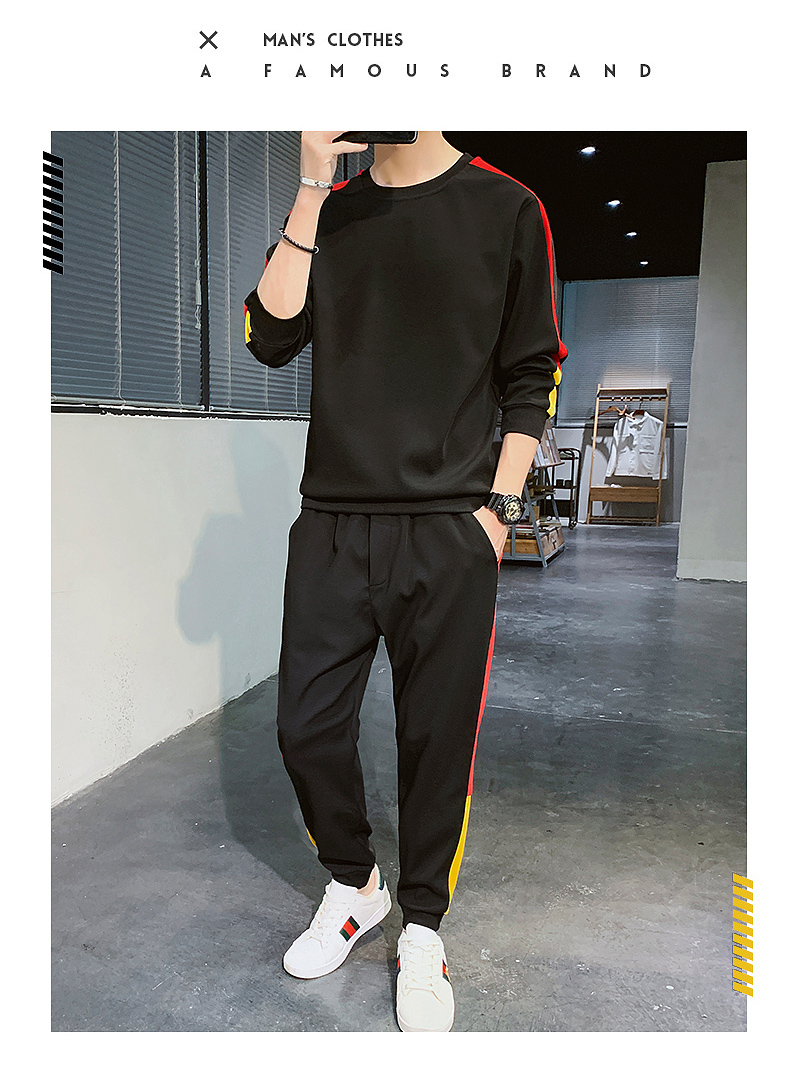 大码套装韩版t恤长袖男两件套休闲运动套装