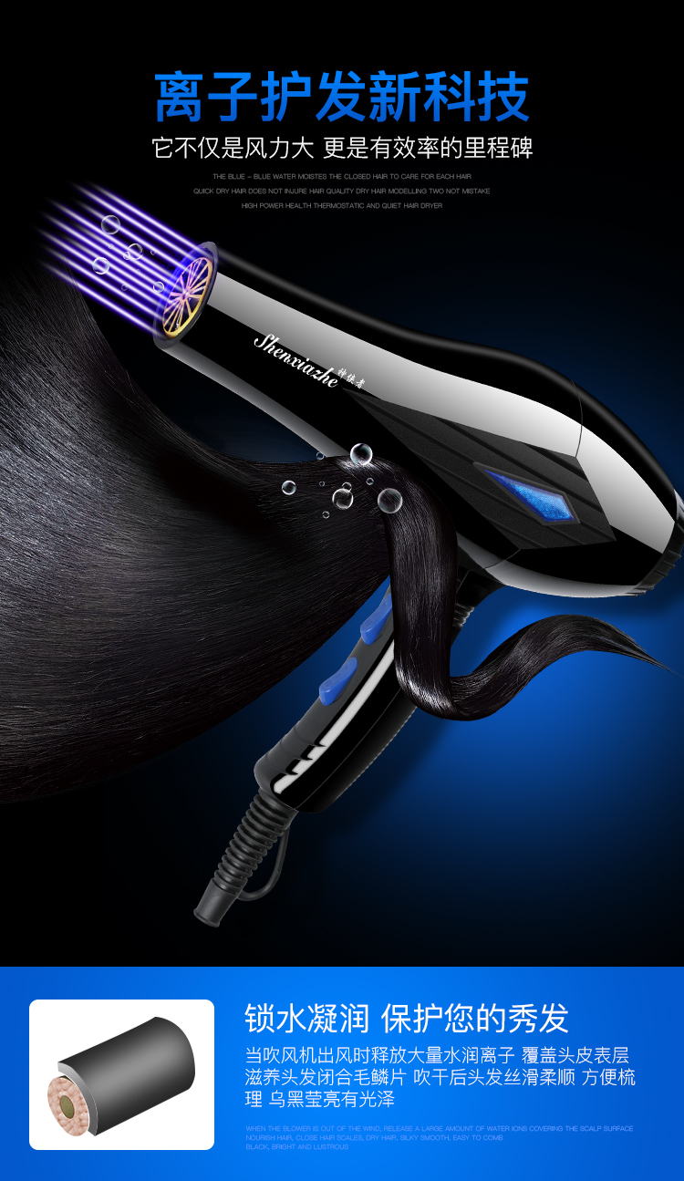 送【两把梳子,指甲套盒】分分钟速干,蓝光水润护发,德国电机风力大1.8米超长,静音运转,舒适安心,同等功率,更低辐射,放心抢购~