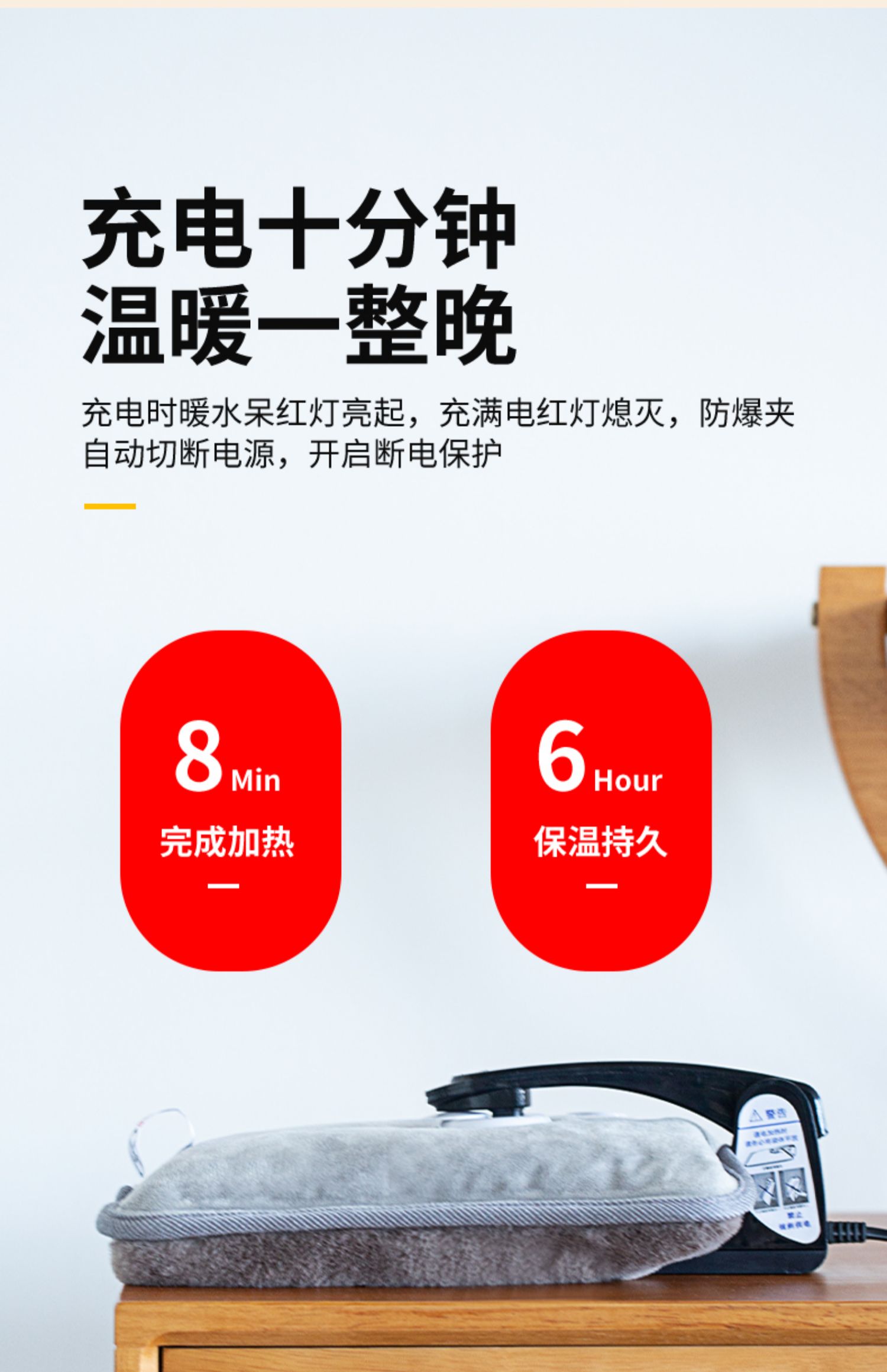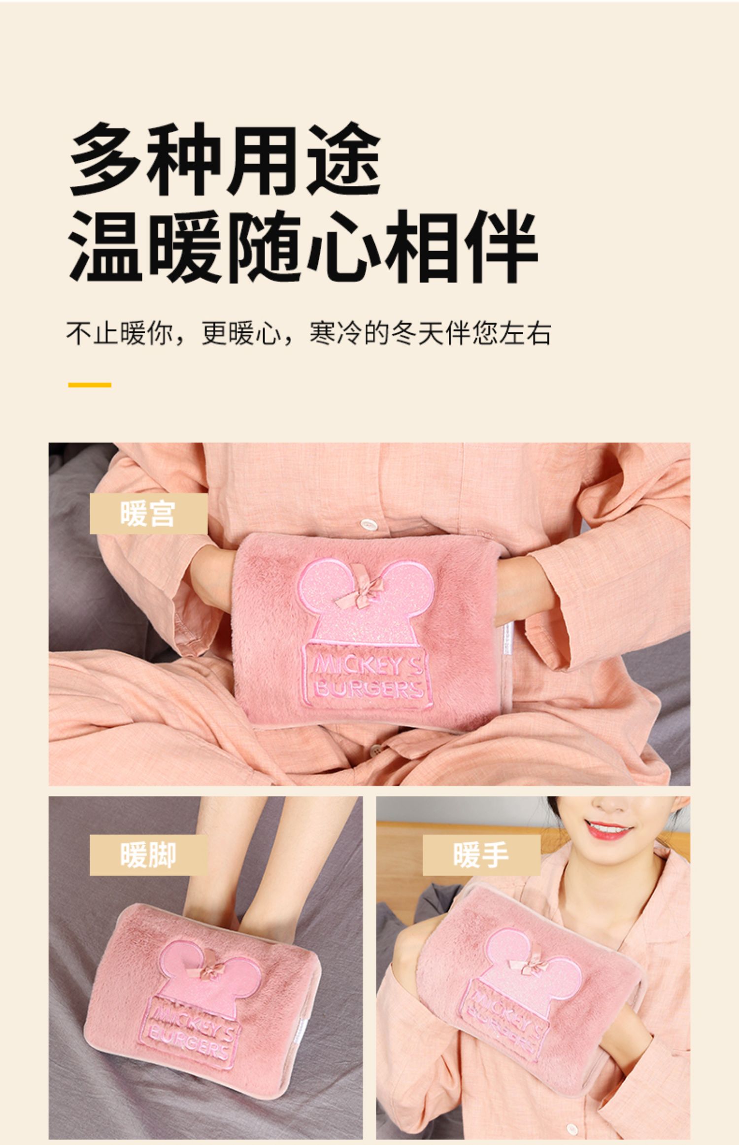 华生充电式防爆毛绒热水袋,安全防爆的卡通毛绒暖宝宝,快速加热,充电十分钟,温暖一整晚,底袋多层防爆,内已注水,水电分离,智能控温,达到温度后自动切断电源!赠运费险