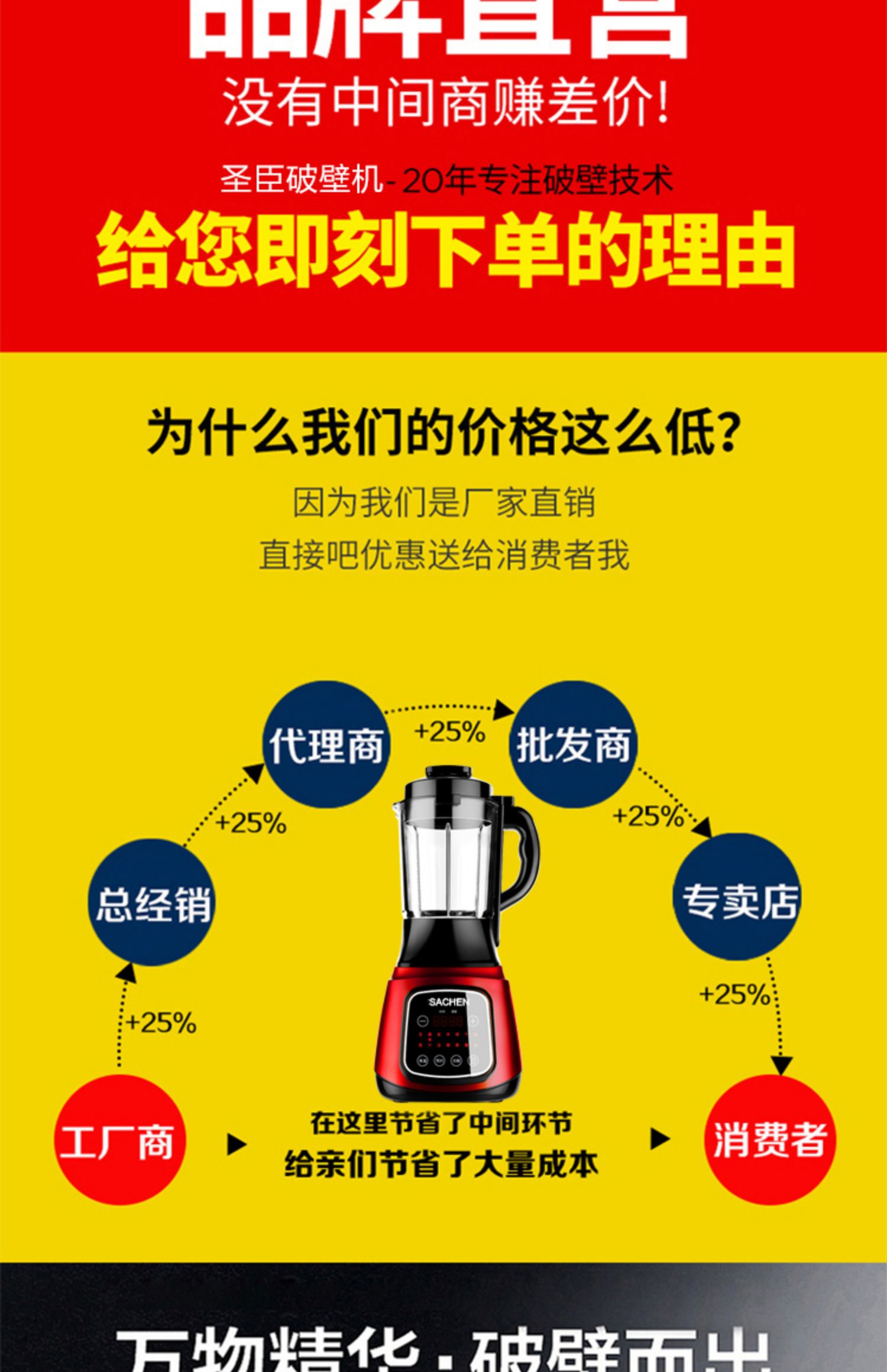 【爆款返场!】德国圣臣破壁机【碎玻璃,碎木块,轻轻松松】大功率搅拌机,高效快煮,12H智能预约,360度立体加热,八叶刀片,大马力电机八筋扰流杯,创新科技贴心设计。【赠运费险】
