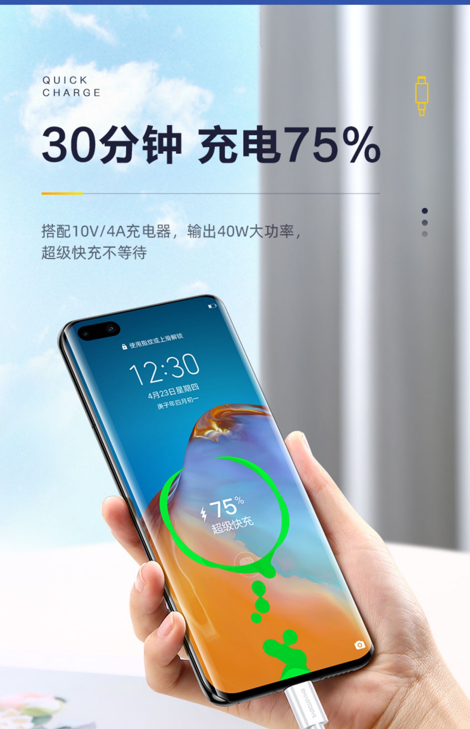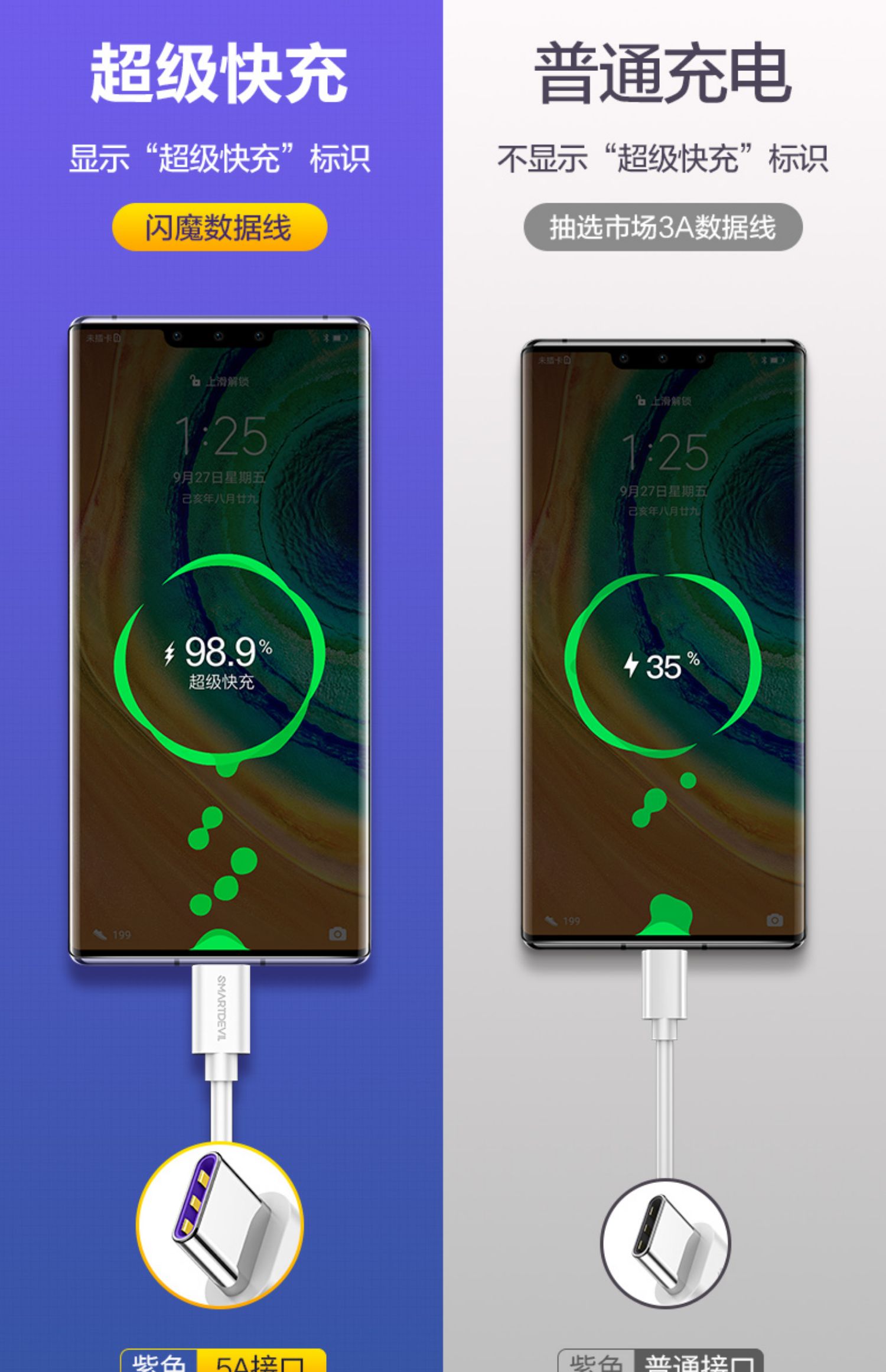 【闪魔官方旗舰店】超级快充,智能调节不伤机,华为小米,正反可插,采用加粗镀锡铜线芯,充电传输二合一,安卓系统通用!