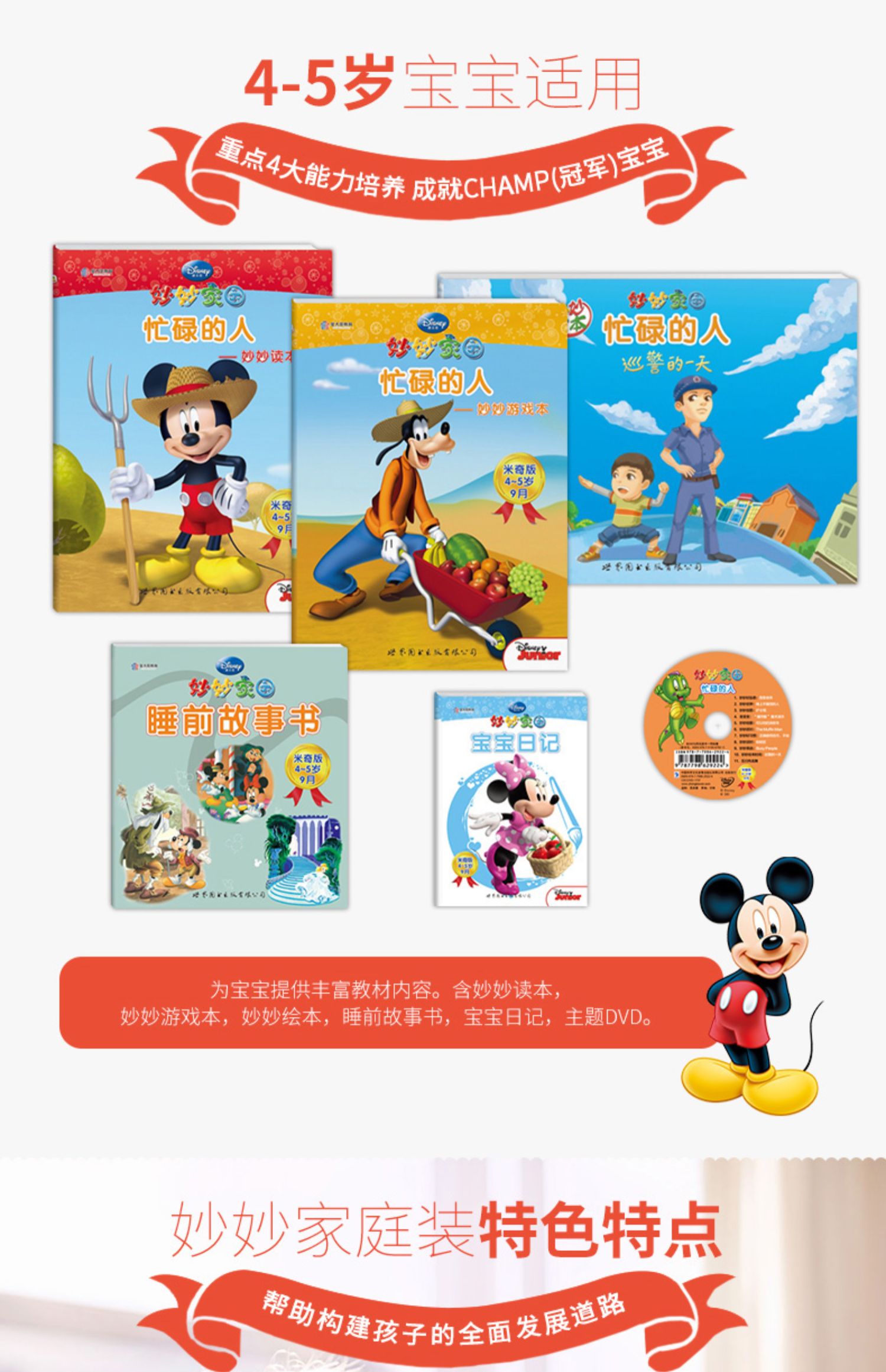 迪士尼正版授权,儿童绘本亲子游戏书,宝宝早教启蒙绘本,全5册,16开大版本,铜版纸印刷,内容有趣,插图精美,专为学前幼儿园宝贝贴心设计,促进宝宝语言表达能力,宝妈必备睡前故事书,赠光盘。