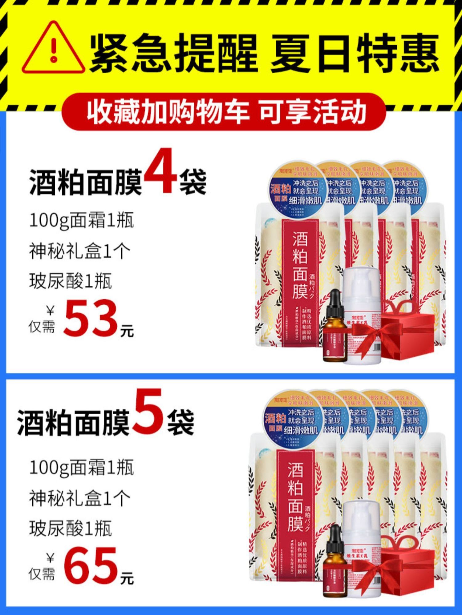 下单就送1份神秘礼物,满59元立享4件礼品,【拍2件更划算】带走肌肤暗沉!甜甜的酒香,涂抹后很舒服的润润的感觉!前几天,冒了好多小痘痘!连着敷了三天痘痘竟然都没了!【送运费险】