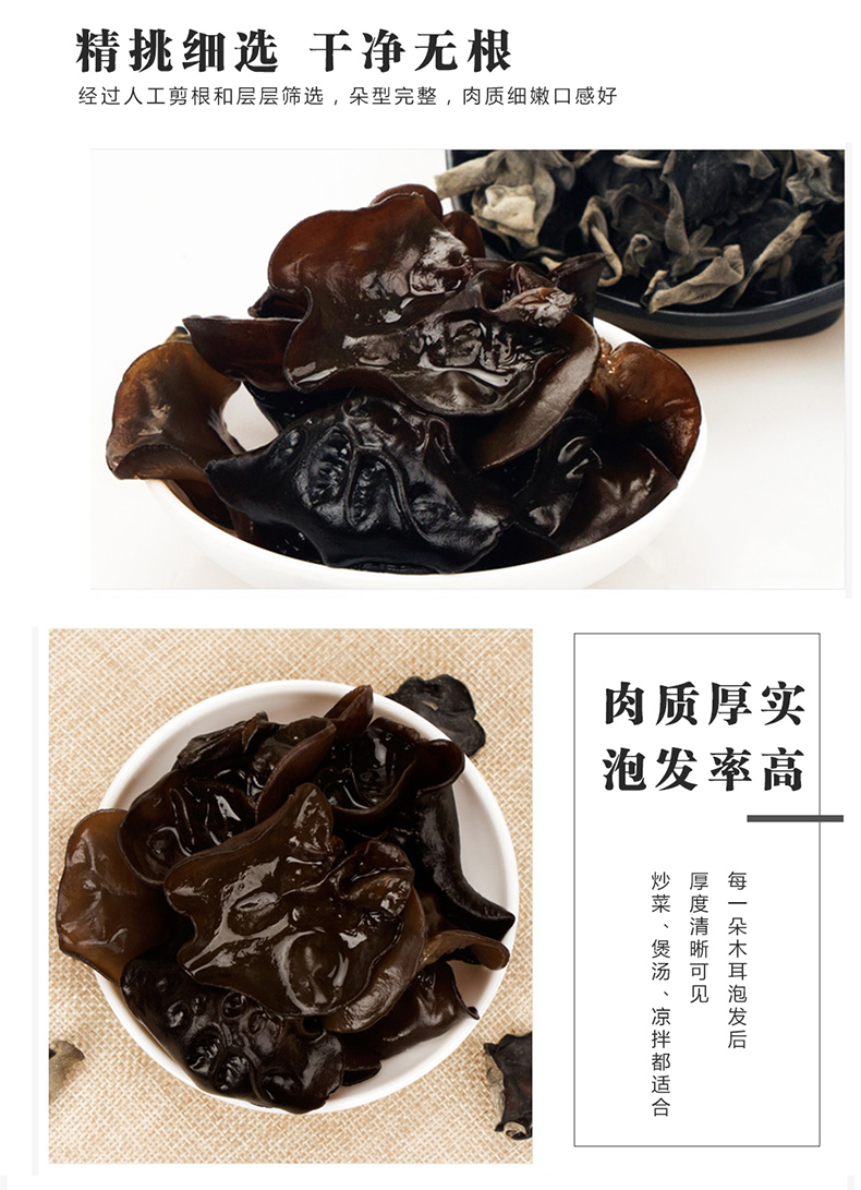 秦巴椴木黑木耳,口味醇厚,木耳鲜嫩,香醇可口,肉质紧实,个头饱满,营养丰富,美味健康。