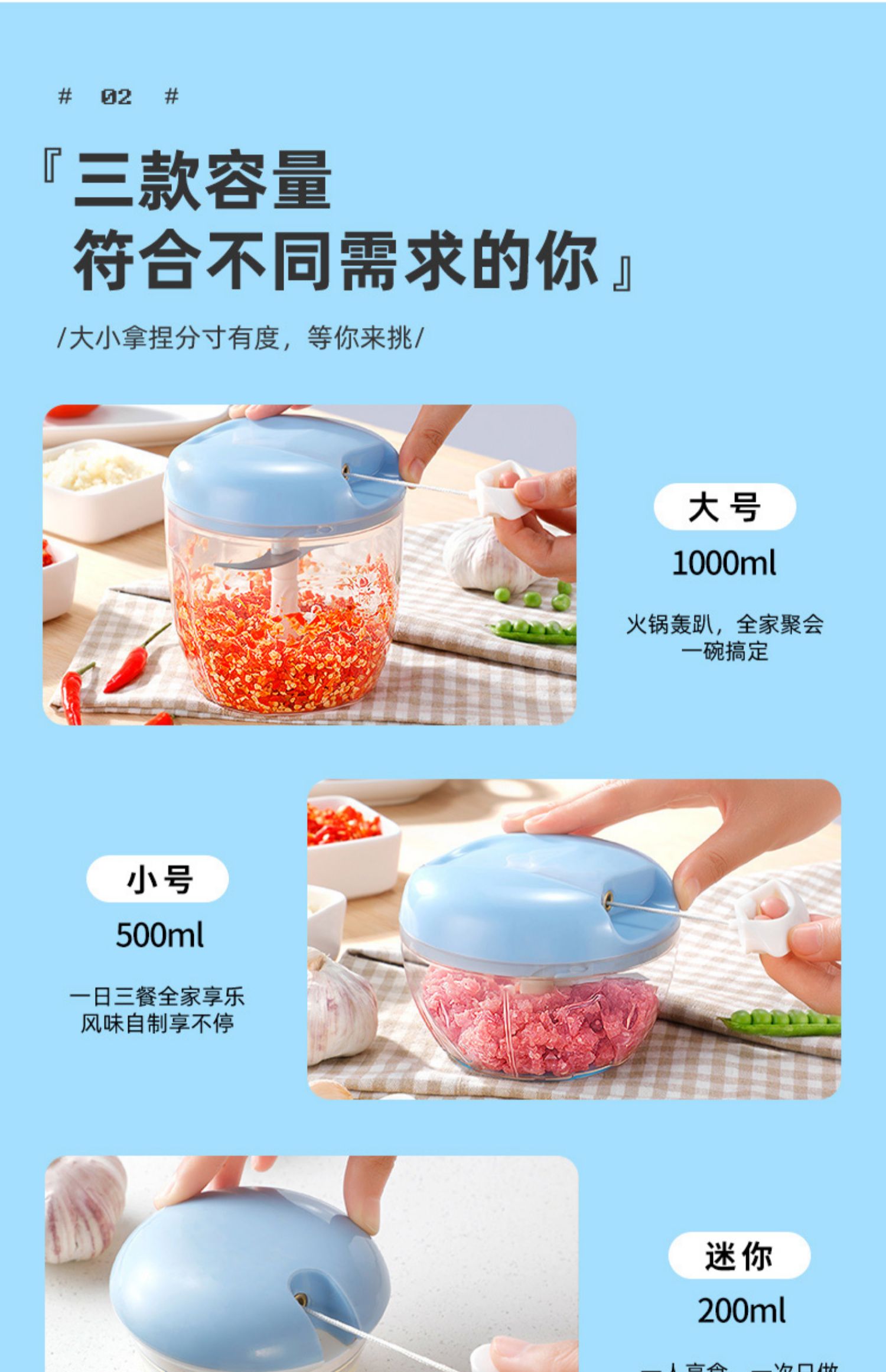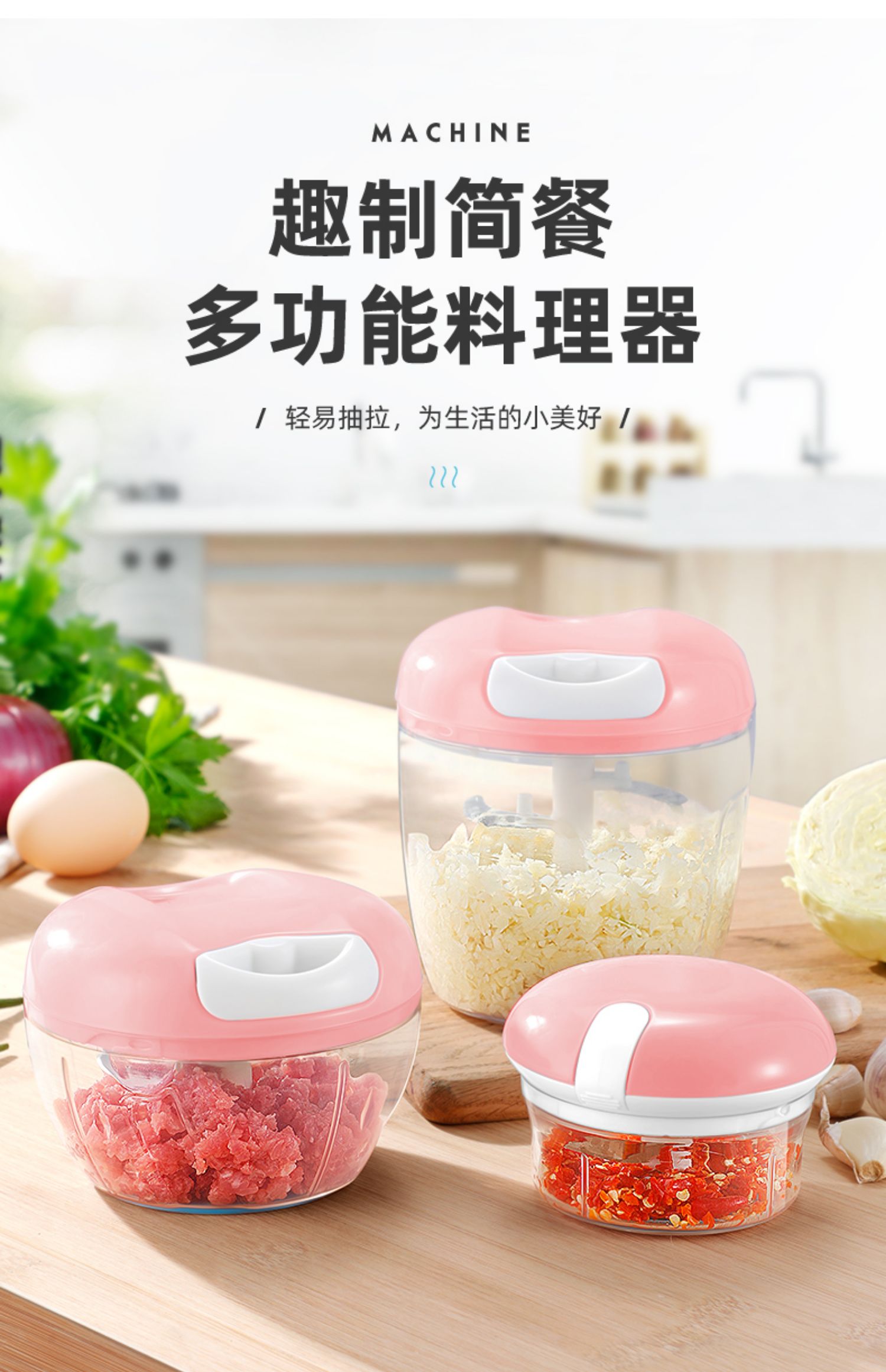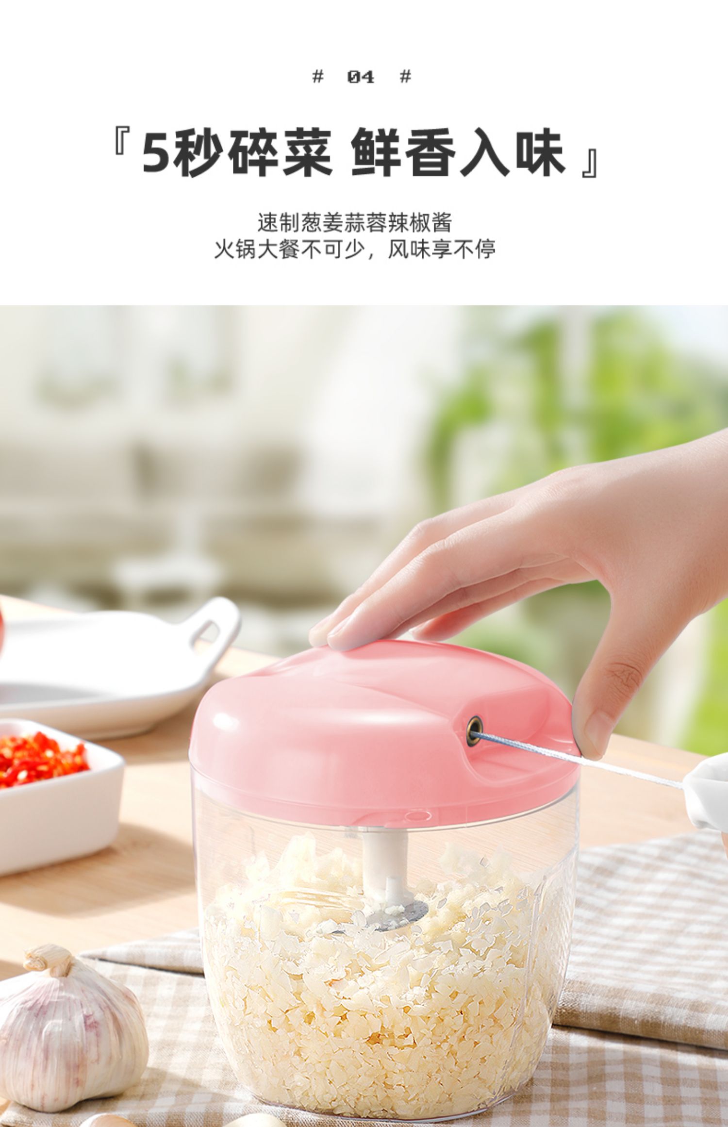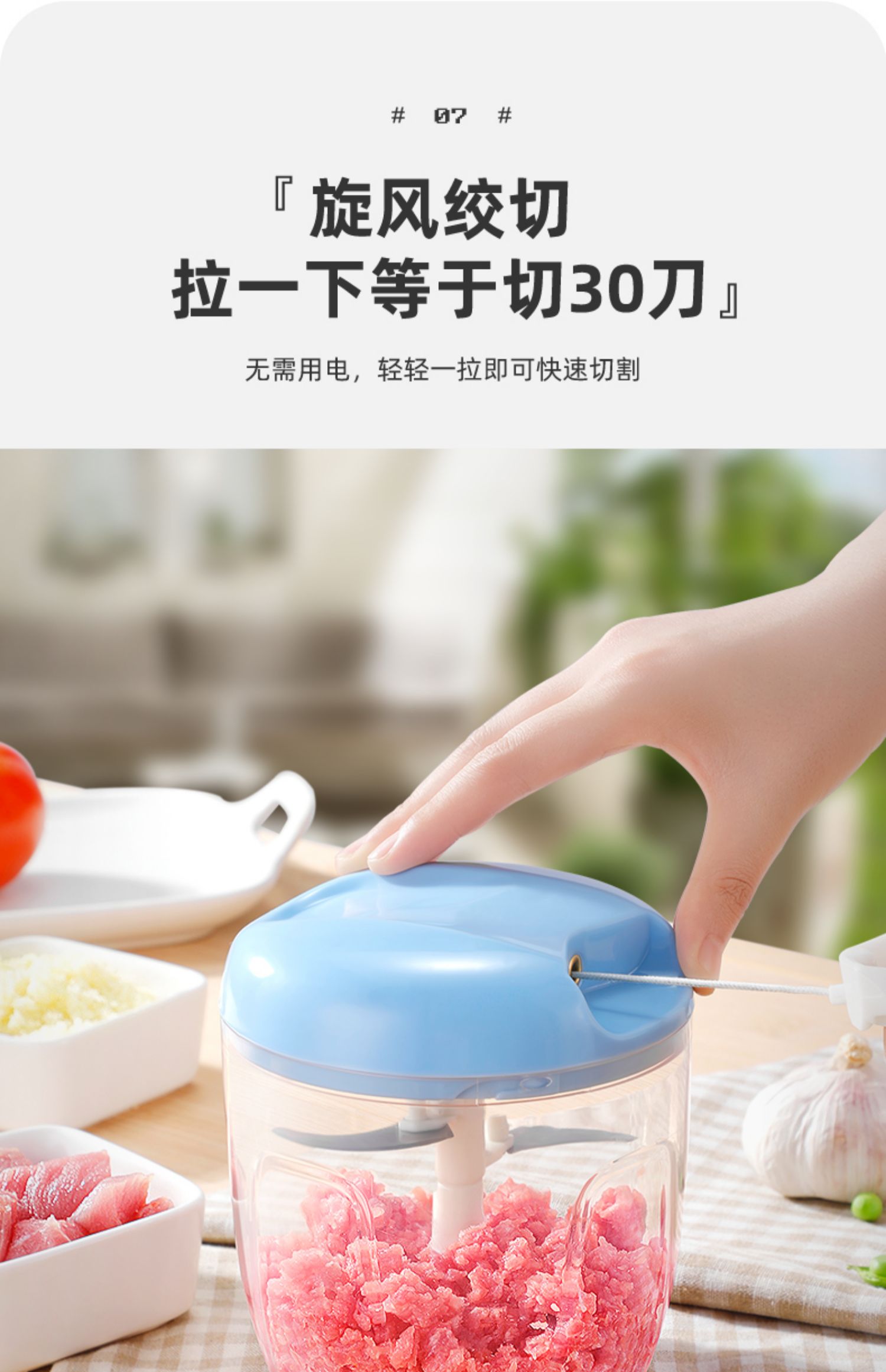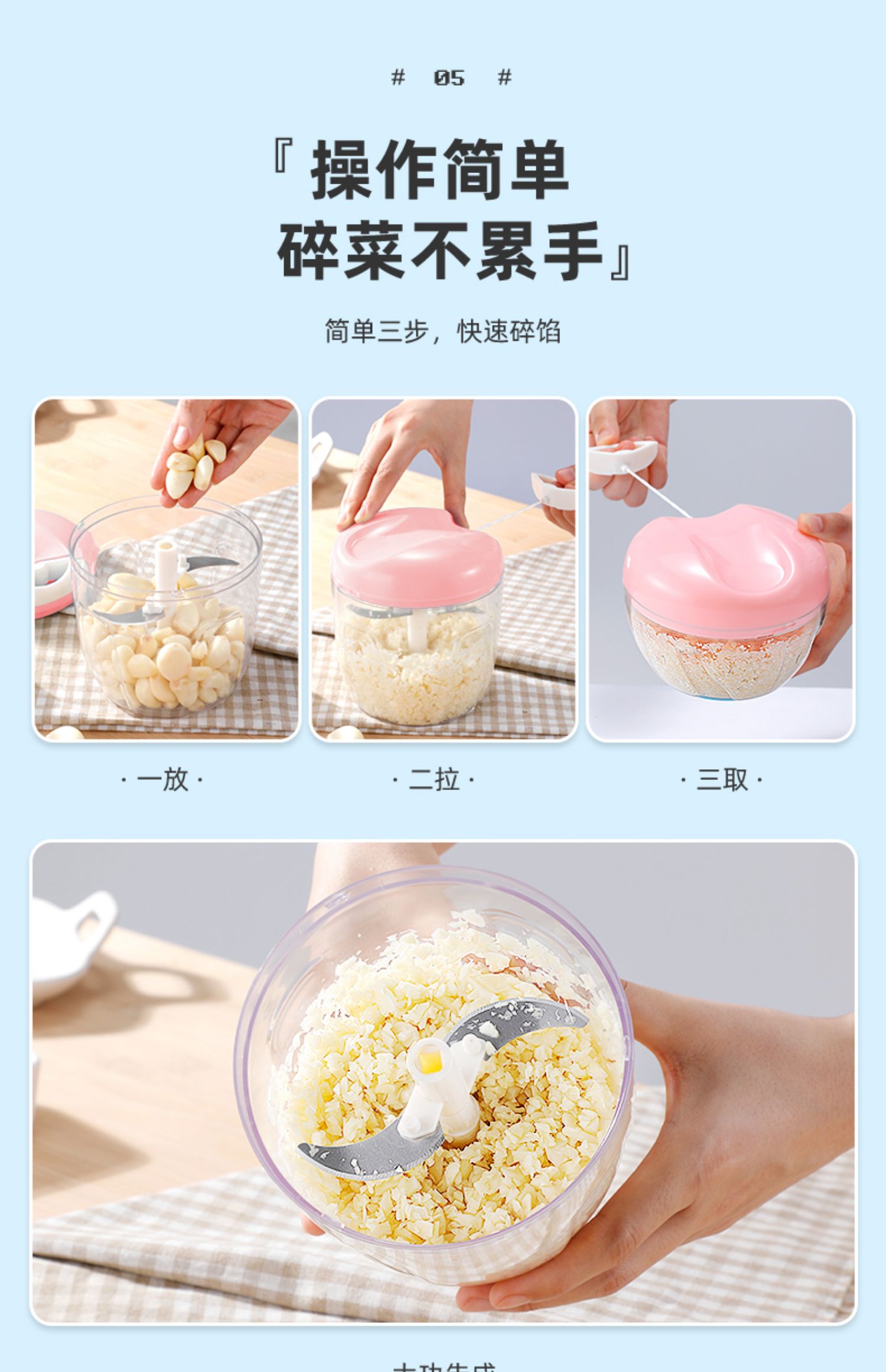 【迷你款仅需5.9】非常实用的一款神器,绞蒜,绞肉,切菜,磨碎,无论是饺子馅,不累手不辣眼睛,操作简单,省时省力,拉一下等于刀切21下,清洗也方便,特别的好用哦!!!