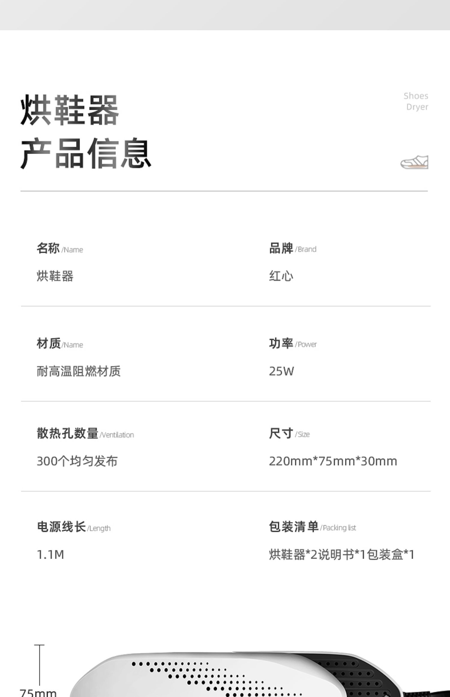 【74年品牌】鞋子穿久了难免有些潮潮的,你需要红心烘鞋器!恒温加热,拒绝潮湿!多种鞋型均可适用,即开即热,360°环绕加热,除臭除湿!