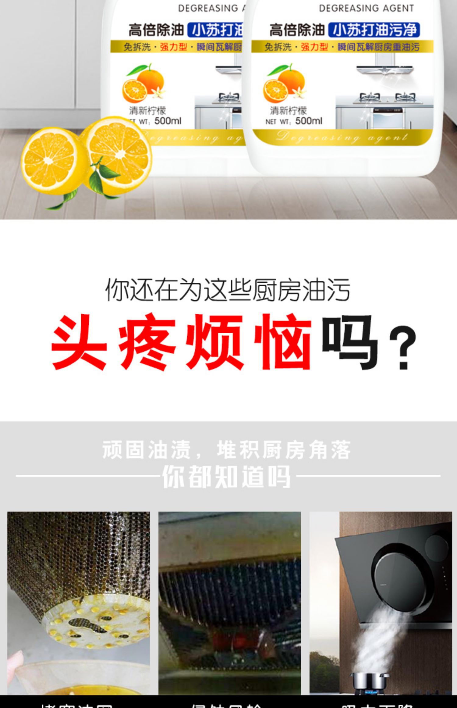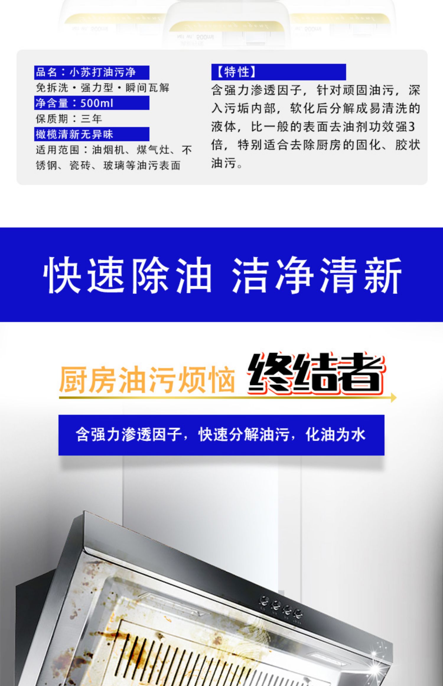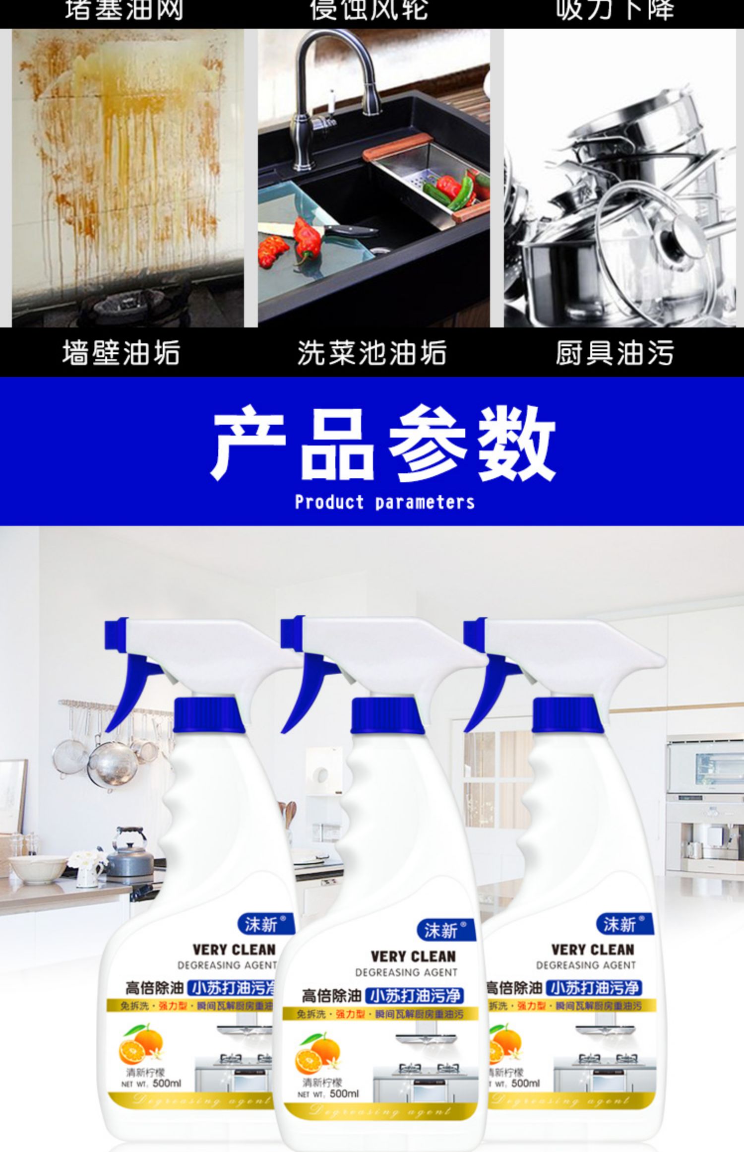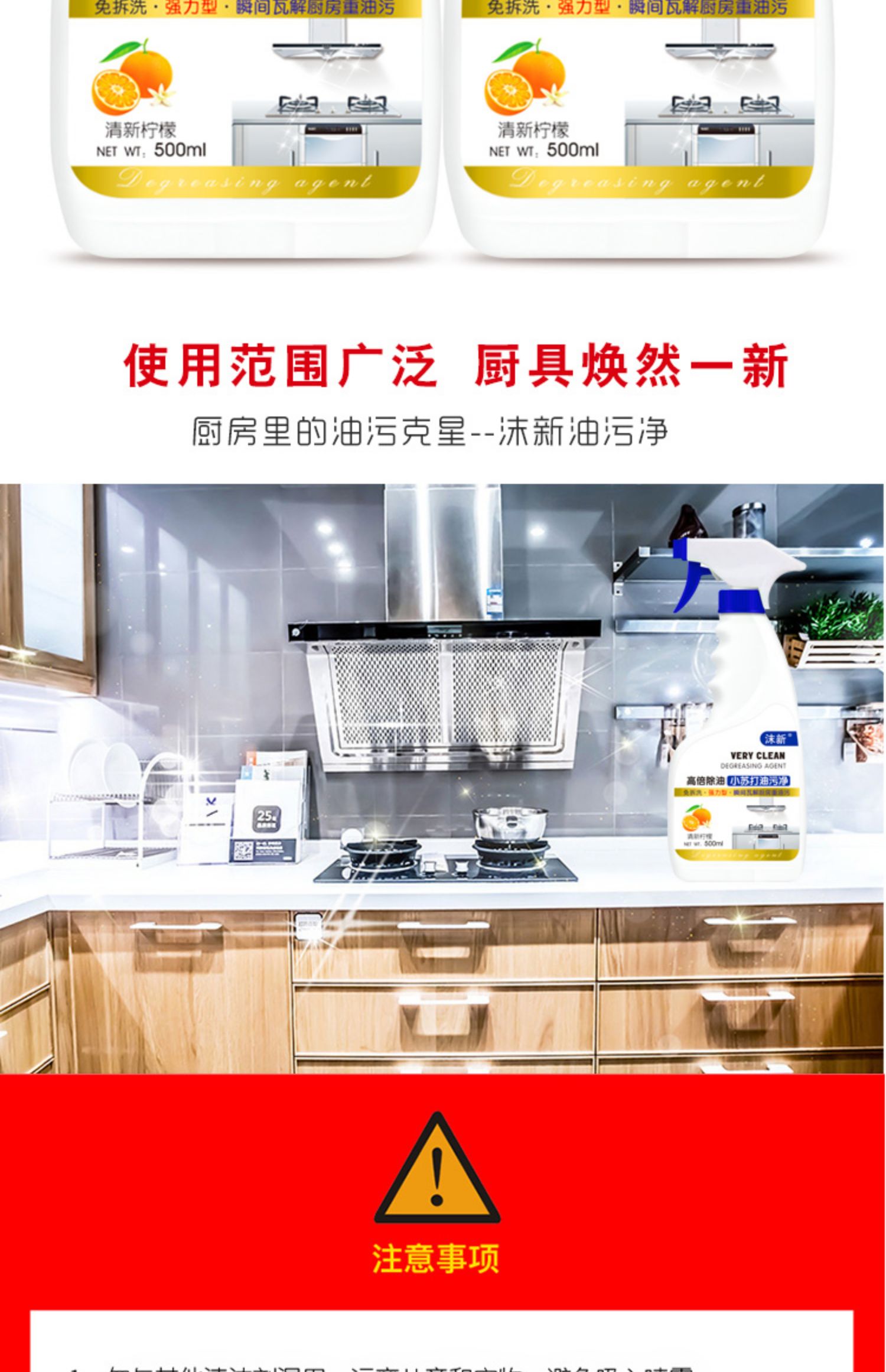 【超值3瓶装】去污去异味,强力去污,厨房油污净,一喷一擦,轻松除油!还你一个干净的厨房,强力去污,厨房油污净,还你一个干净的厨房。