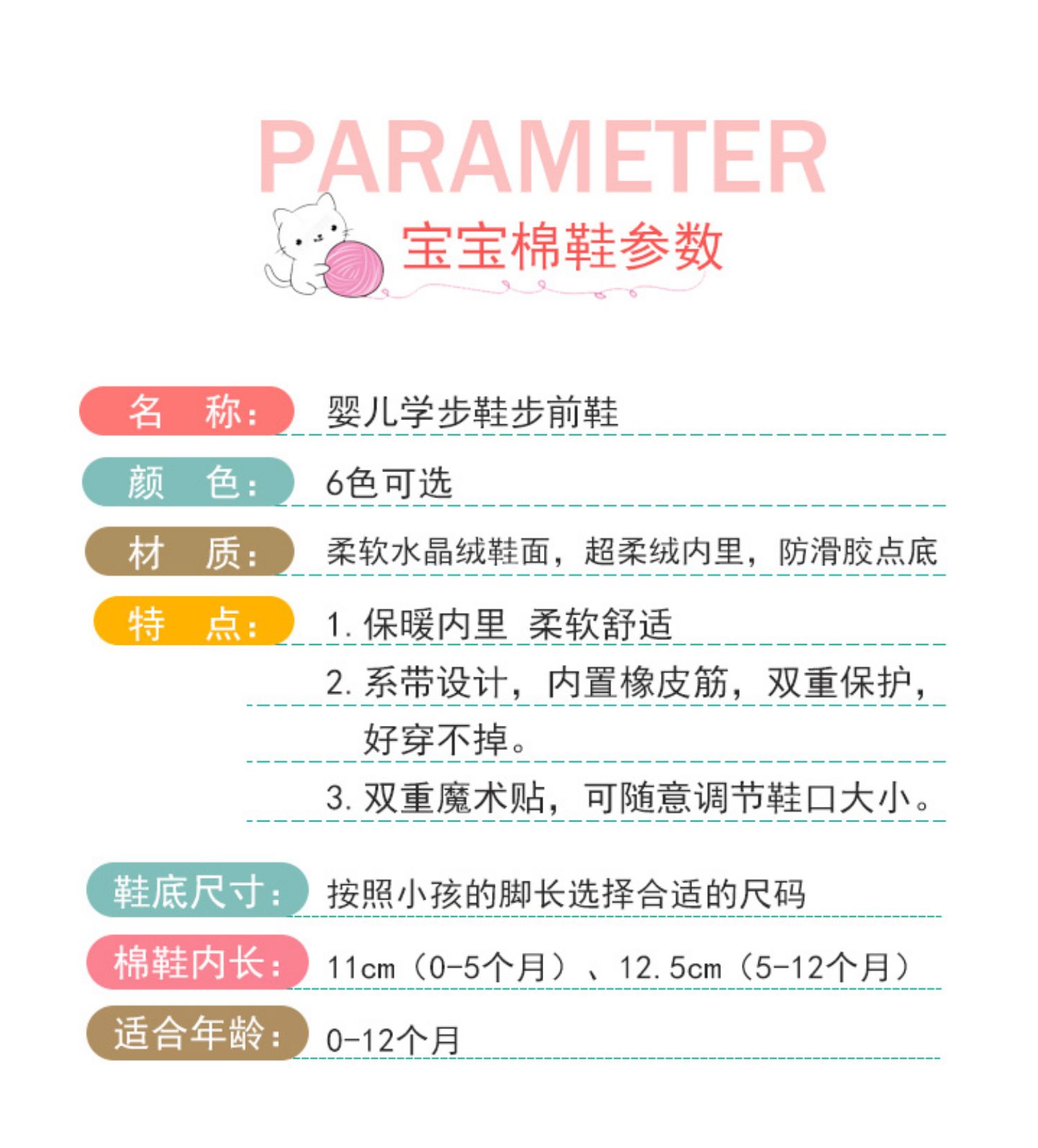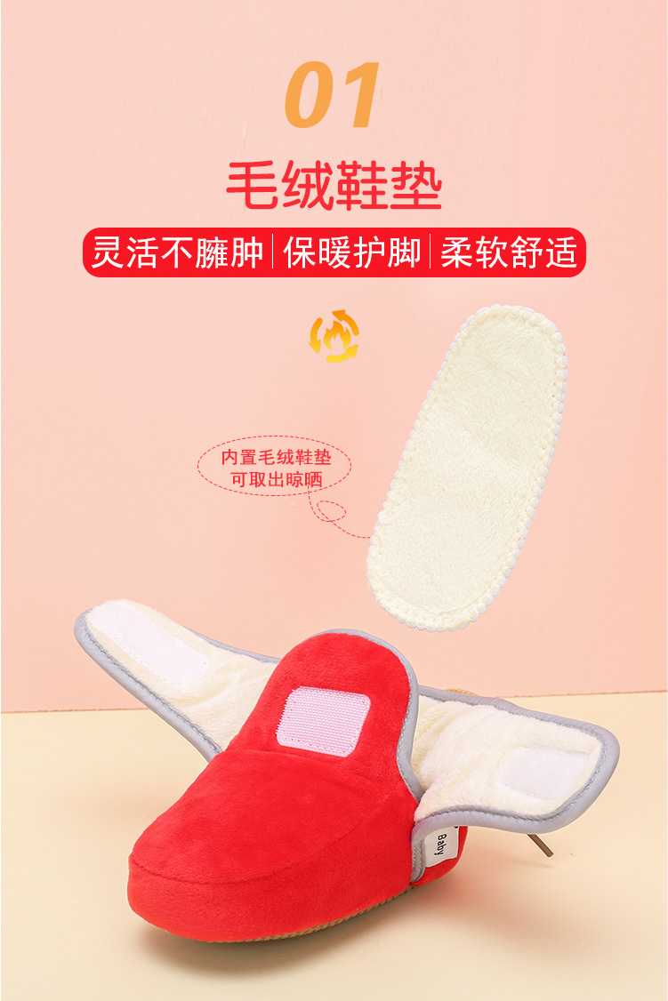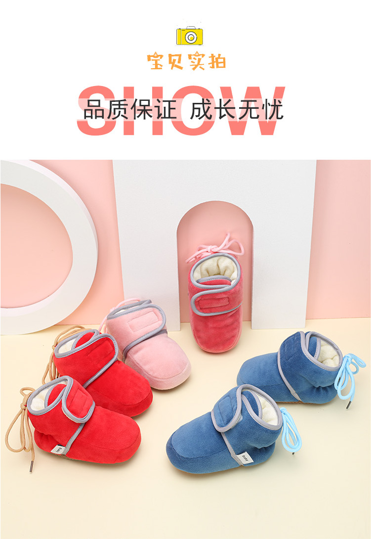 保暖秋冬季新生儿婴儿毛绒软底鞋子,零甲醛,夹棉设计,柔软透气,吸湿亲肤,易打理又保暖,适合初学站立或者刚学走路的宝宝穿,好看又舒适,妈妈放心选购。