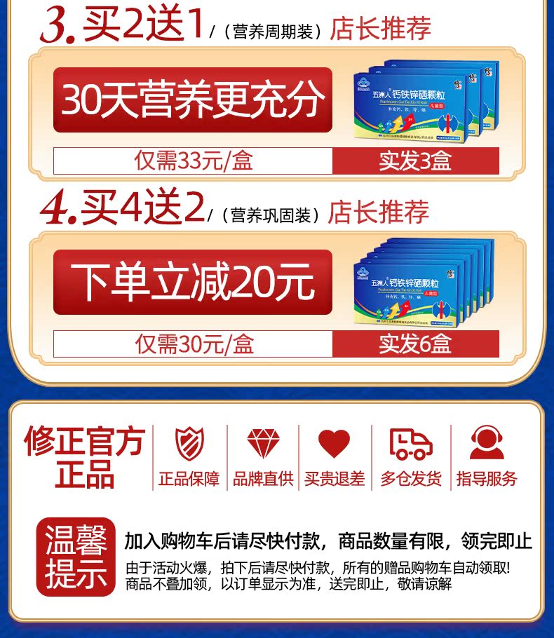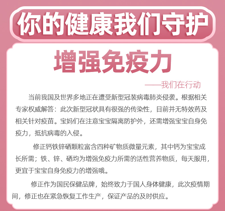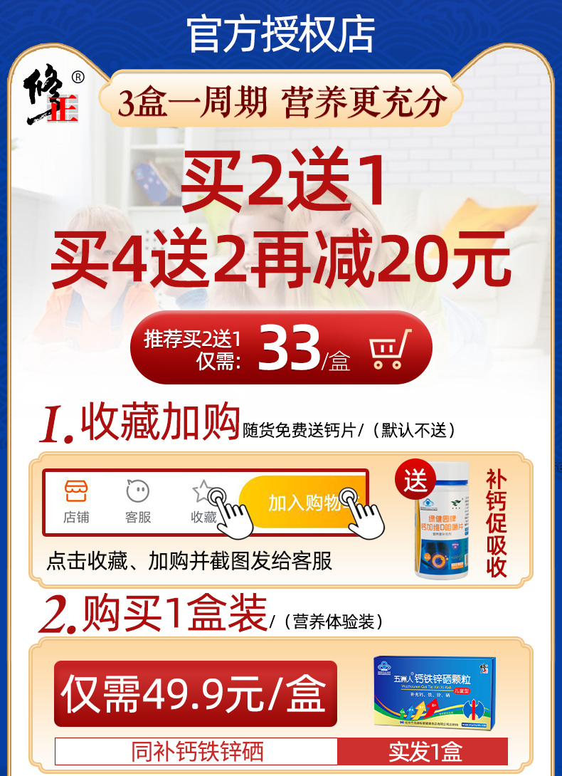 【蓝帽认证】孩子成长时期,挑食,免疫力差,不长个?宝妈快囤修正大牌,儿童钙铁锌硒颗粒!蓝帽子认证,放心入手~同补钙铁锌硒,更好吸收!让孩子增强免疫力,不挑食,睡觉香,身体倍棒!【赠运费险】