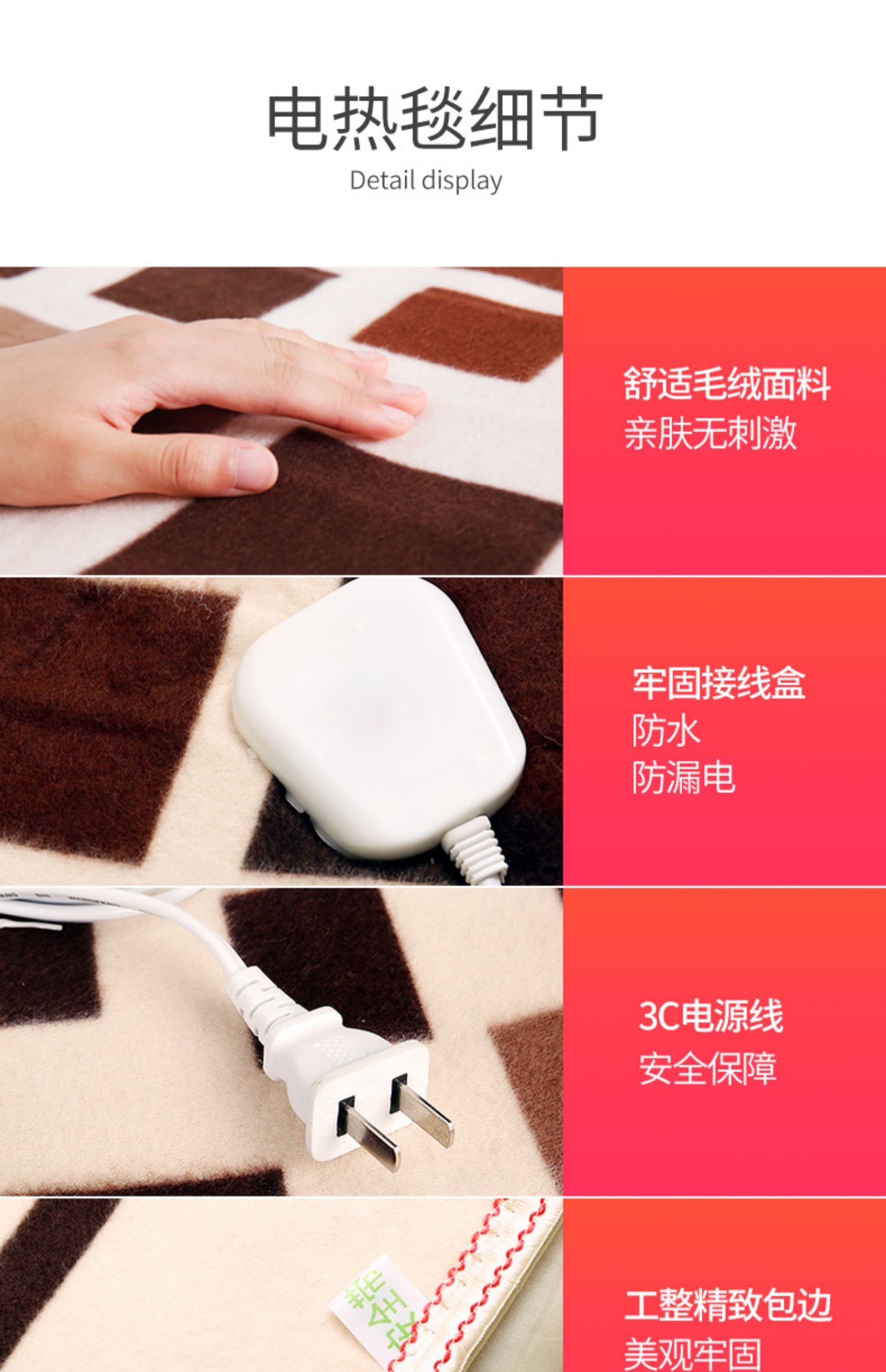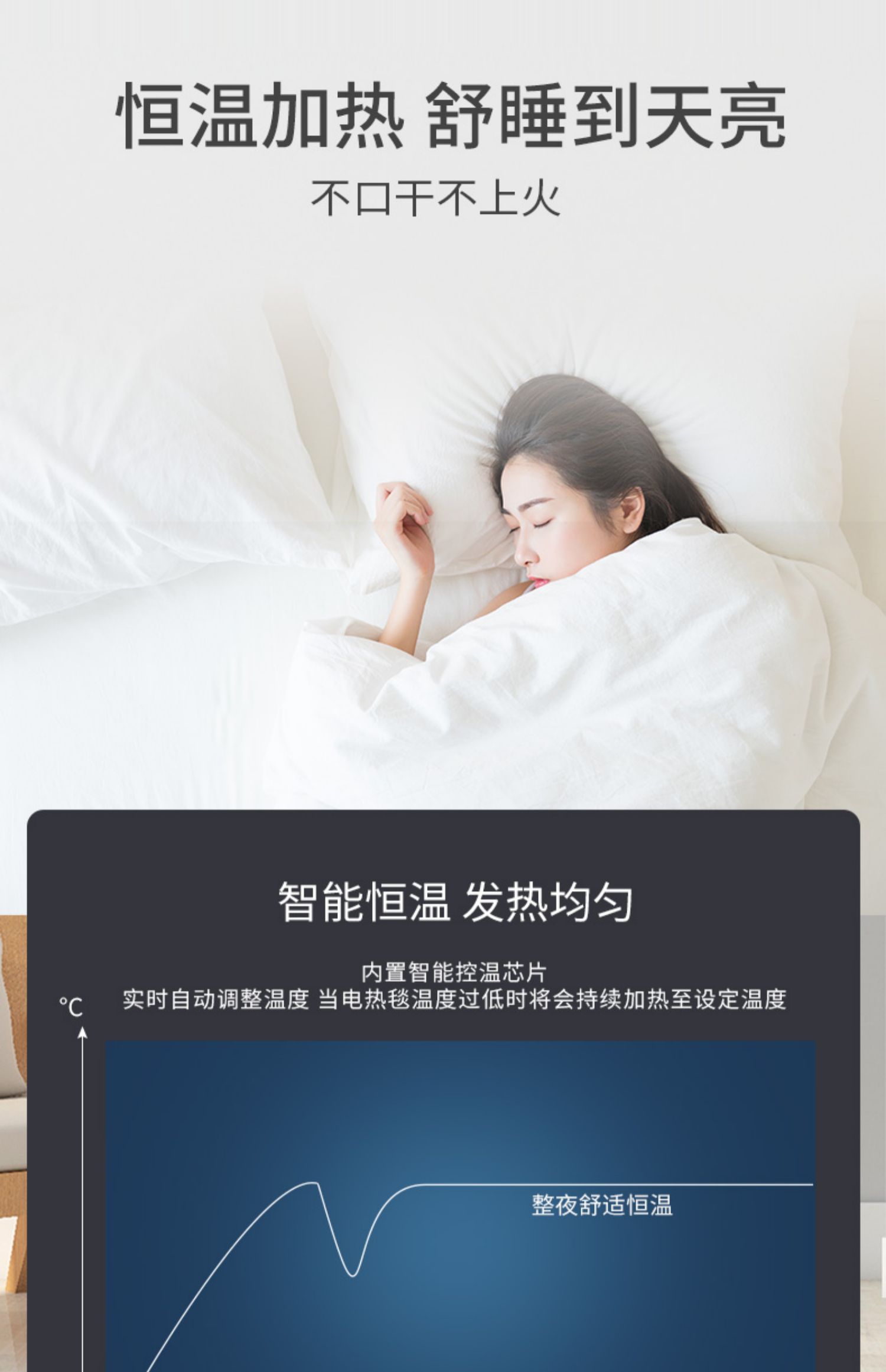 3C认证,安全可靠,亲肤面料,均匀发热,3档调温过热自动断电,节能省电无辐射,防水不漏电,品质之选!虚寒温暖,不如一床电热毯!【赠运费险】