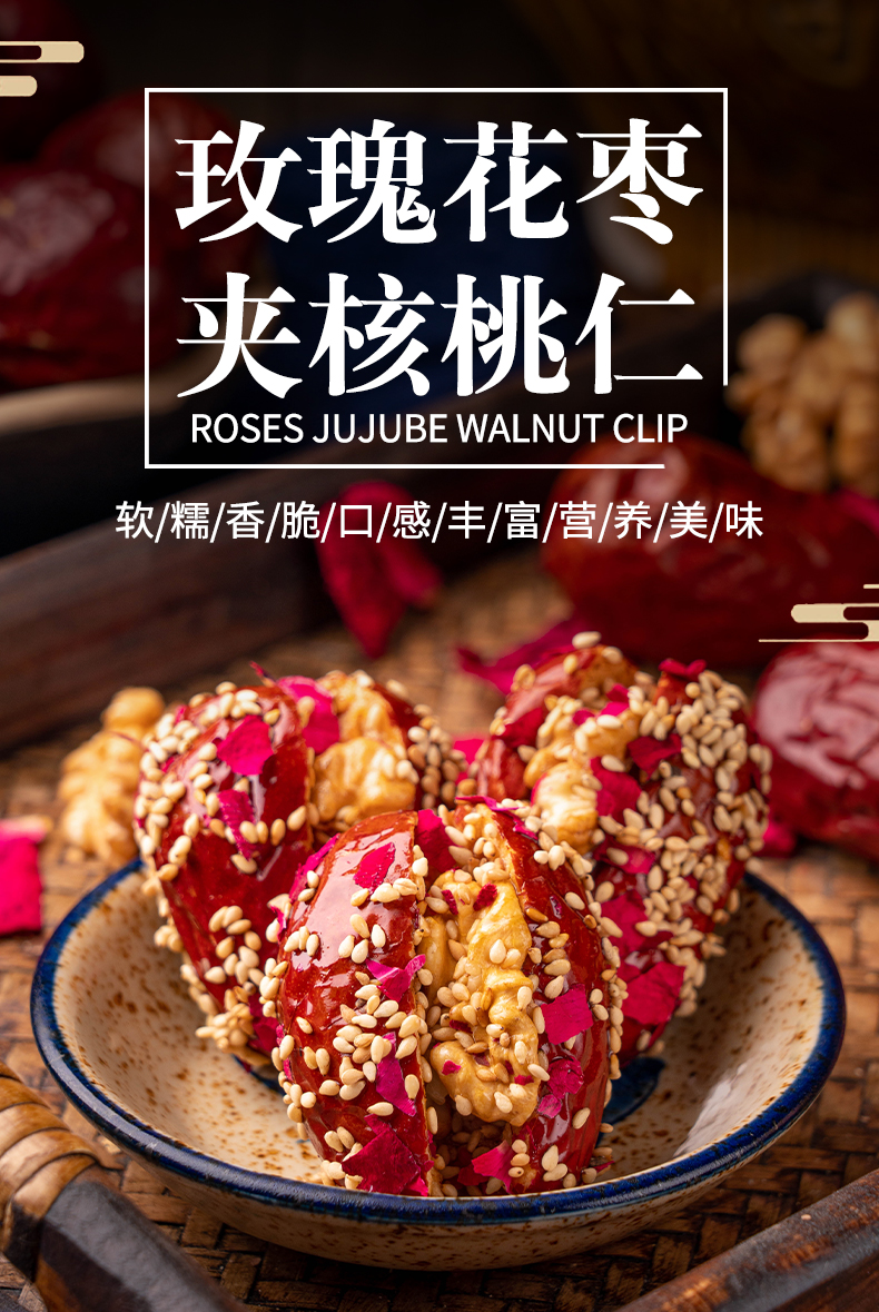 大枣夹核桃吃起来~精选新疆产地原料,纯手工制作,鲜甜酥脆,大枣饱满肉厚,核桃脆香酥口,无核的,零添加,独立包装,老人小孩吃着放心~