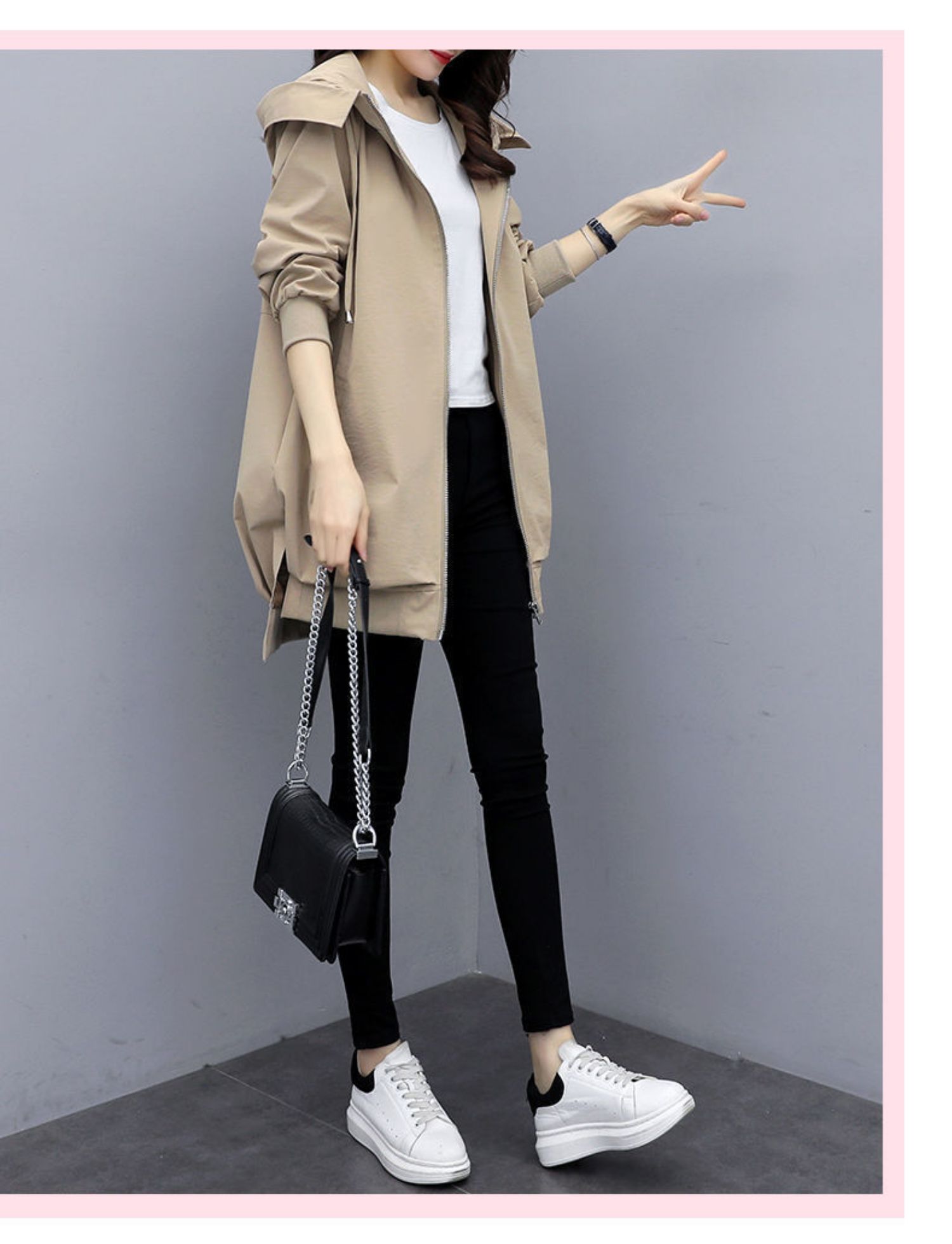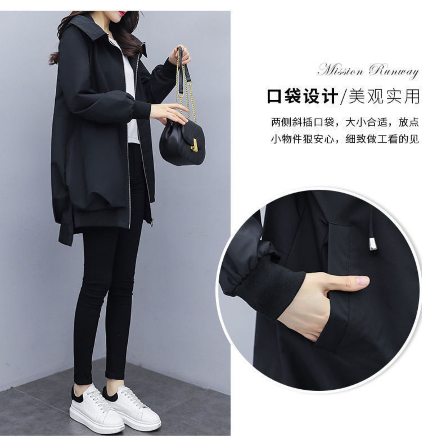 加绒胖mm秋冬装风衣宽松休闲连帽外套女
