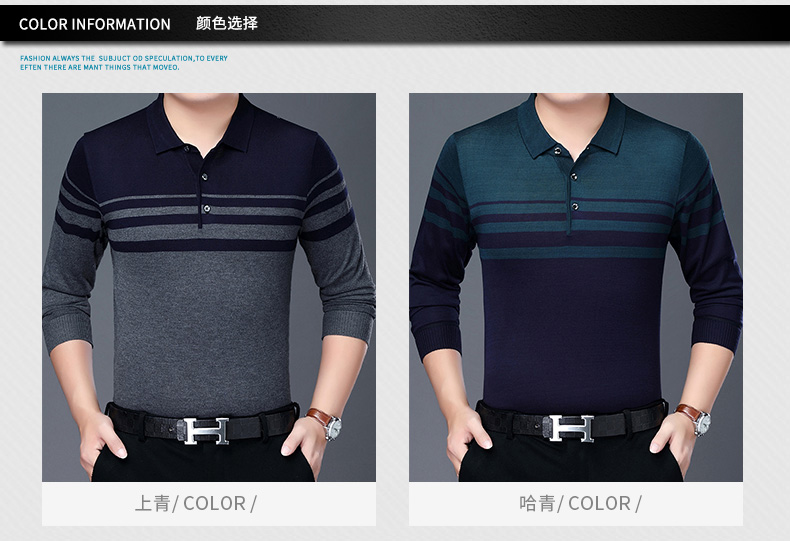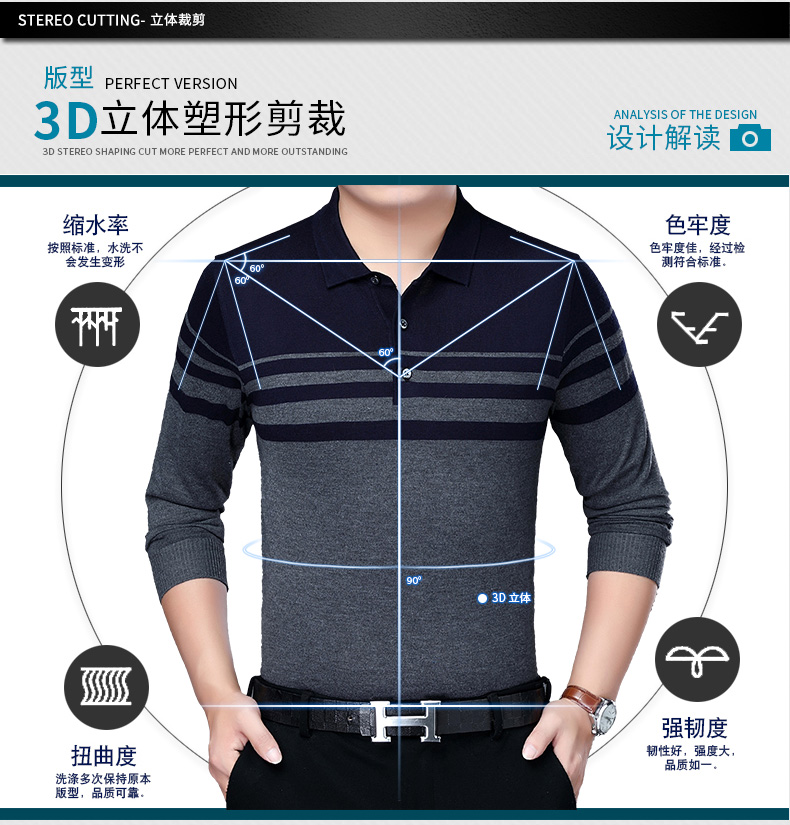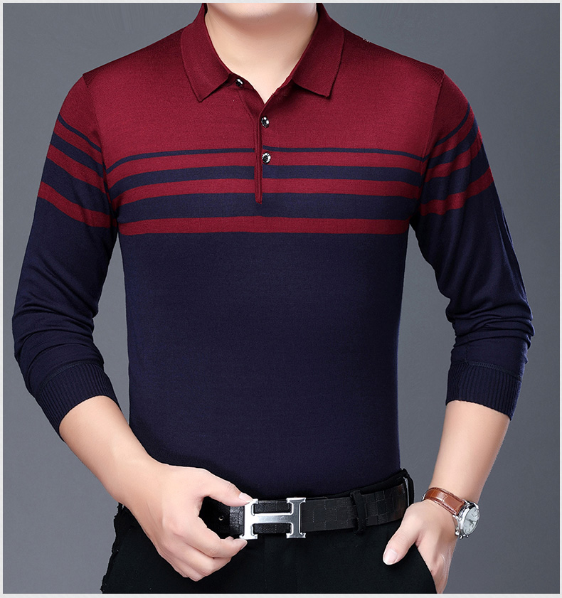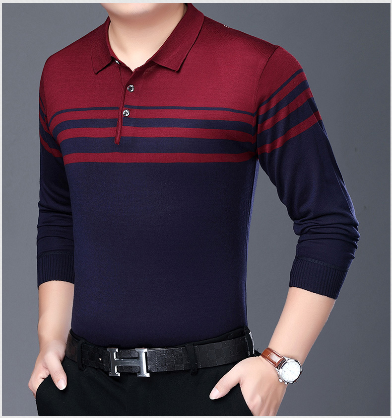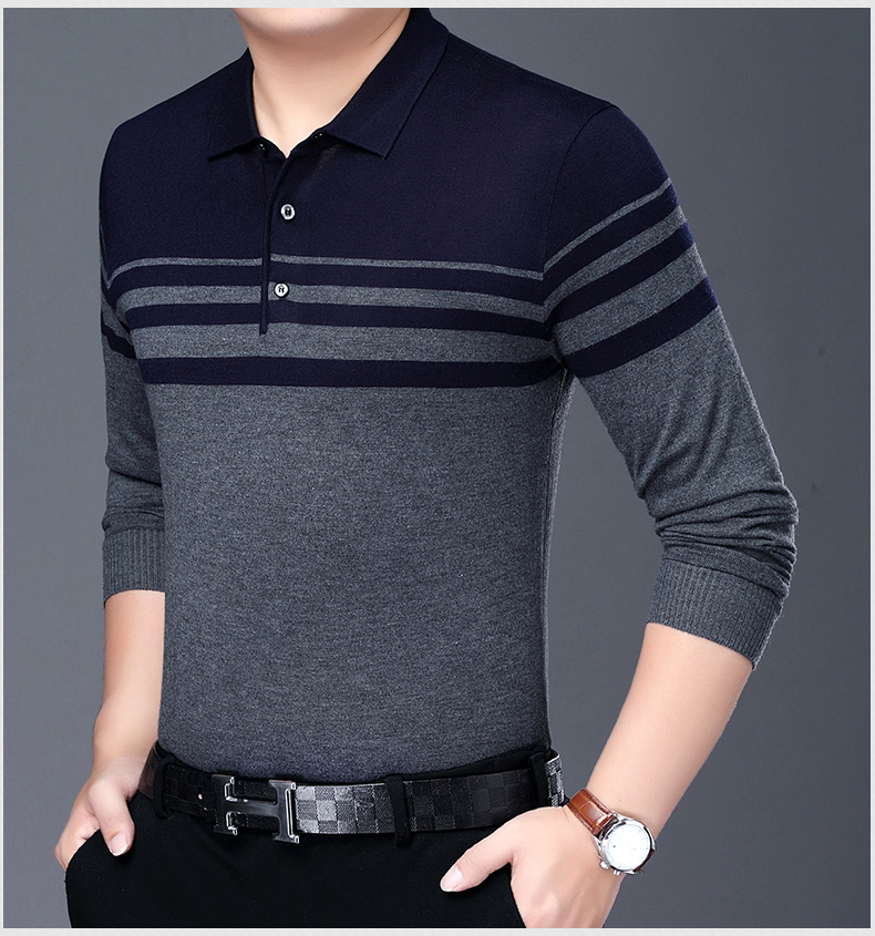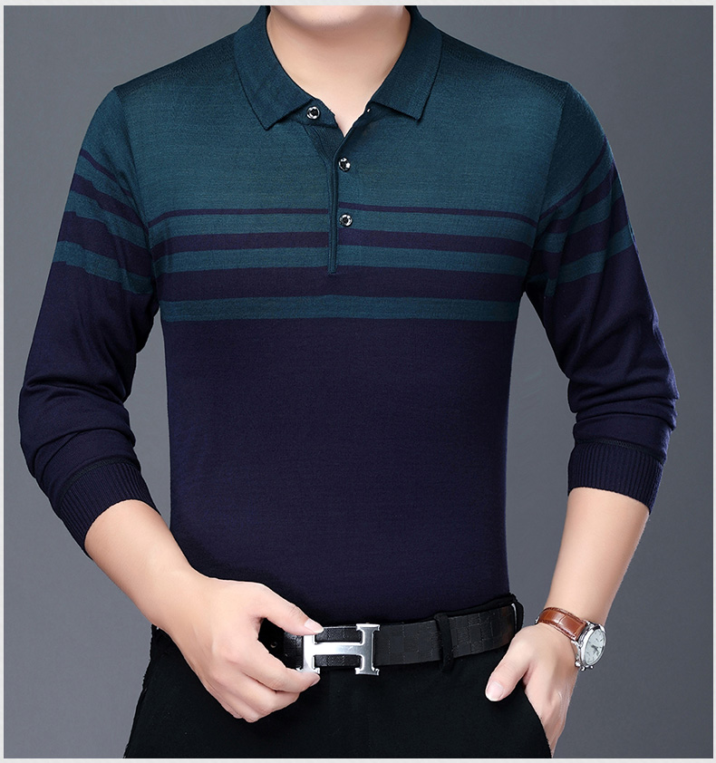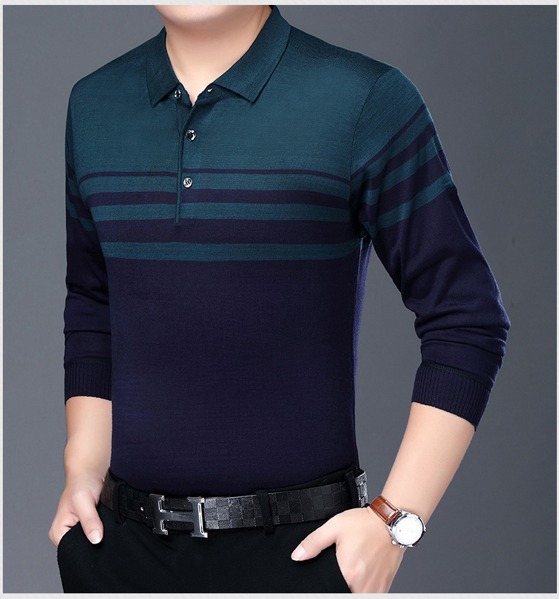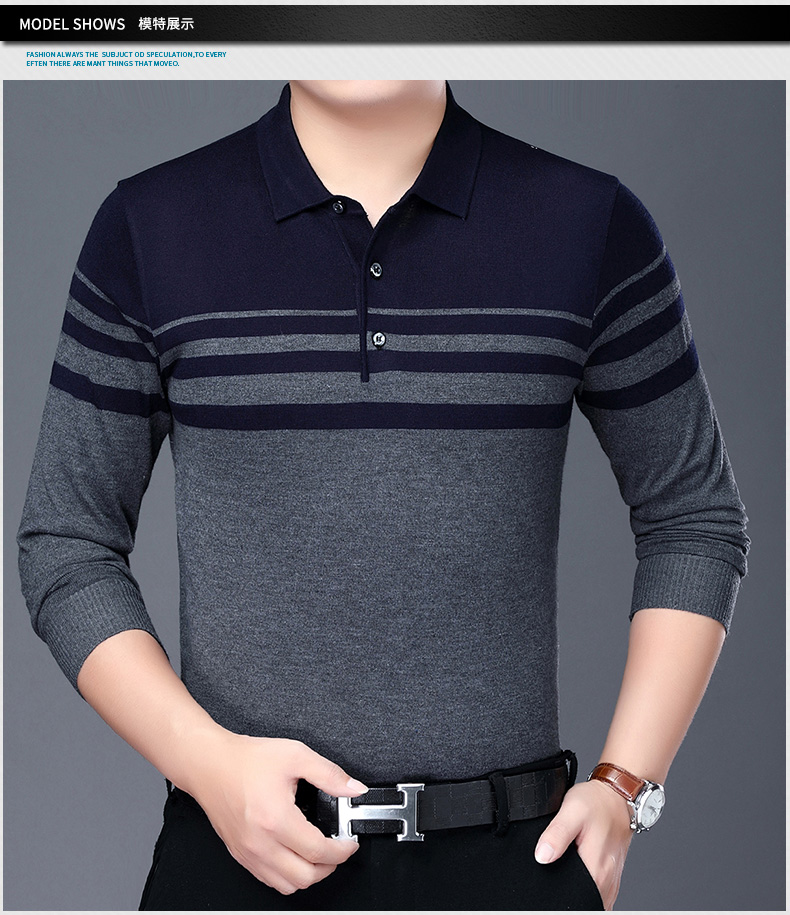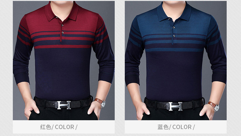 男士长袖t恤秋中老年男装薄款针织衫打底衫