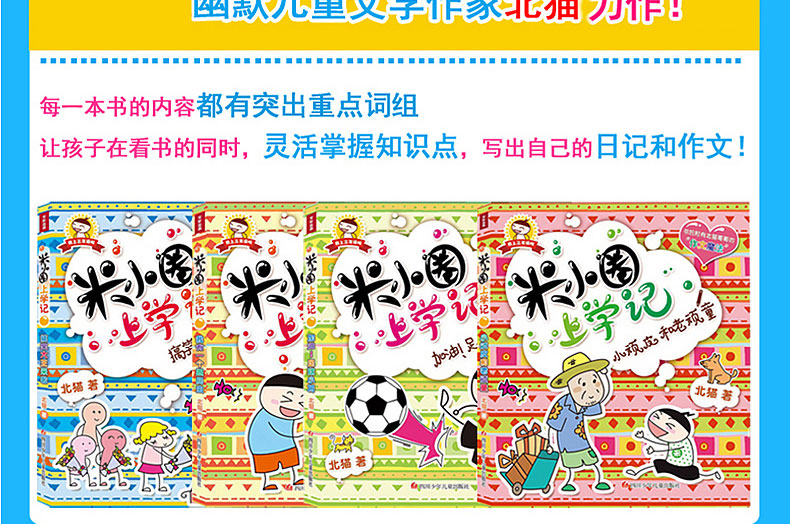 经典儿童漫画书,米小圈上学记三年级,北猫经典儿童文学名著,全4册,内容有趣,全彩印刷,插图精美。轻松提高宝宝作文水平,养成好习惯,宝妈必备睡前故事书,小学生暑假开学季必读课外读物,赠课外书。