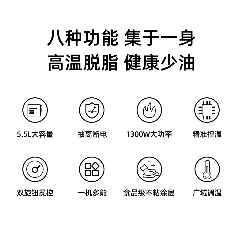 【不虚标,真实验货,5.5L超大容量】多功能无油速炸,一次可以弄好多东西!厨房小白都可以轻松做大厨!你确定你真的不心动嘛!