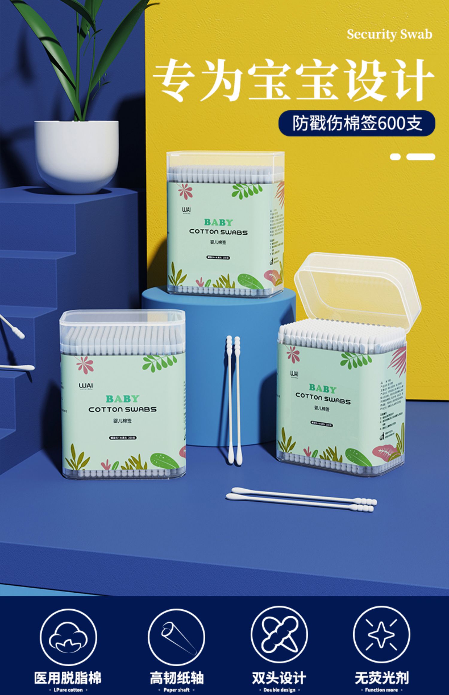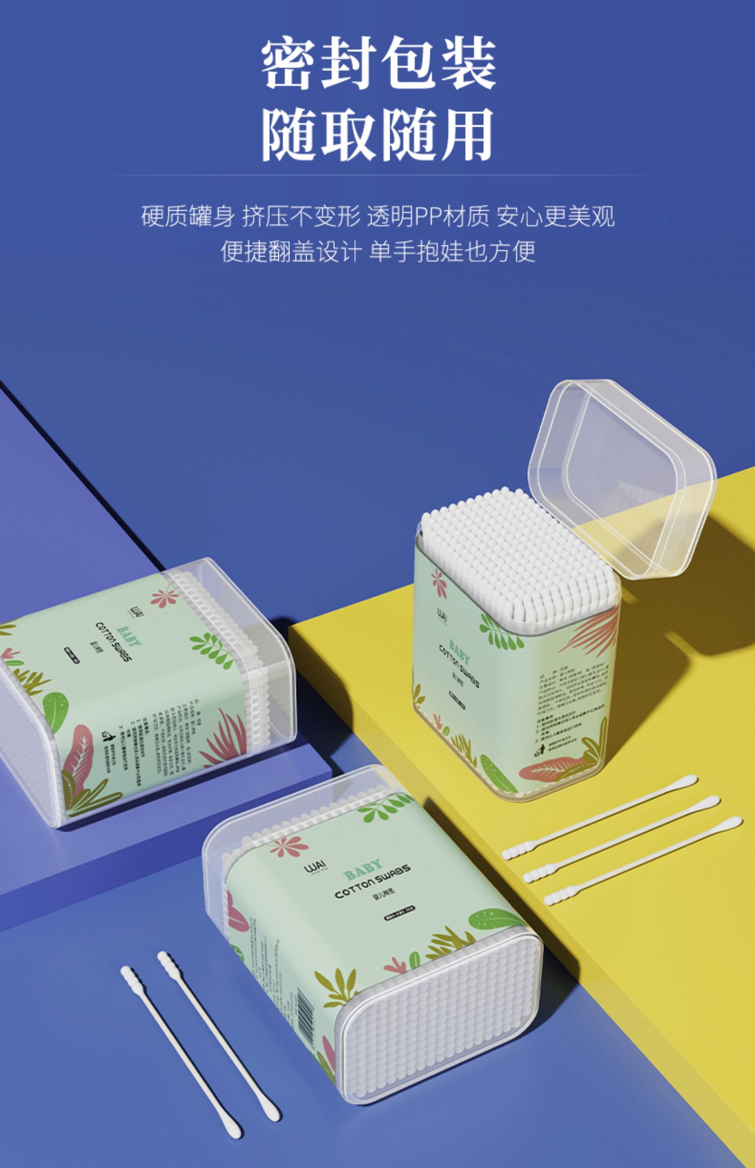 【3罐600支装】月销8万+,30万好评!!哇爱婴幼儿双头棉签,纸轴非木棒,螺旋型棉头+水滴型棉头,方便好用,不含荧光剂,不掉絮,不松脱,无异味,适合宝宝的棉签【赠运费险】