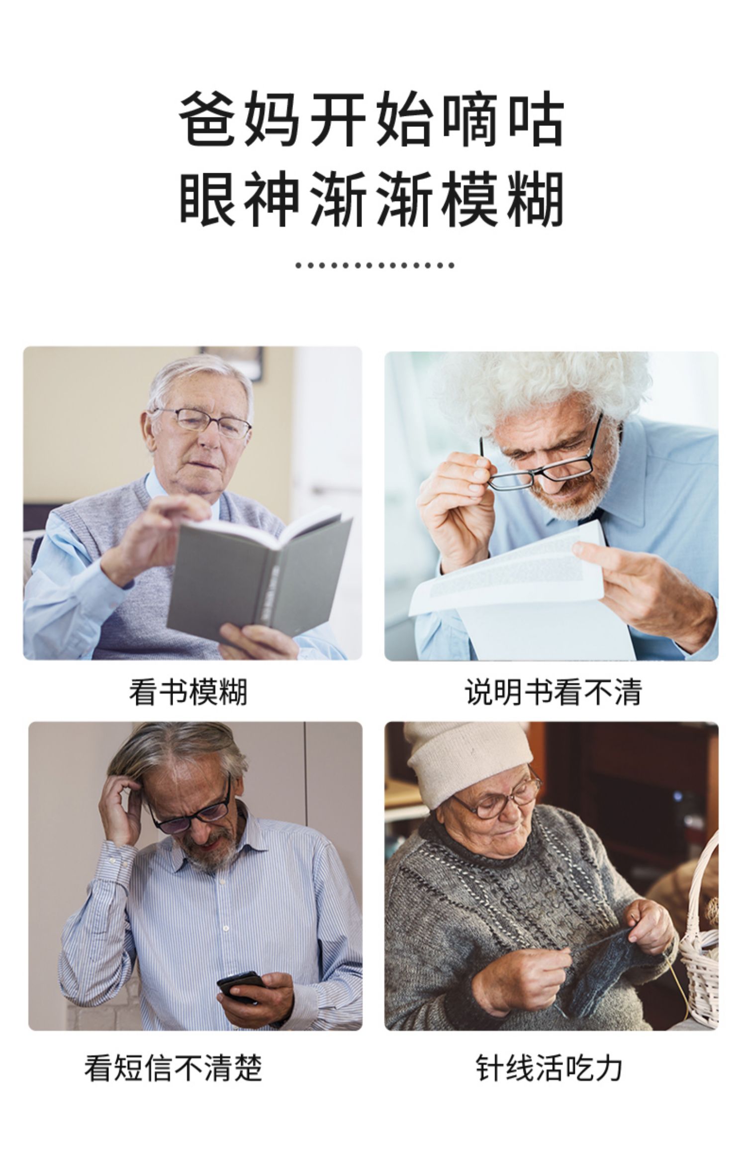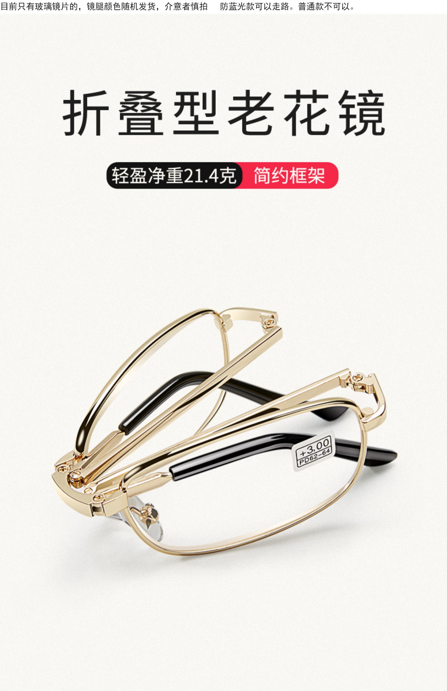 全新升级,高清镜片,弹簧镜腿,不易折断,采用高清树脂,佩戴舒适,折叠便携,度数精准,关爱父母,孝敬长辈!