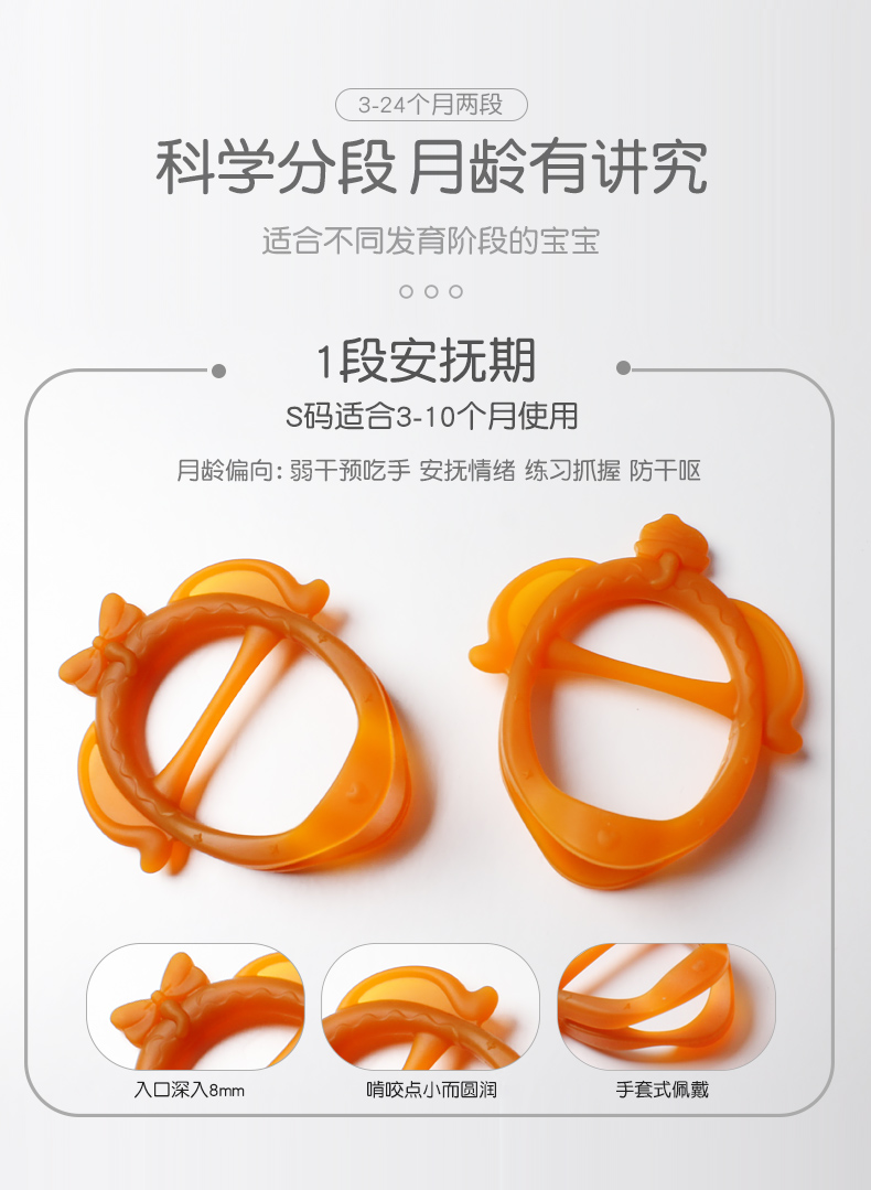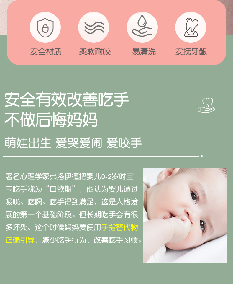 【食品级正品保证】360°全方位呵护不吃手,安全舒适防掉落,吃手代替物!食品级,健康安全放心给宝宝使用!