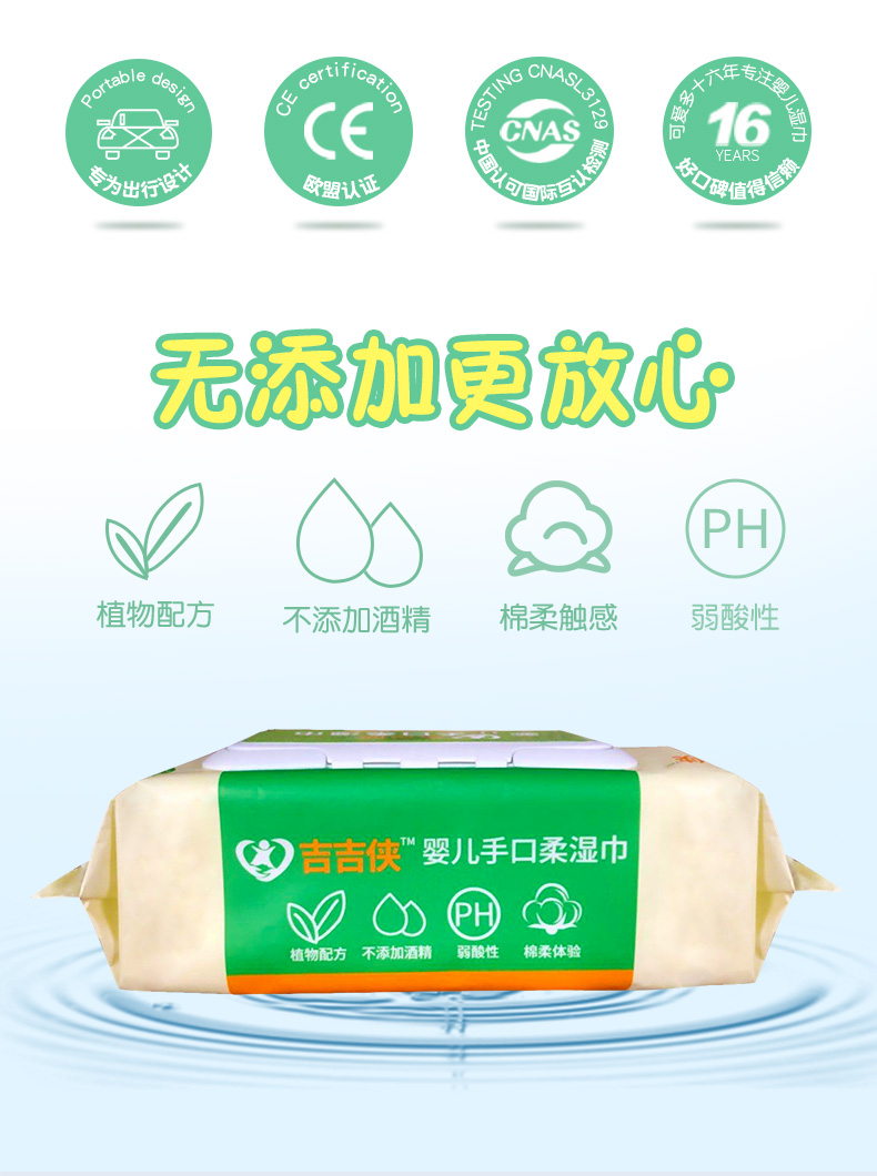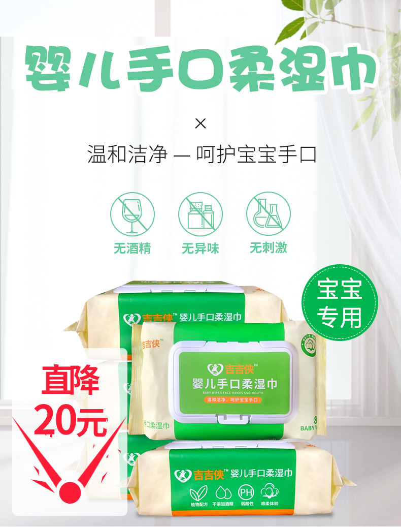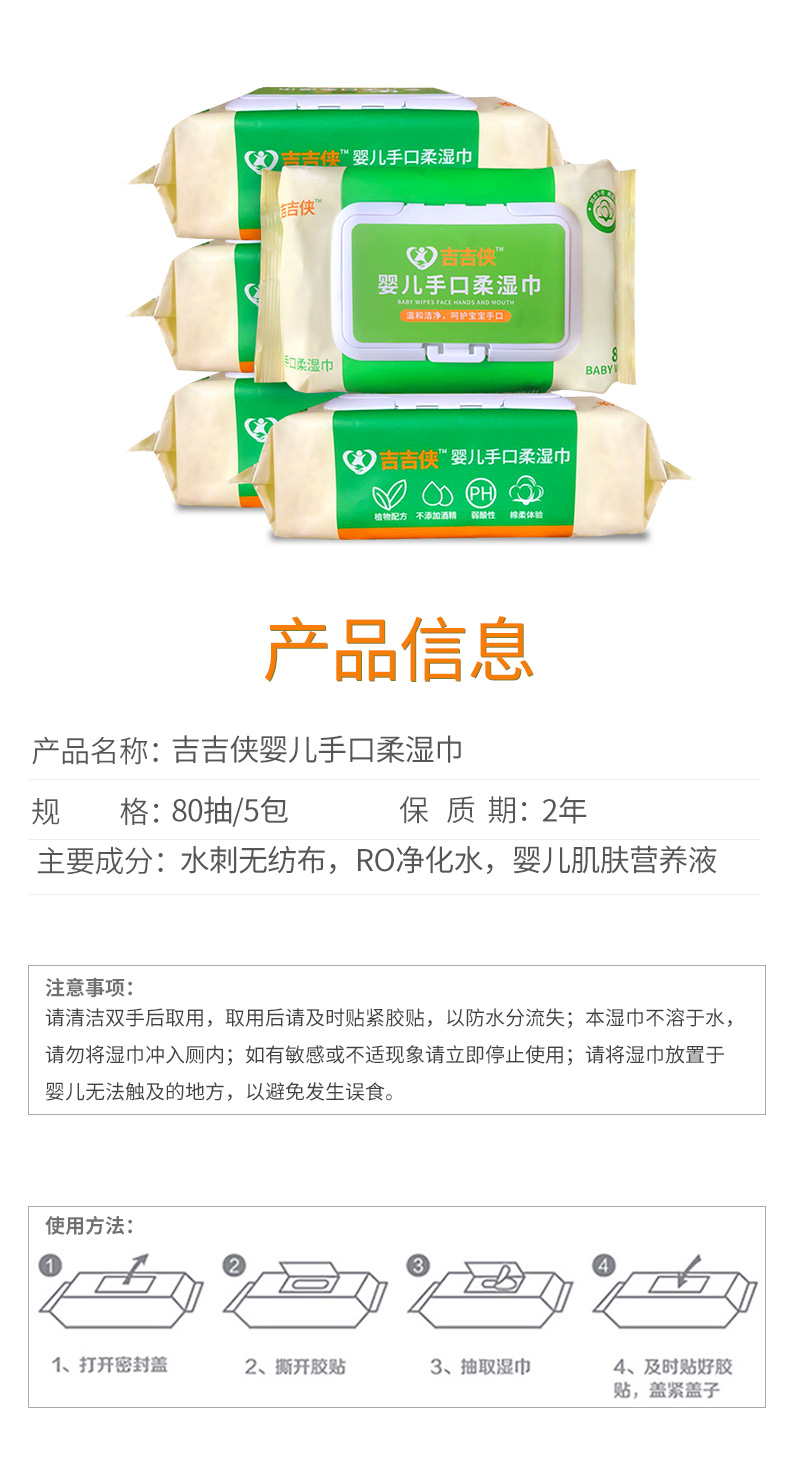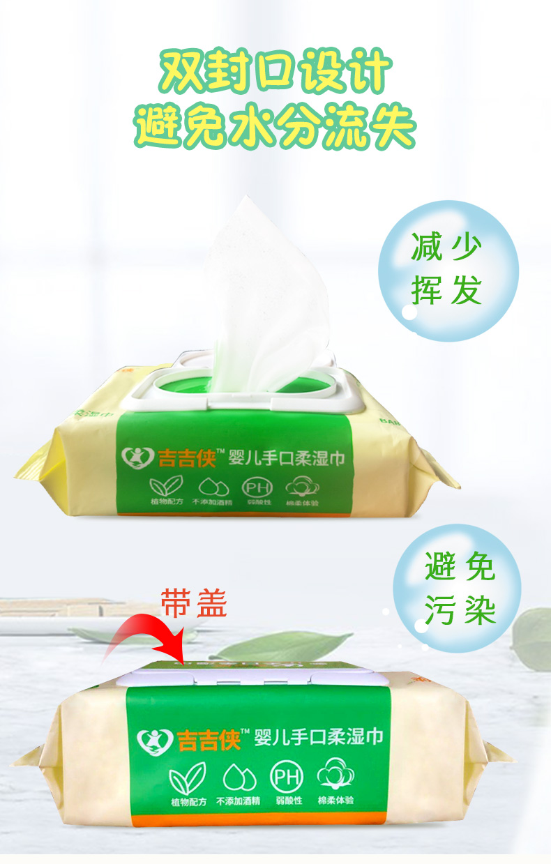 【80抽5包带盖】吉吉侠婴儿湿巾纸新生儿手口专用宝宝幼儿湿纸巾,婴儿孕妇专用抽纸,三层加厚湿水不破,纸质如牛奶般丝滑,如棉花般绵柔!
