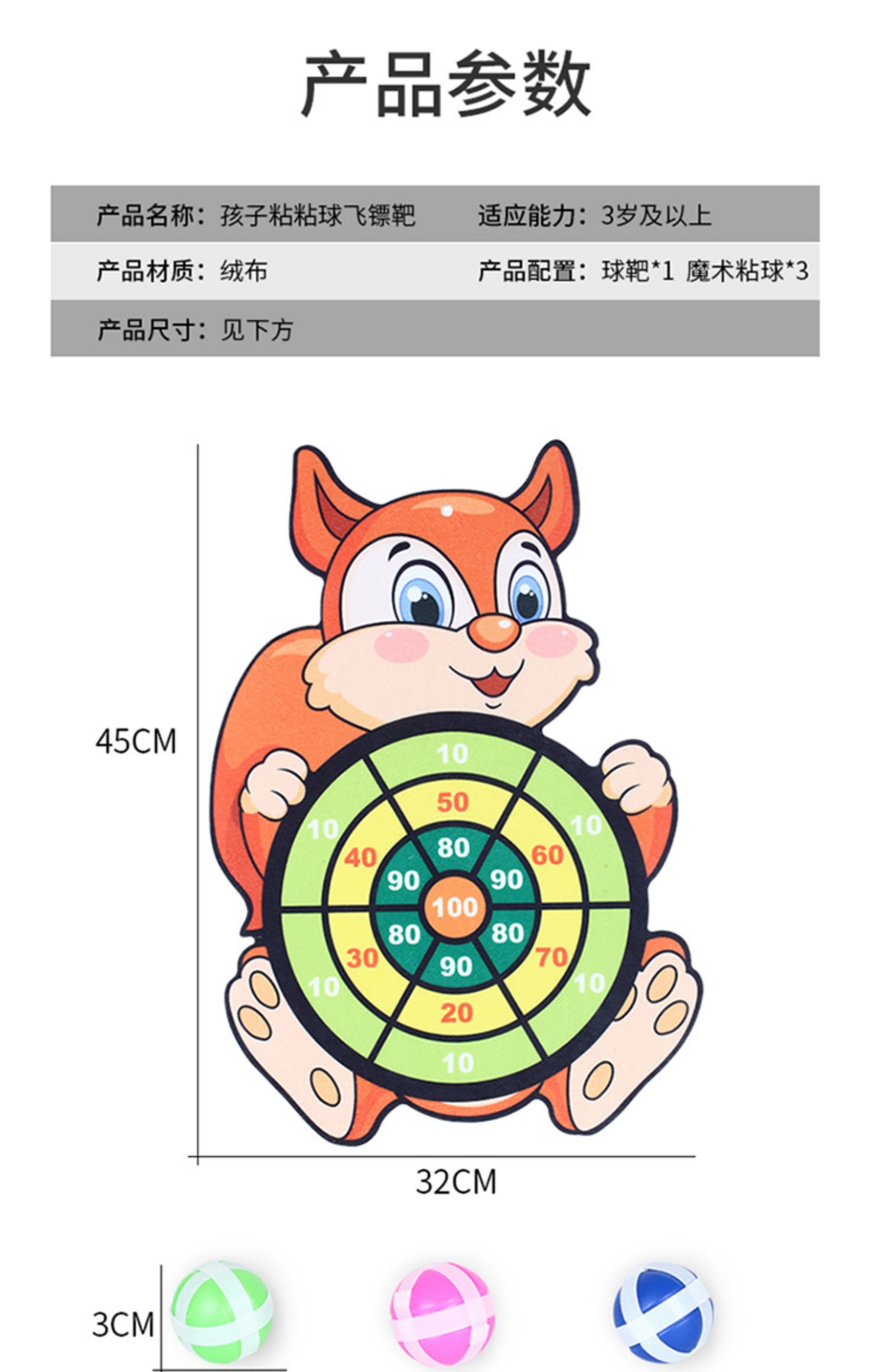 萌趣的卡通图案,色彩丰富,更吸引宝宝,加厚绒布粘性强,全魔术贴覆盖,让投抛更趣味,挂钩口设计易携带,益智早教,开发大脑!