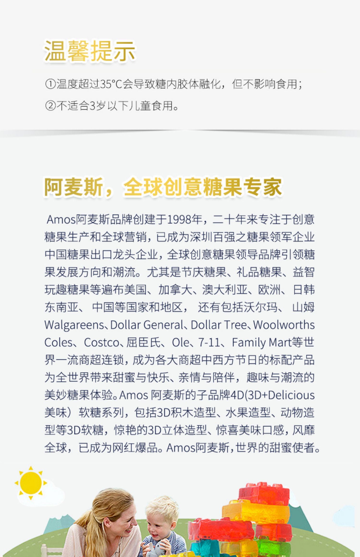 全球创意糖果品牌,热销欧美的阿麦斯4D积木果汁软糖,直营全球众多线下商超,国际品质保障,采用浓缩工艺,醇正果汁,超不一样的Q弹软萌,4种口味任选,好吃又益智,让童年有更多的创造力~