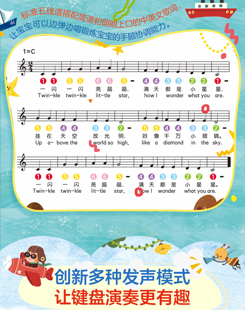 【乐乐趣旗舰店】弹钢琴唱儿歌,经典儿歌,多种演奏模式,采用精巧按键,锻炼宝宝的手指灵活度,中英双语儿歌,培养孩子的乐感和英语感。【赠运费险】