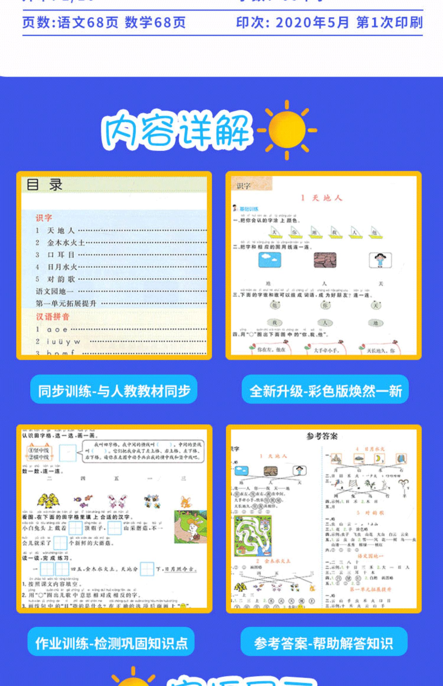 【全彩印刷,同步人教版课本】语文数学全2本,重点辅导。题型丰富,内容新颖。一课一练,加深基础。语文数学一起练,学习成绩节节高,轻松当学霸~
