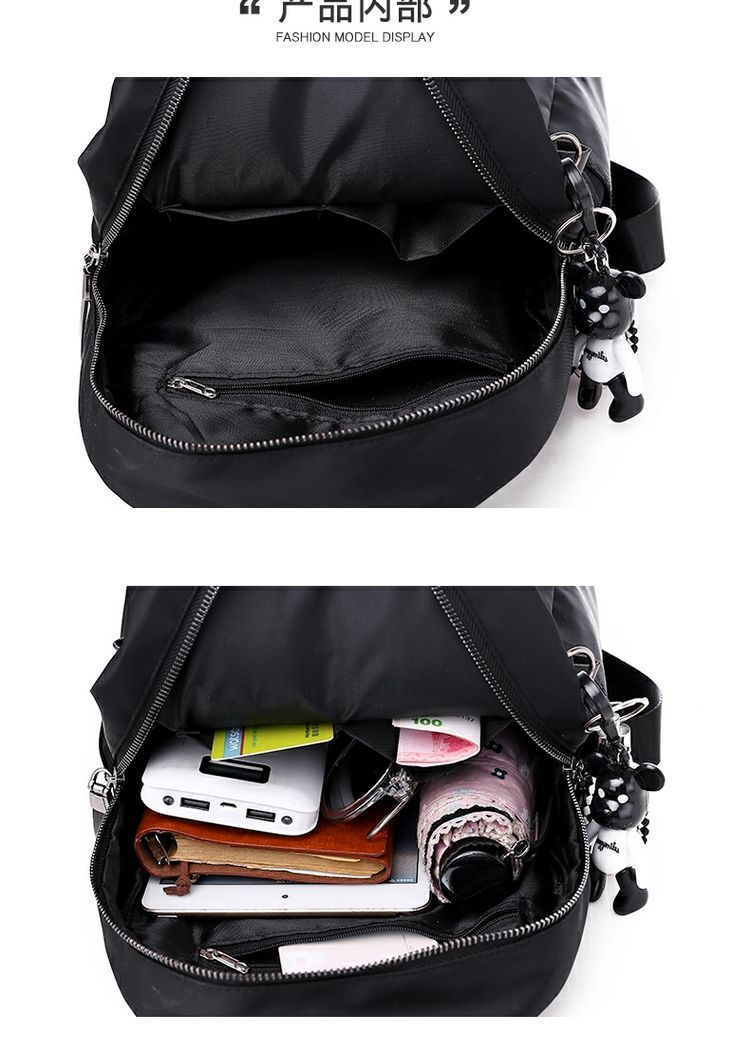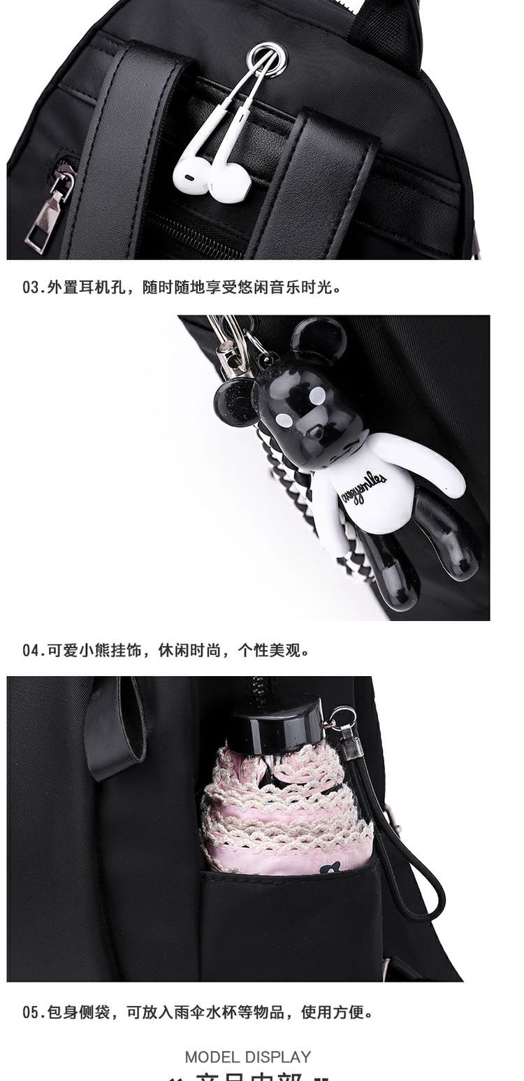 【好在哪里】大容量,透气减压背带,即使雨天时出行,也不用担心物品受水气的哦,外置耳机孔,听歌打电话也不怕丢东西啦,还送挂件哦!【赠运费险】