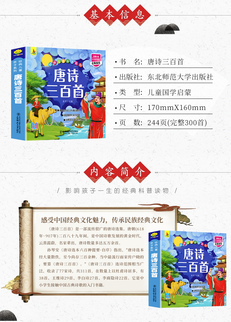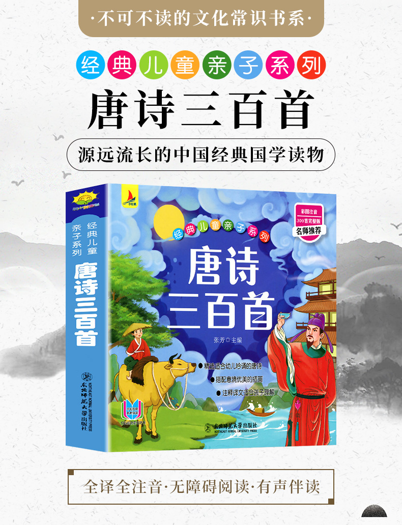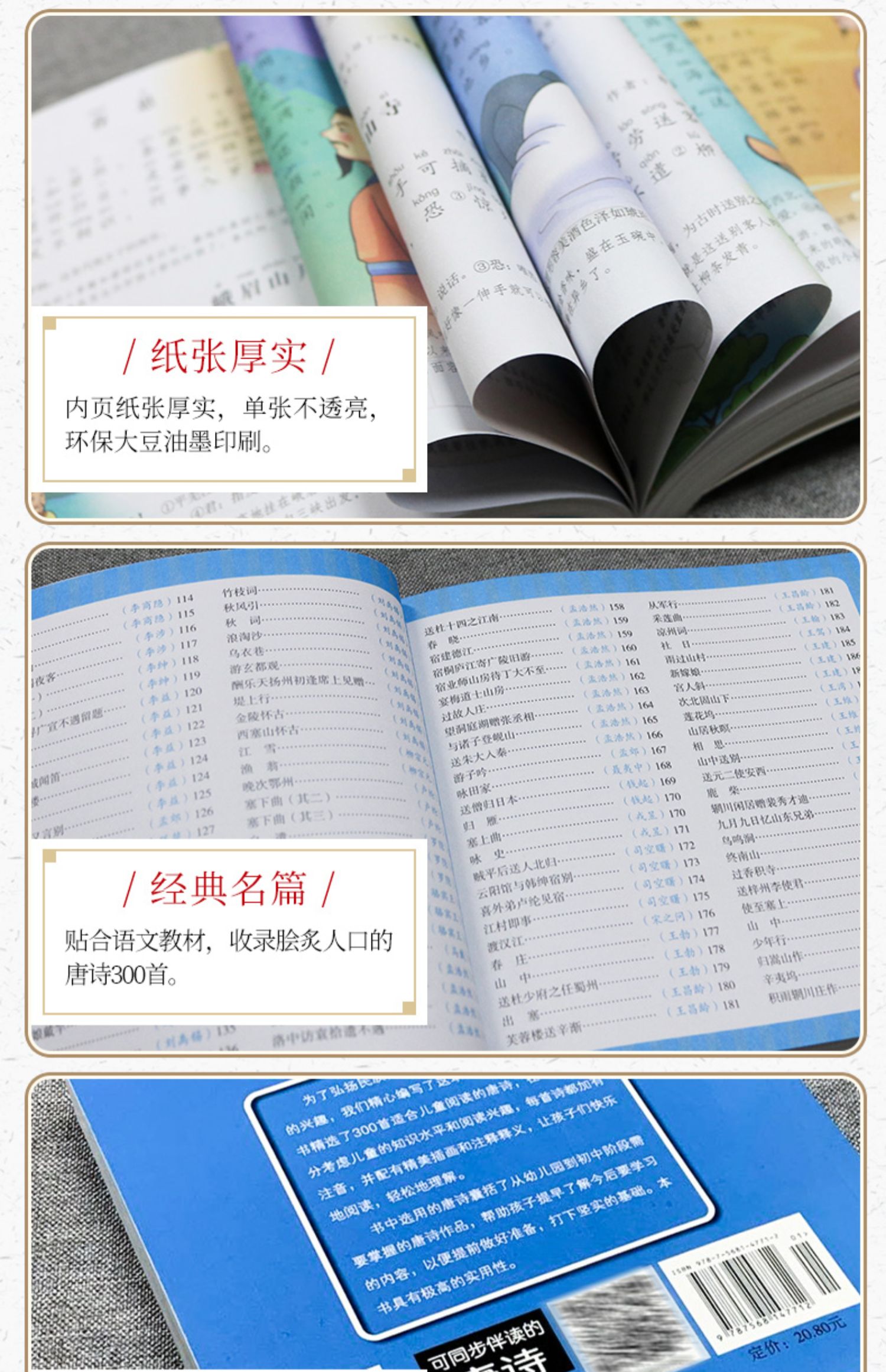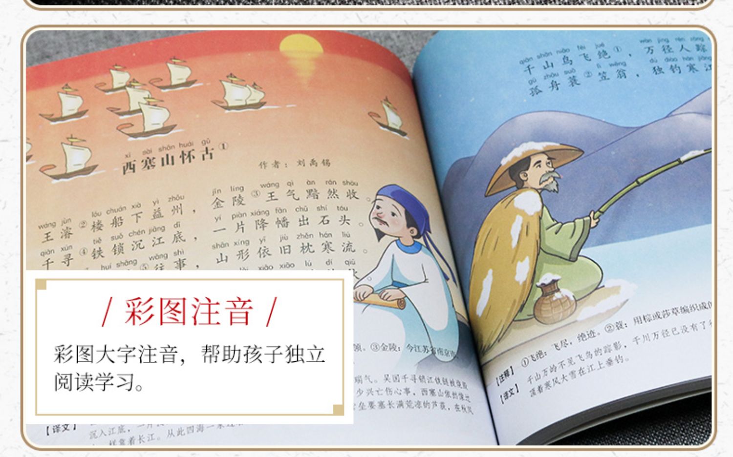 【超厚一本】儿童国学启蒙图书,唐诗三百首彩图注音版,完整300首。大字注音,译文详细,并配有精美插图,可有声伴读,幼儿园宝宝早教启蒙必备,小学生开学季必读课外读物,宝妈必备睡前亲子故事书。