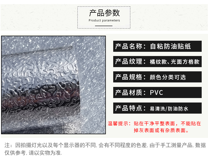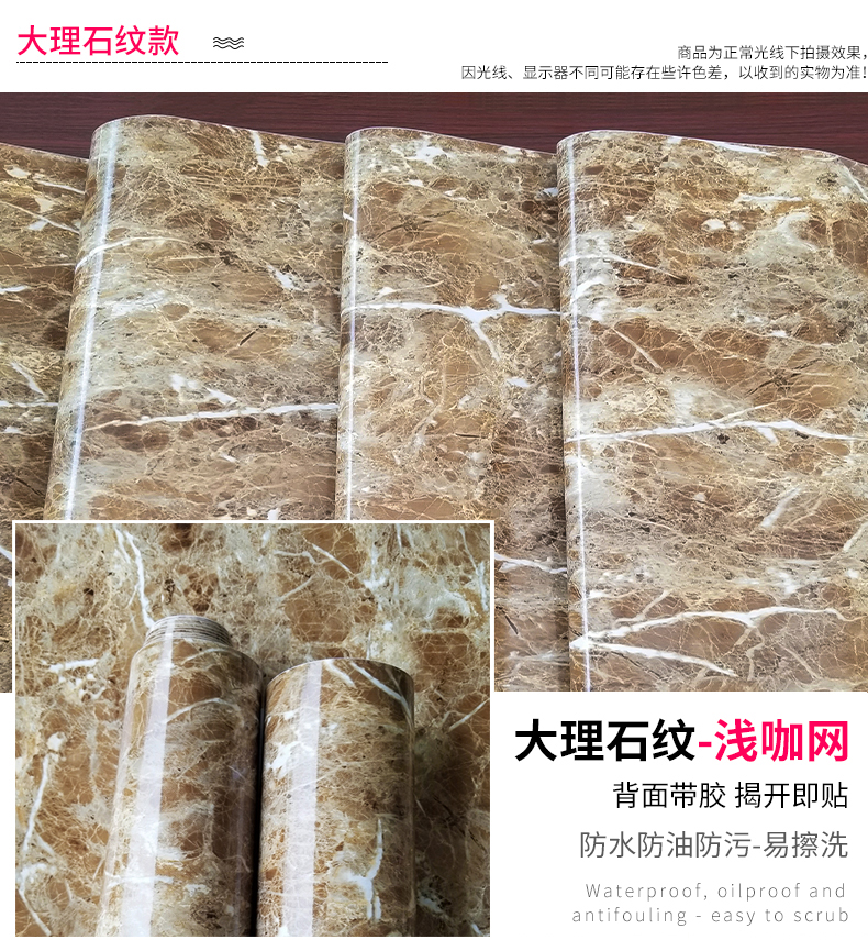 背面带胶,方便粘贴,防水、防油、耐高温……美味佳肴从干净漂亮厨房做起!另外还有大理石纹等多个花色可选~~~
