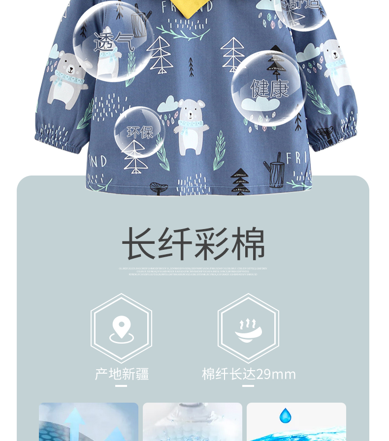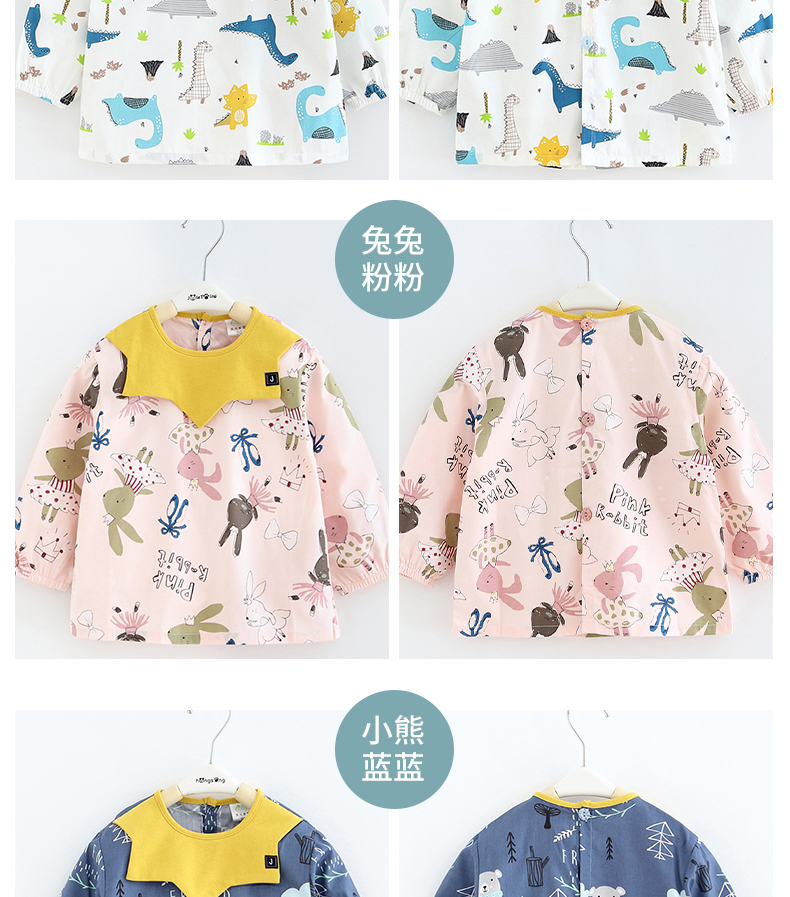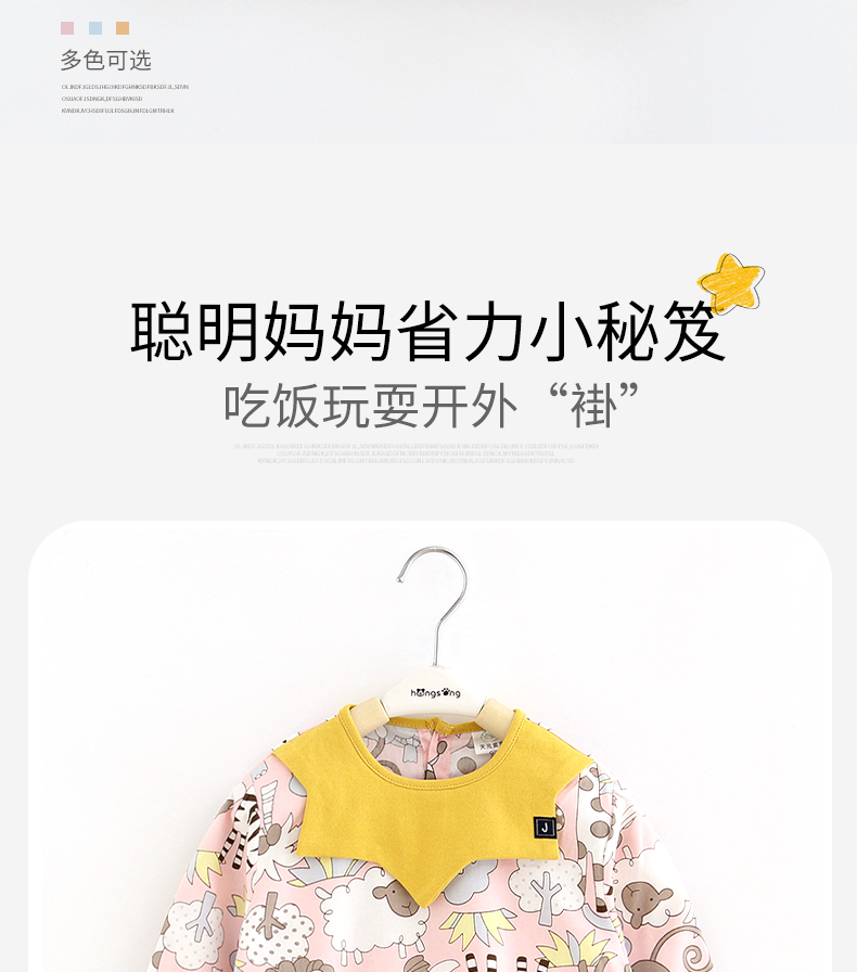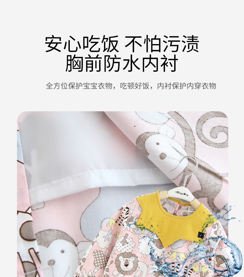 【4.9高评分】细腻饱满纯棉面料,舒适透气,胸前防水内衬,安心吃饭,不怕油污,聪明妈妈省力小秘笈,吃饭玩耍开外“褂”
