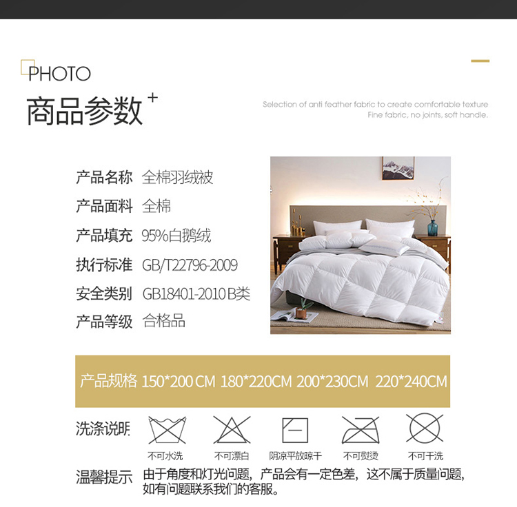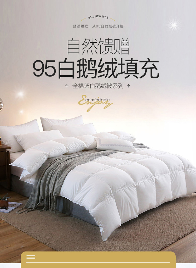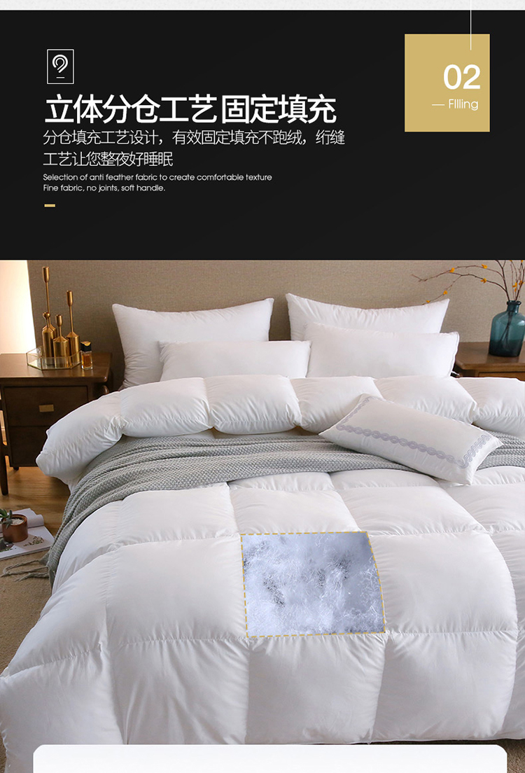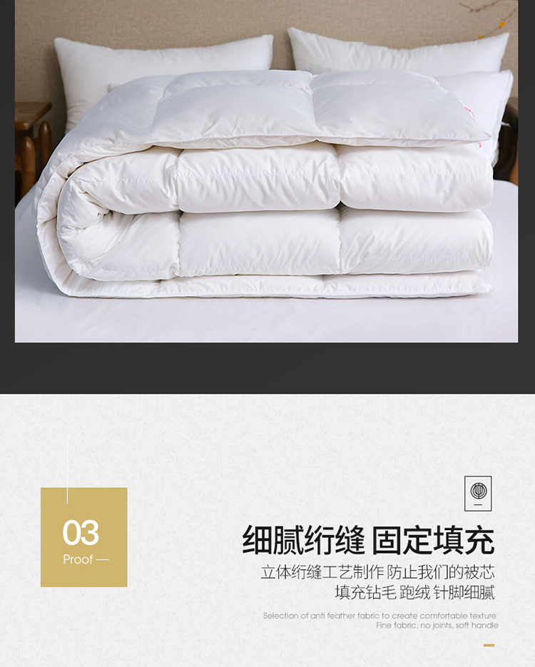 【罗霓欧】羽绒被吸湿透气,有效防钻绒,噪音分贝极小,专注羽绒家纺,天然选材绒填充,羽毛密而厚实,洁白光亮,纯生态洁净羽绒。方格充绒【赠运费险】