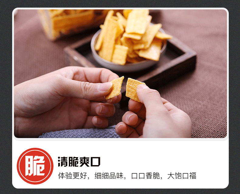 看得见的美食,精选好料,传统手作!有料有味才会更好吃,脆香脆香的,金黄颜色,清脆可口,口感十足;咔、咔、咔、让你一吃就脆上瘾的味道,忘不了的美味~