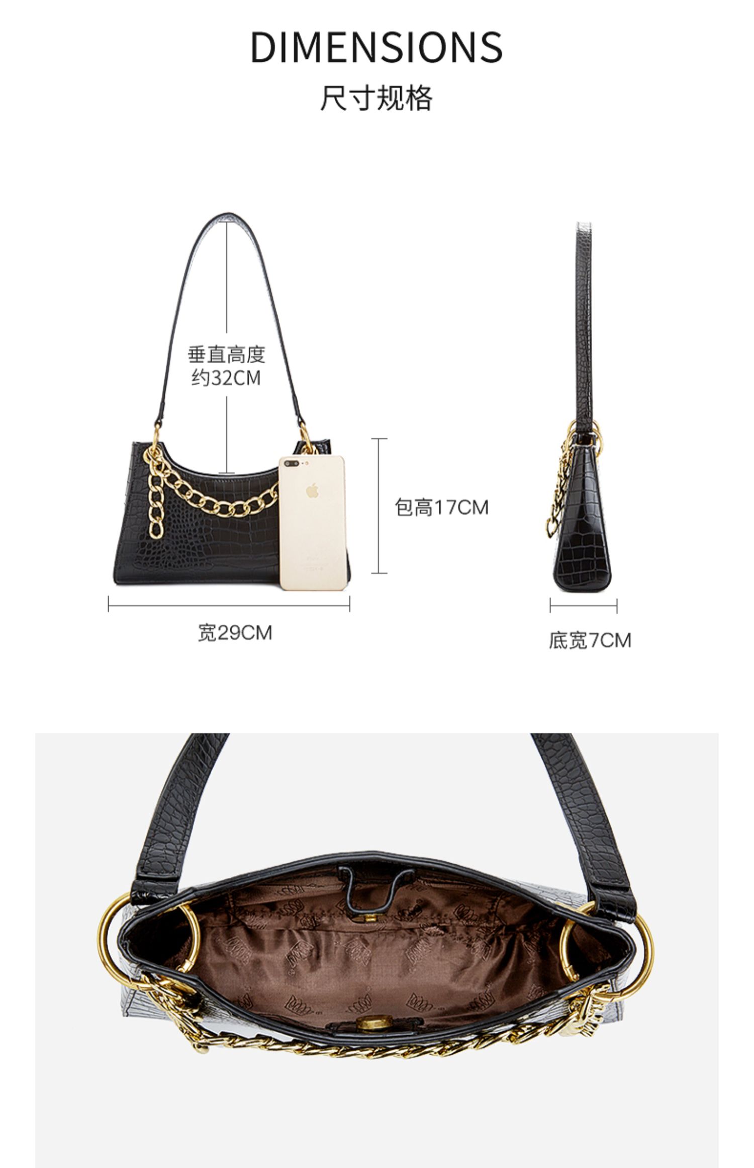鳄鱼纹腋下包,法式时髦精。鎏金色五金点缀,柔韧手提不勒肩,轻松搭出高级感。拎上TA,你就是这条街chao美的画报