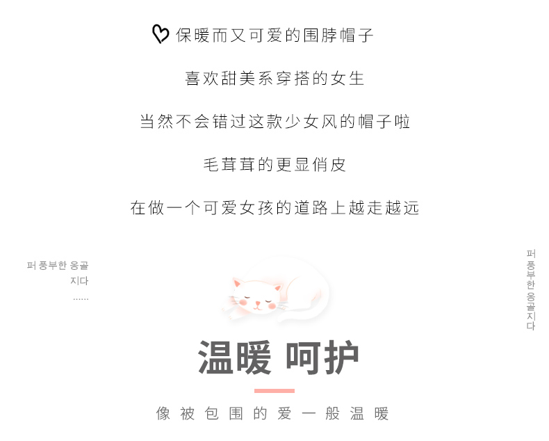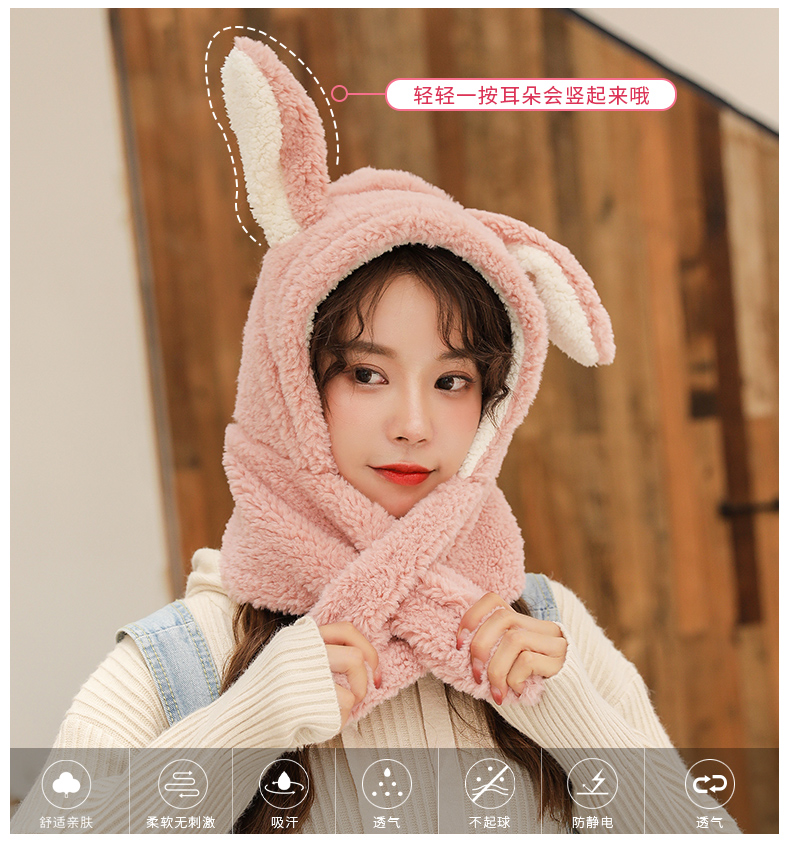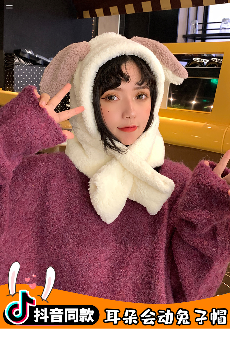 保暖又可爱的围脖帽子,喜欢甜美系穿搭的女生,当然不会错过这款少女风的帽子啦,毛茸茸的更显俏皮,抖音超火,捏一下耳朵会动,萌萌哒!