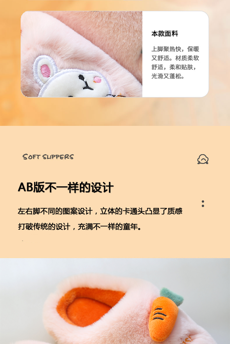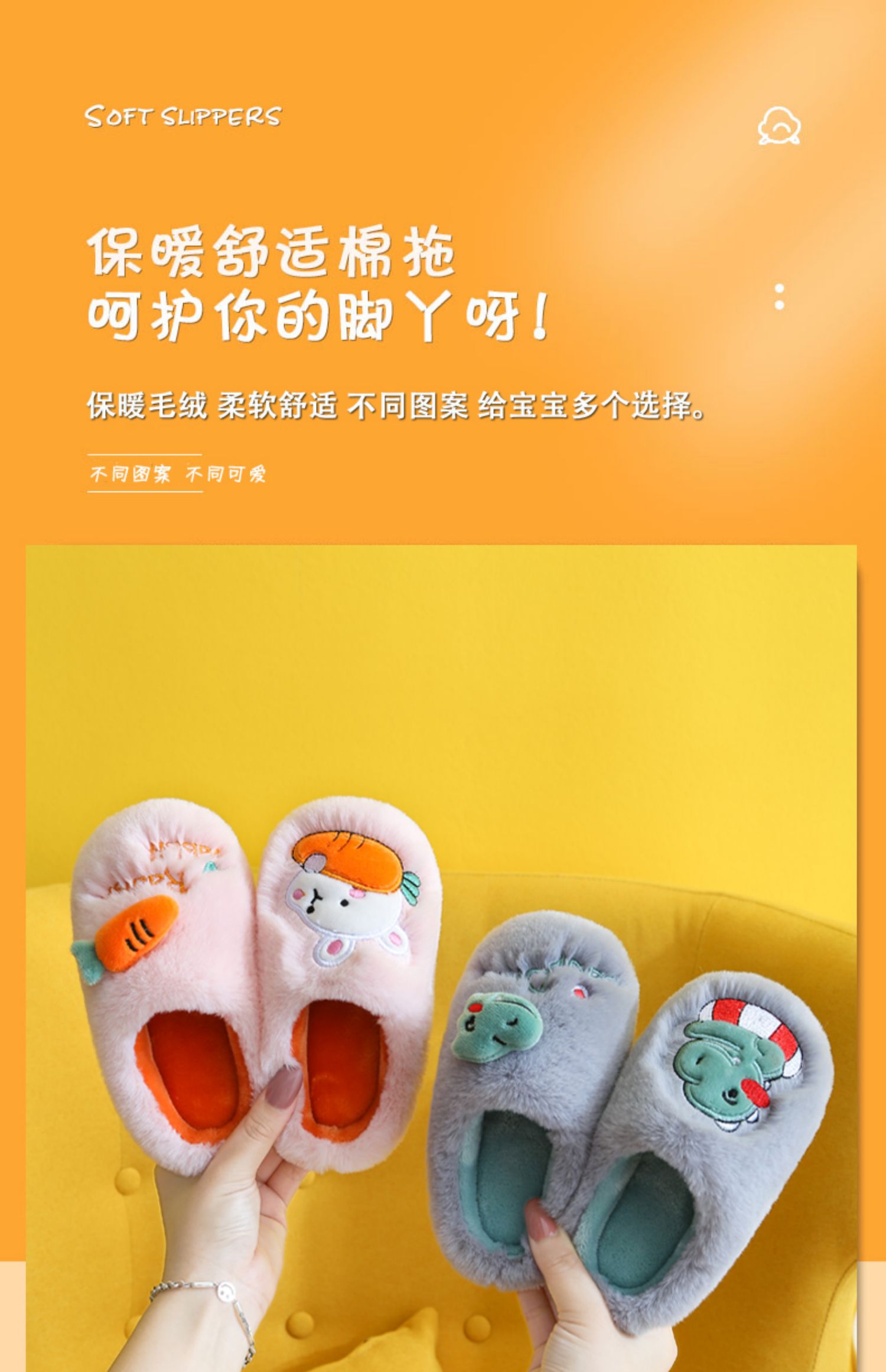 新款儿童棉拖鞋女童秋冬,室内家用防滑,宝宝卡通可爱男童小孩毛拖鞋。