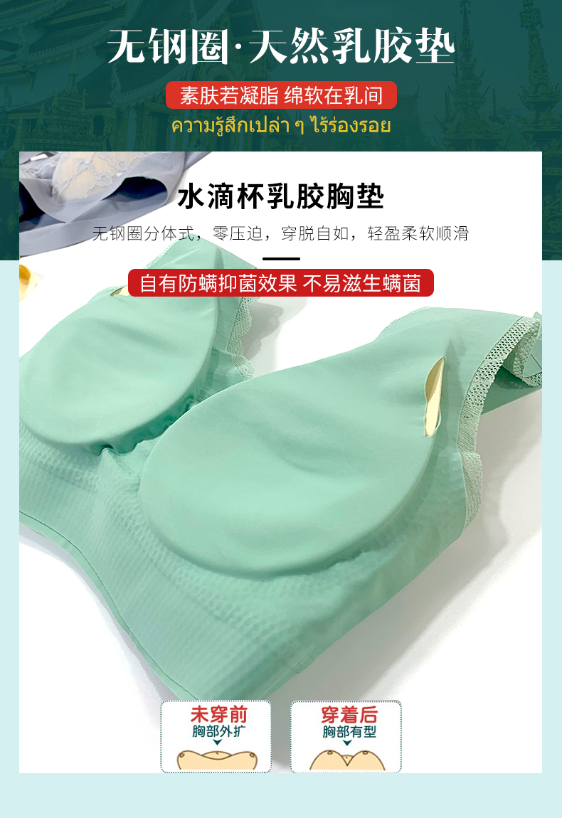 泰国乳胶内衣套装,无钢圈分体式,零压迫,防下垂,橡树原液,高弹柔滑舒,适贴肤运动聚拢防抖+天生抗螨,贴身无痕,固定胸型不甩动,诱人的秘密,提升女人气质的神器!【正品保证】