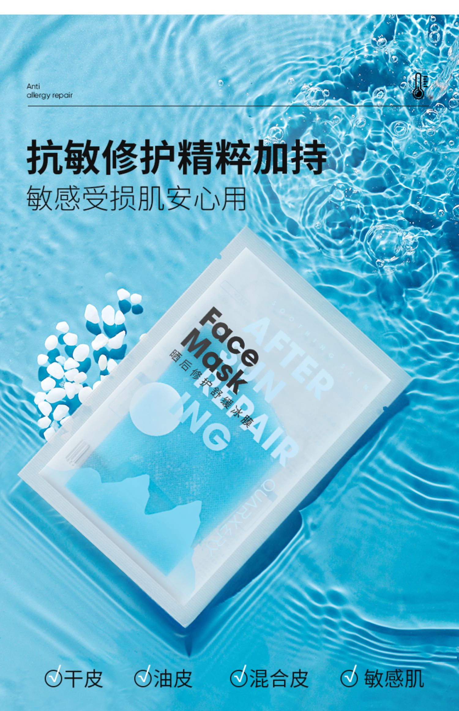 泉兮冰膜深层补水面膜,晒后修复,补水保湿,沁润肌肤,水盈滋养,多国专利认证养肌成分,降暑醒肤!赠送运费险!