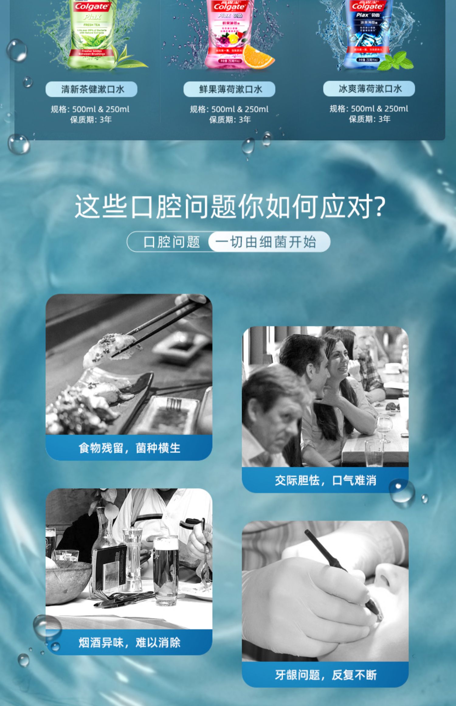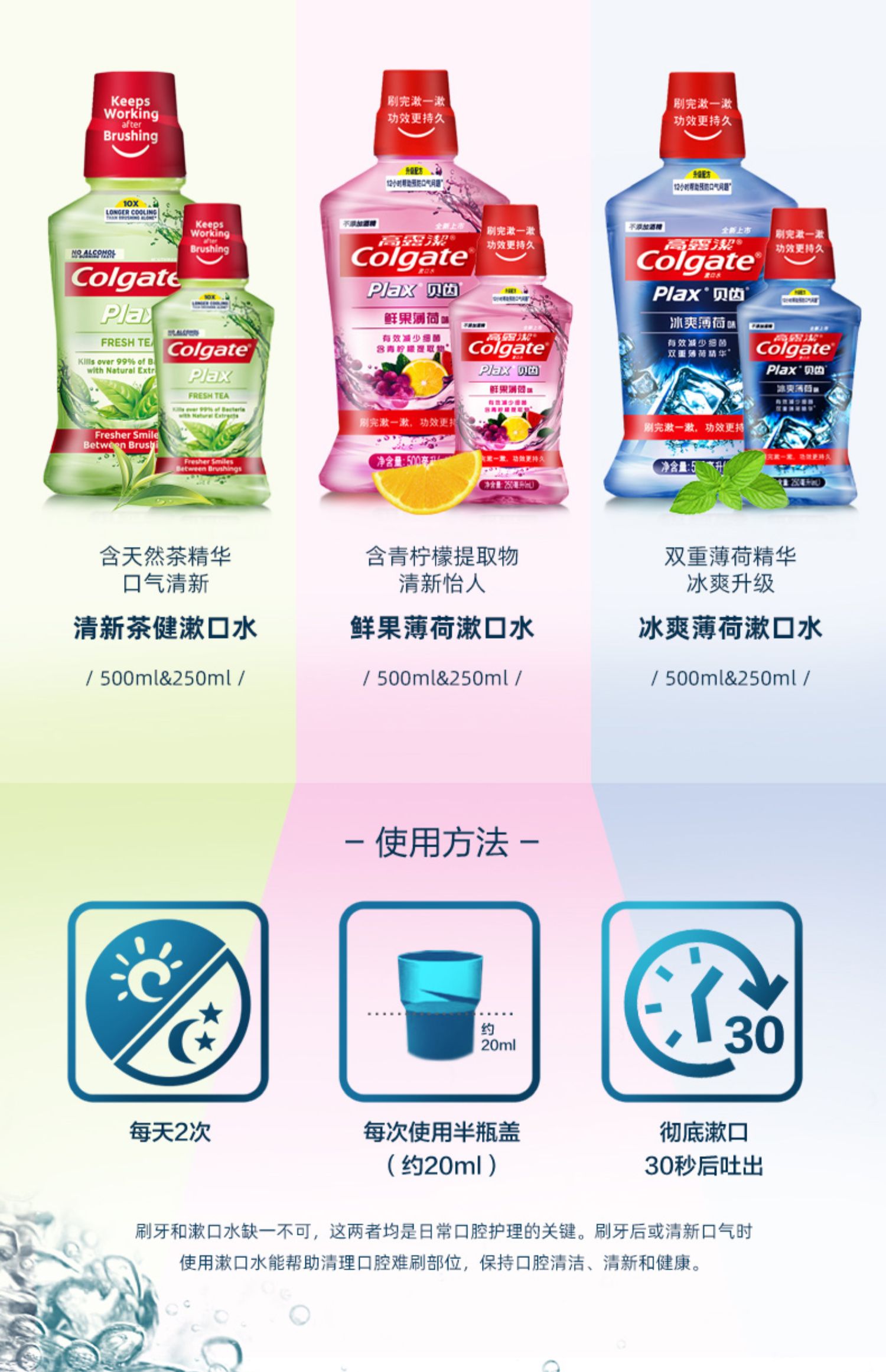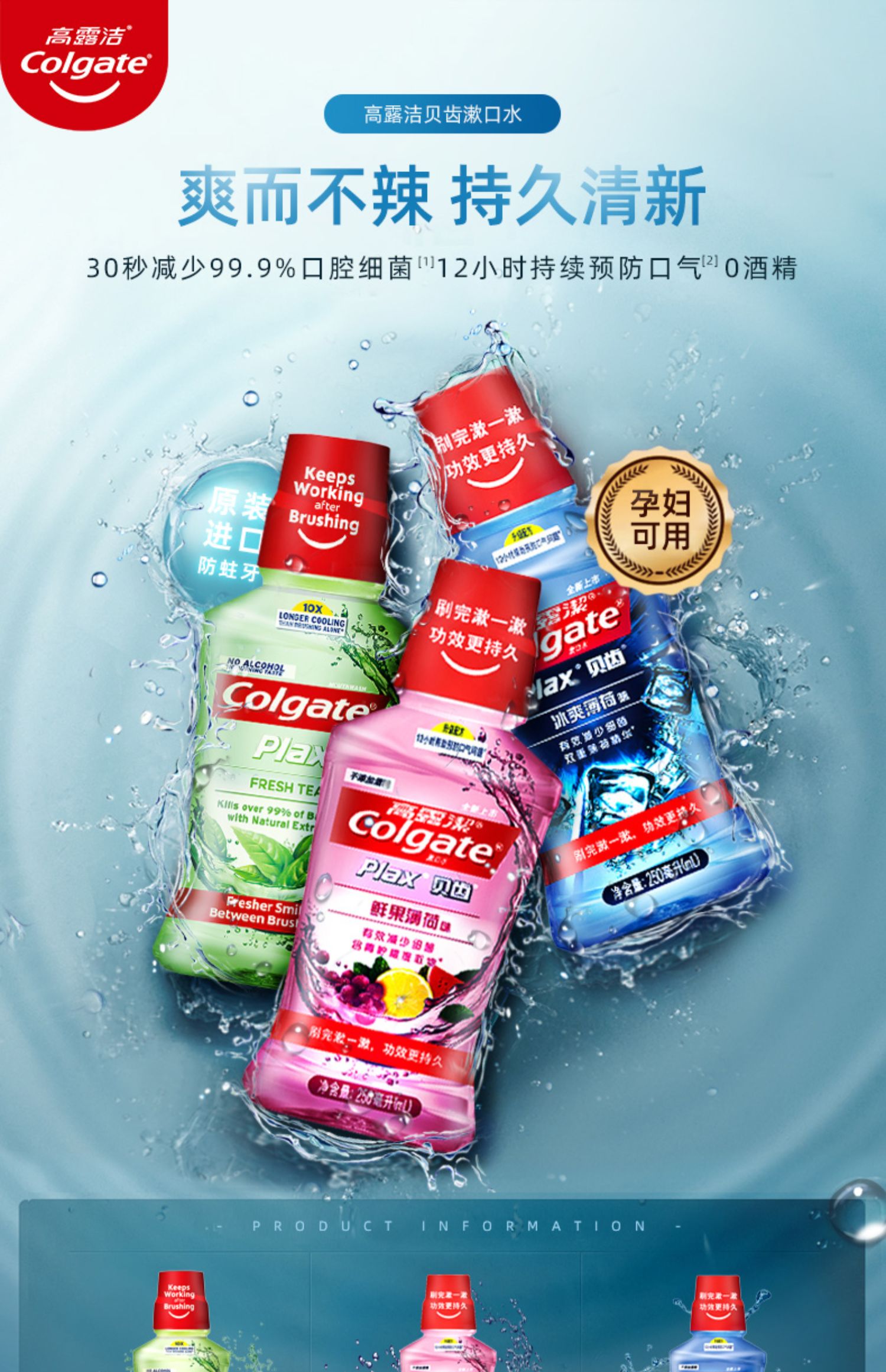 高露洁专业口腔护理品牌,独特FX冰感因子,释放超10倍冰爽力!0酒精不刺激,果味清新不辣嘴,刷完漱一漱,预防蛀牙,12小时长效清新口气,让你笑容充满自信【赠运费险】
