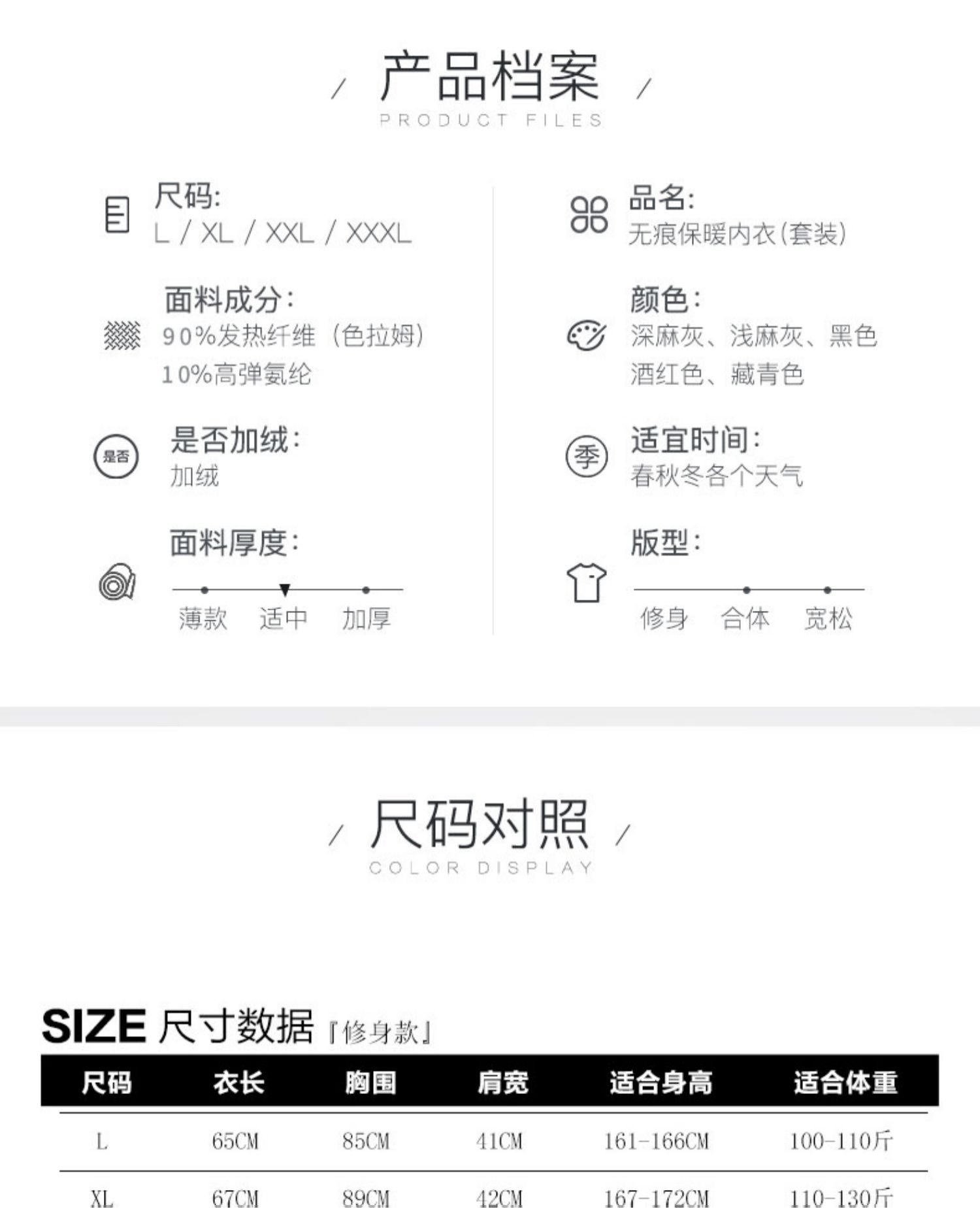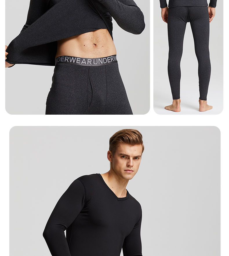 秋冬无痕自发热保暖内衣套装,表面磨毛,无痕剪裁,里层细绒,不易磨损,不易脱线,不掉色,不起球,吸湿排汗,温暖加倍,时尚修身,展现男性魅力!【赠运费险】