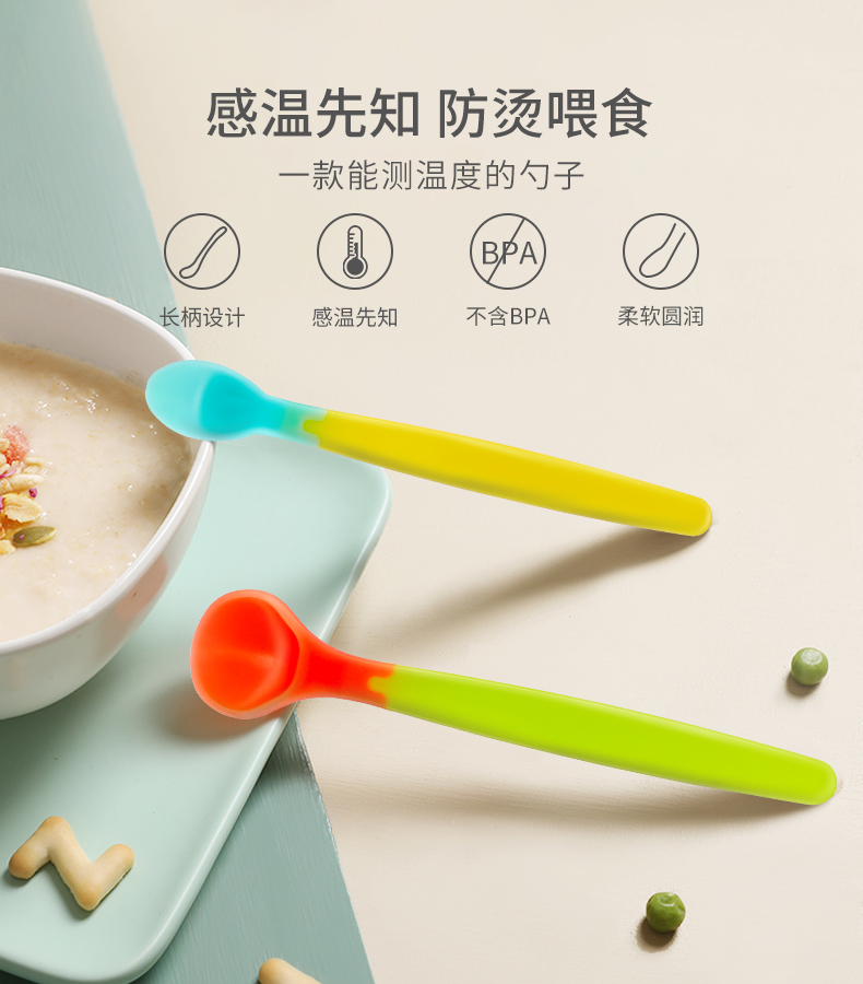 家有调皮宝宝,喂食劳神费力~超可爱的糖果色感温变色勺,大于40℃匙头变为白色,Q弹软硅胶不伤口腔,增加宝宝食欲,让孩子主动爱上吃饭!