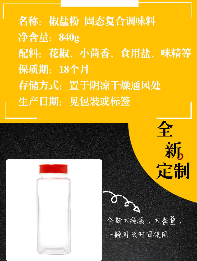 【送调料勺】椒盐粉瓶装家用烧烤料,易操作成功率高,适用于多种美食。粉质细腻,入味快,挑动你的味蕾!甄选原料,香气浓郁!色泽诱人,健康美味