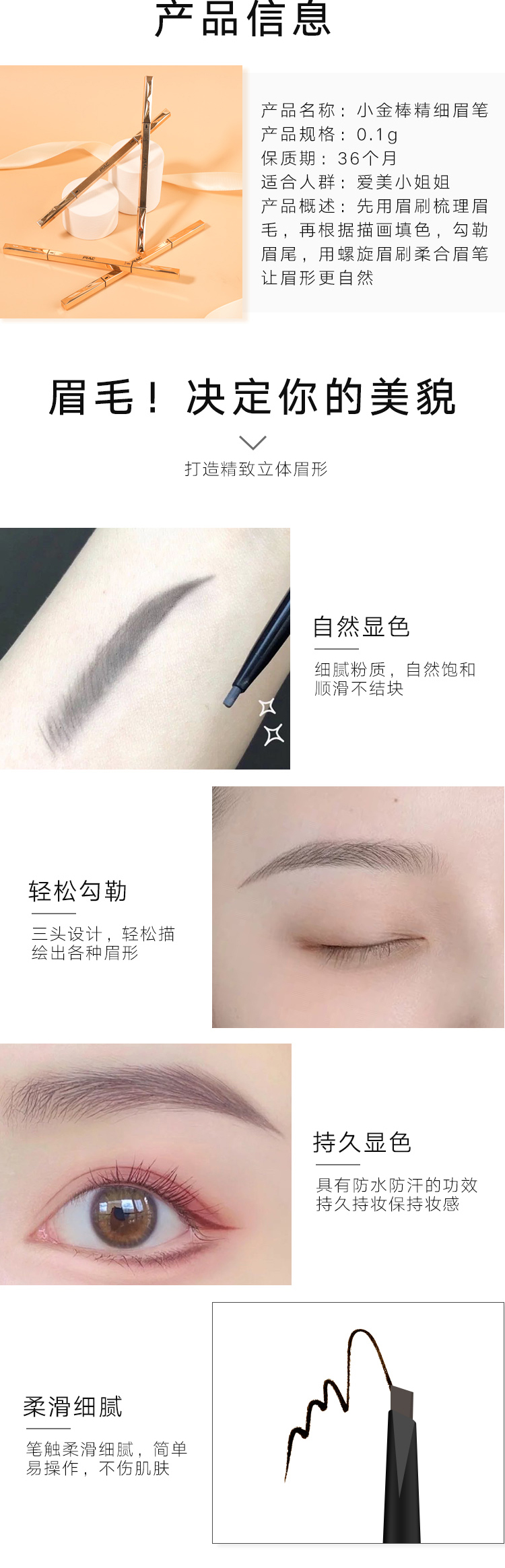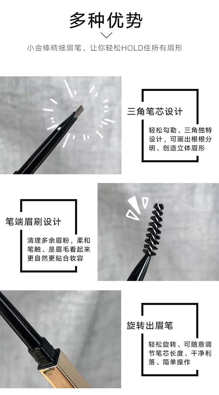 李佳琦推荐,小奥丁小金筷眉笔,色彩饱满持久不脱妆,不润不干,轻盈出色哑而不干,上嘴丝滑不显唇纹