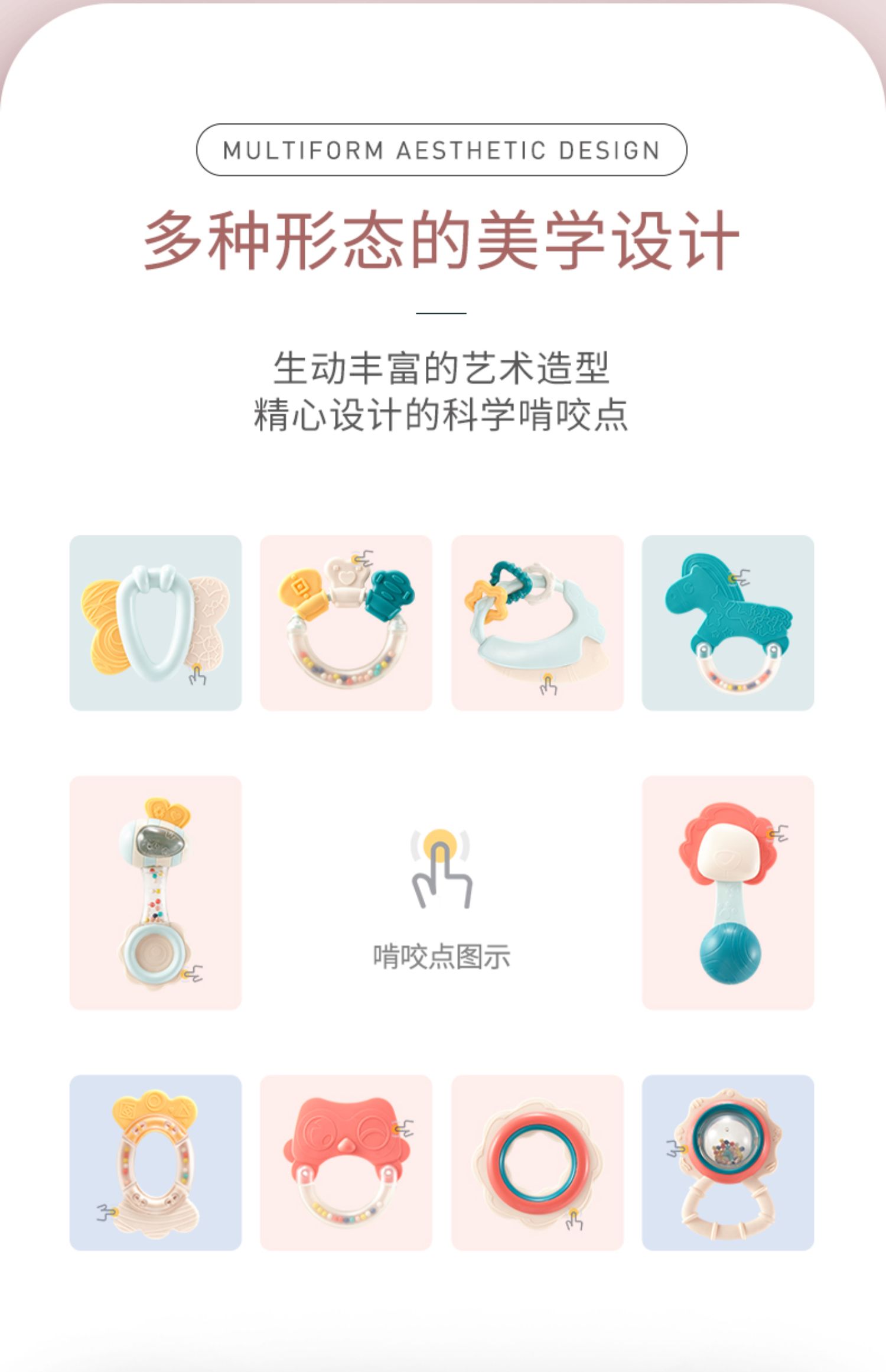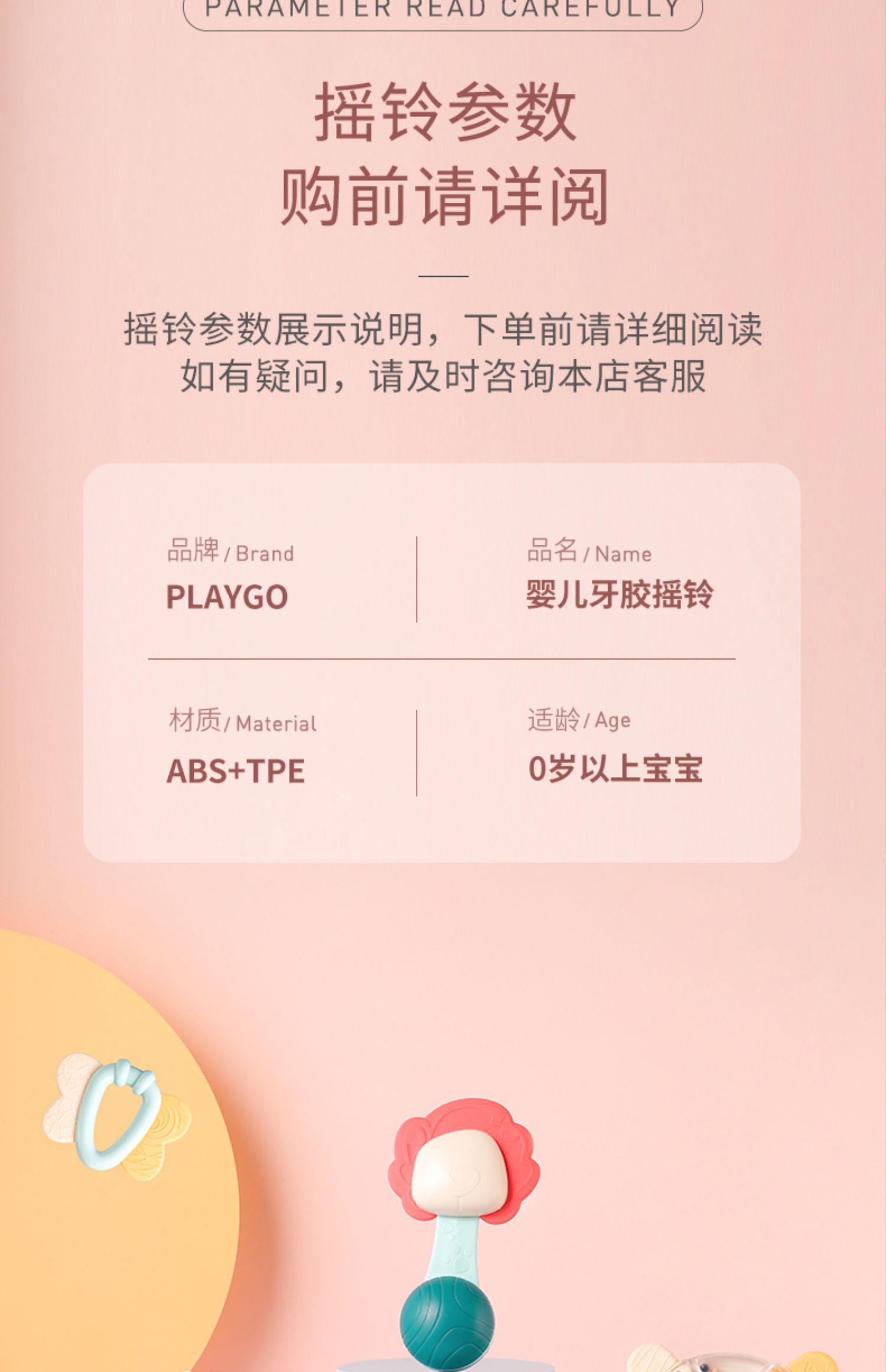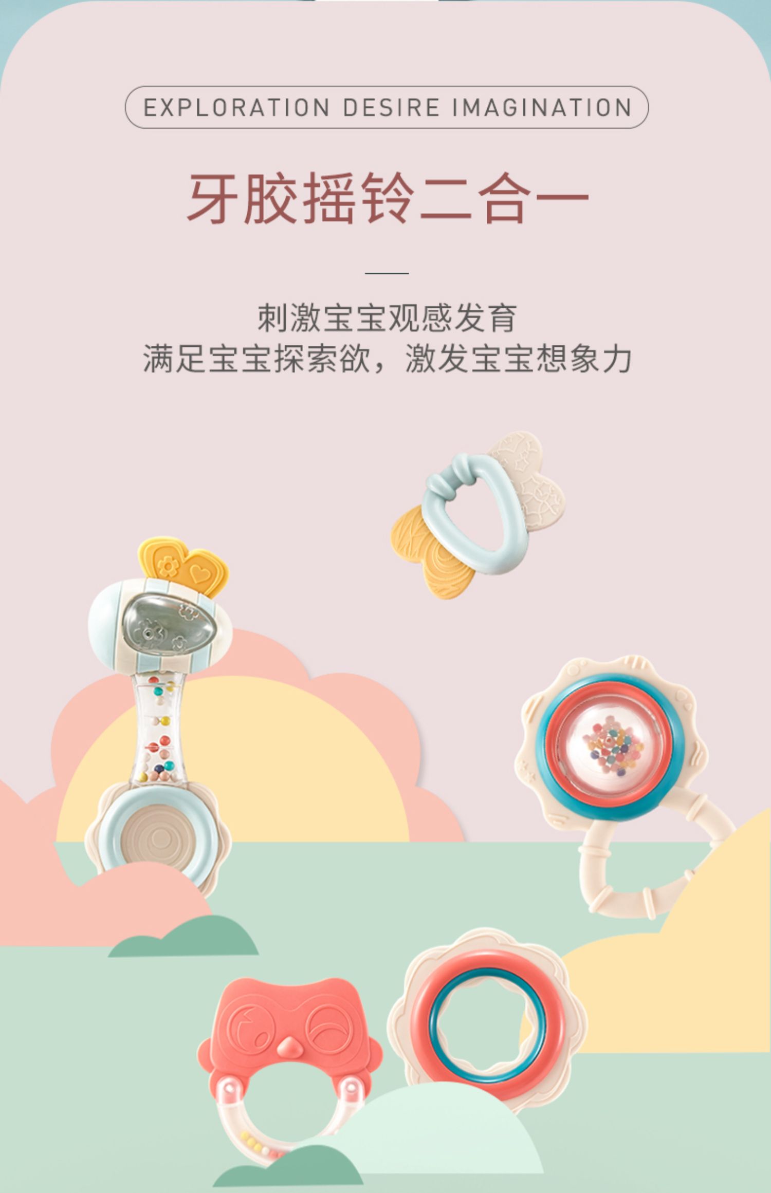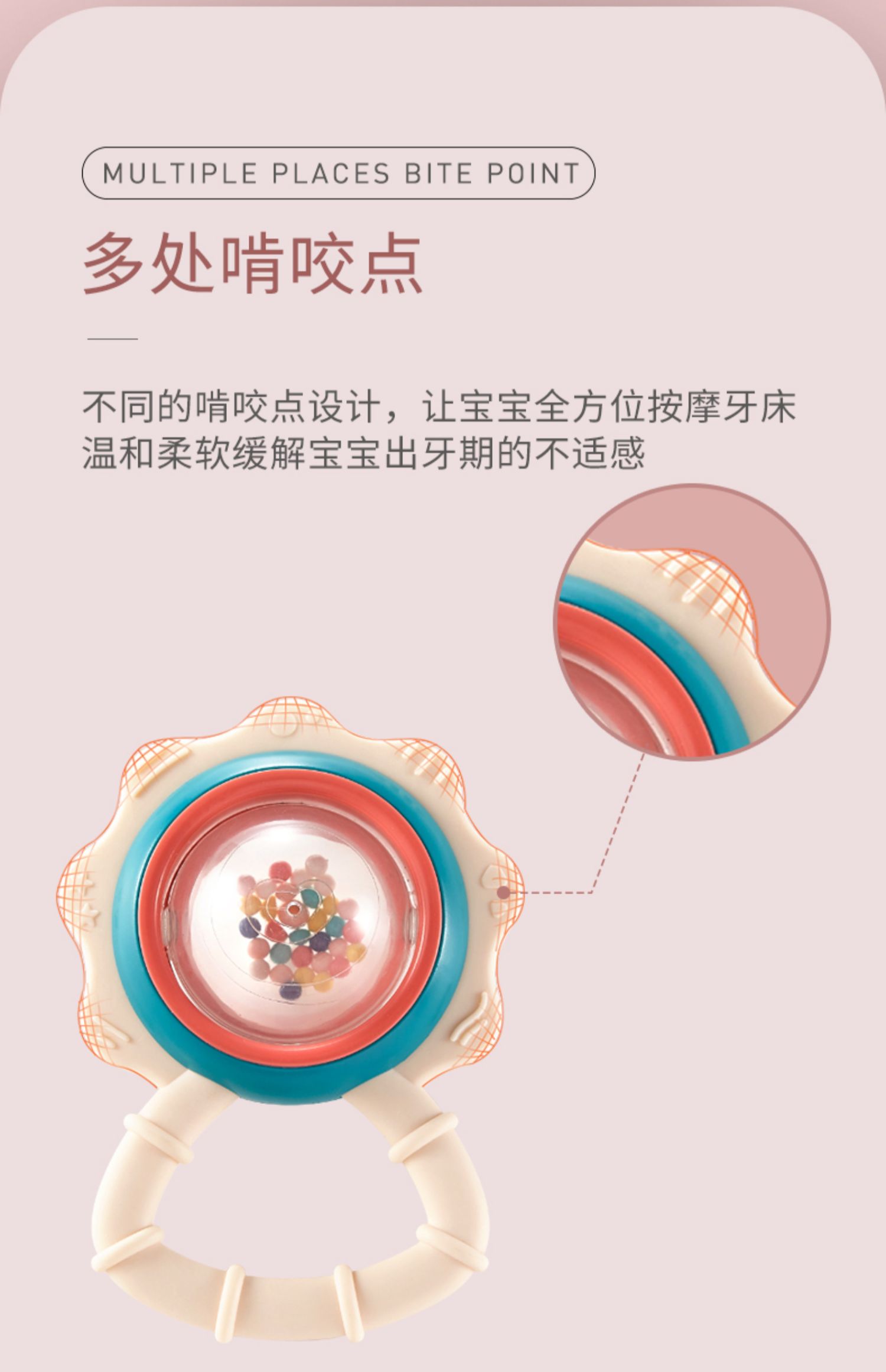 礼盒包装!宝宝见面出生礼!当选安全,牙胶摇铃二合一,环保材质可水煮消毒!抓握锻炼,促进宝宝协调发育。悦耳铃音,玩不厌的小玩具。可按摩宝宝牙床,咬不烂的QQ糖哦!