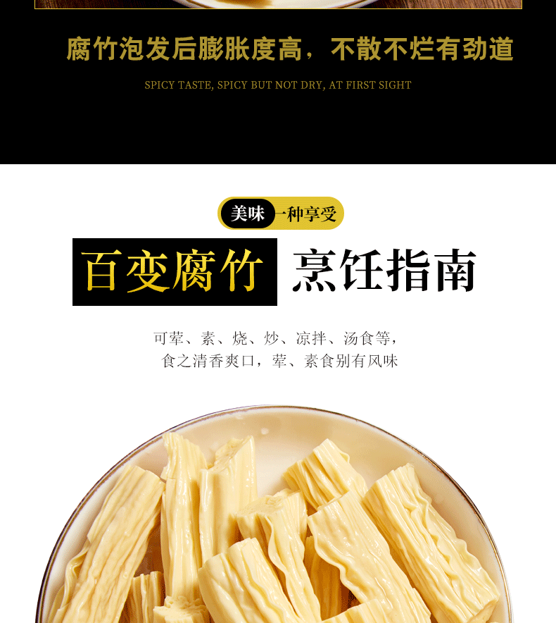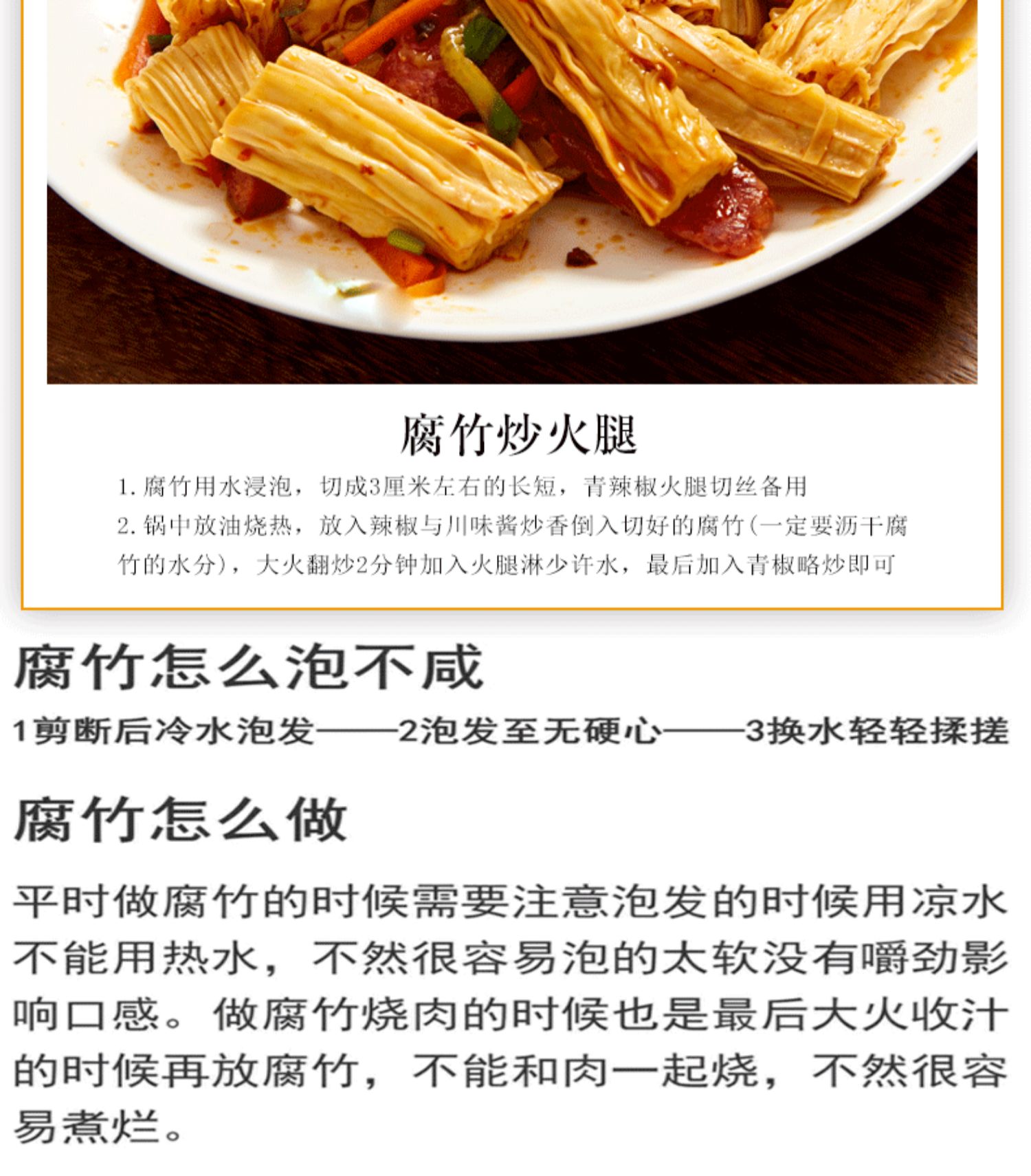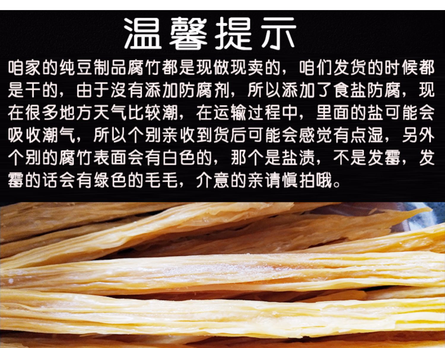 吃货必备的腐竹干货!超值500g~甄选上好大豆,无添加,传统工艺!更易泡发,汁水饱满而不腻,一口过足瘾,火锅炒菜都是极好的,拍2件送粉丝一袋。