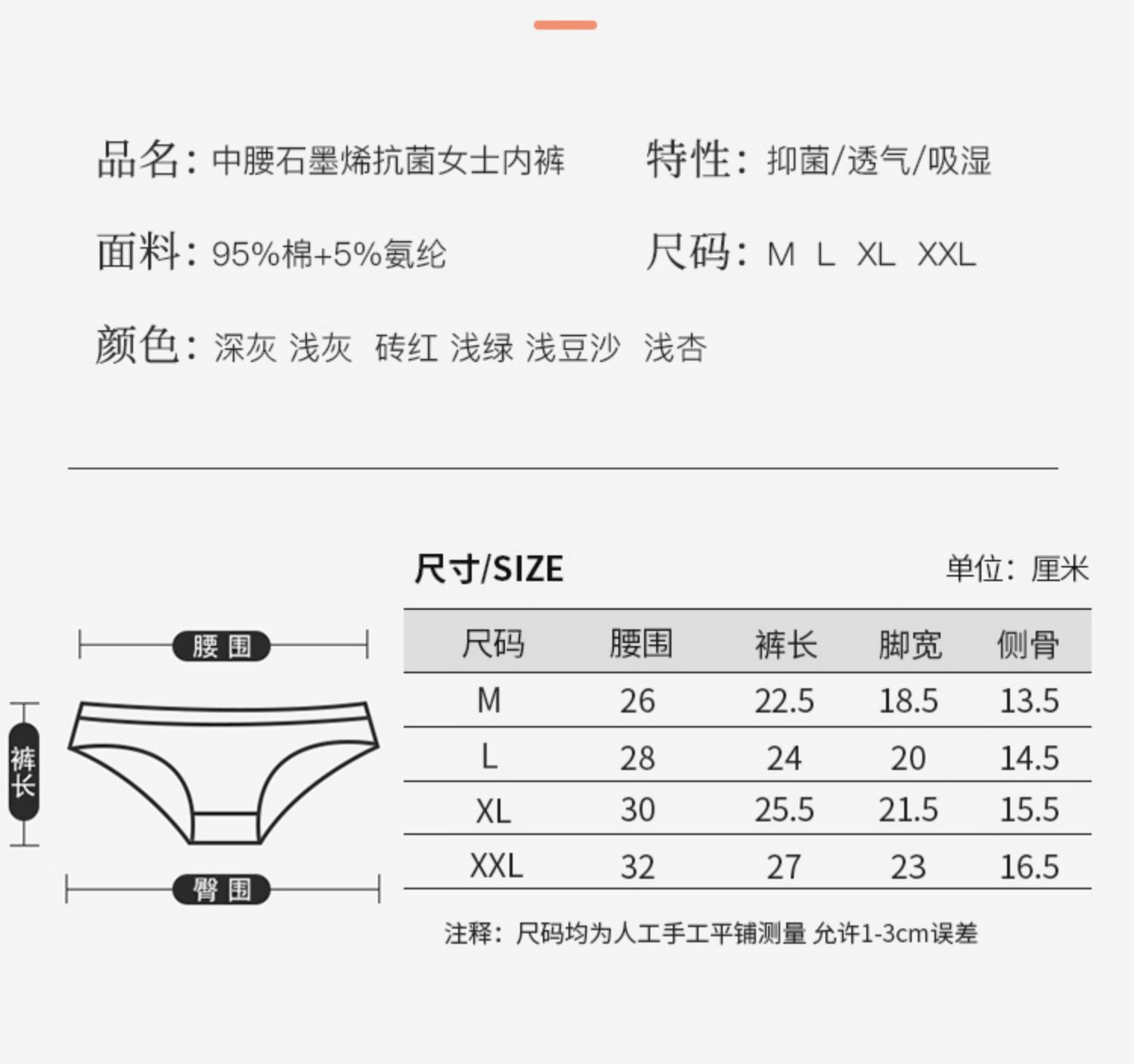 石墨烯抗菌抵挡,加快排湿,无痕更舒适,不夹臀,不夹腰,360°包臀设计,自由拉伸不紧勒~