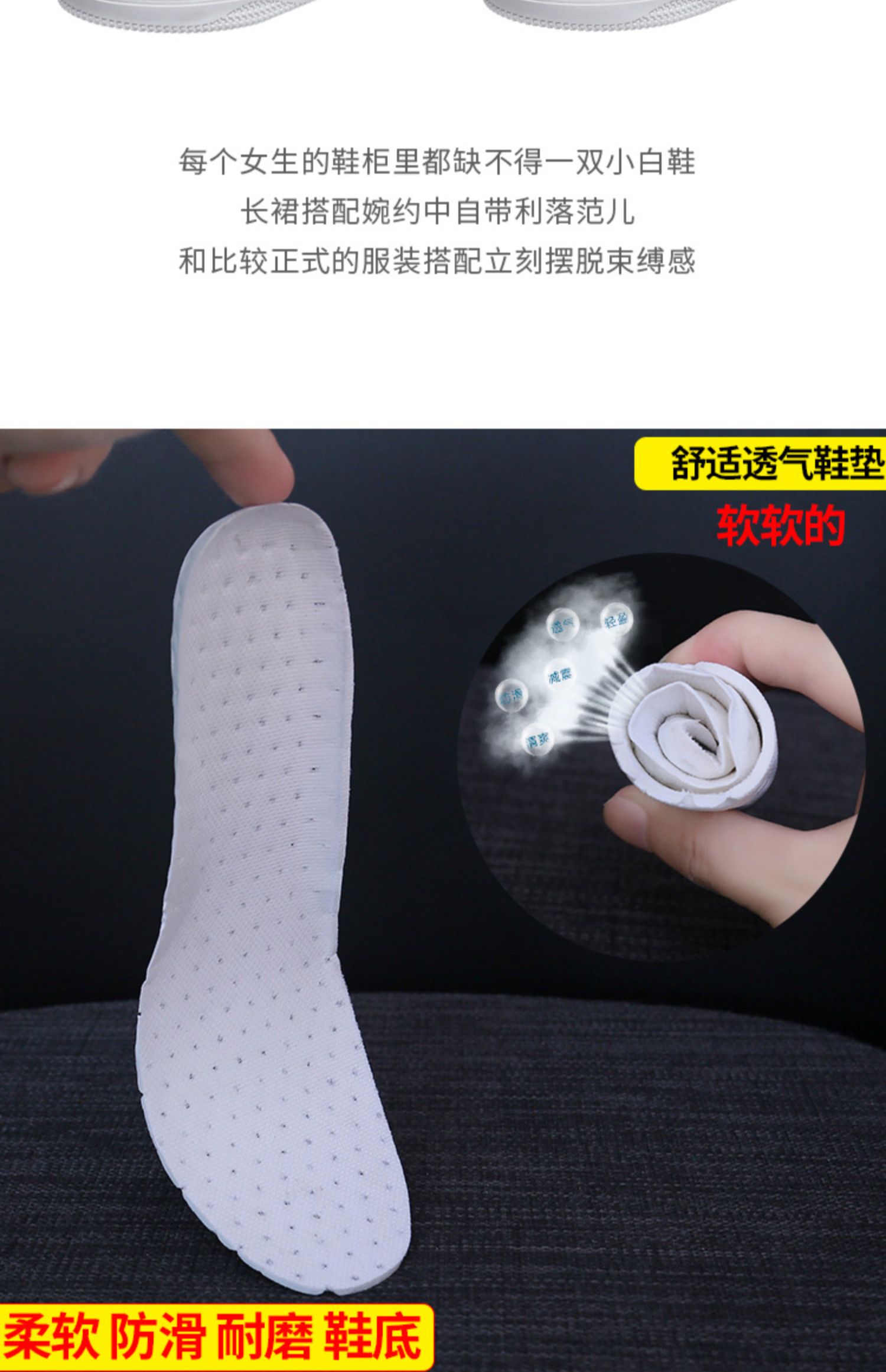 【小仙女必备】细节决定好质量■软底、软面,任意弯折不变形,穿着轻巧舒适■防滑鞋底,软弹耐磨■加厚透气孔鞋垫,透气不闷热,减震缓压【品质保证】