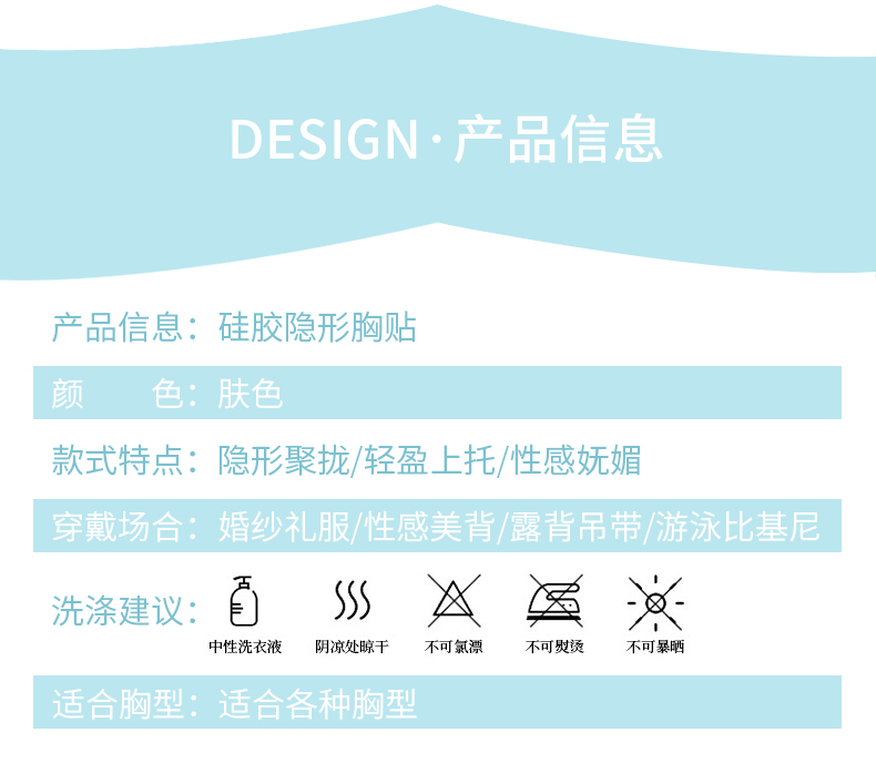 胸贴隐形内衣、蜂巢透气杯,不闷汗,无痕透气,防水耐粘,娇点保护,婚纱、礼服、休闲、游泳都适用,深V加倍聚拢、舒适面料、冰细丝滑。收获爱情的喜悦~