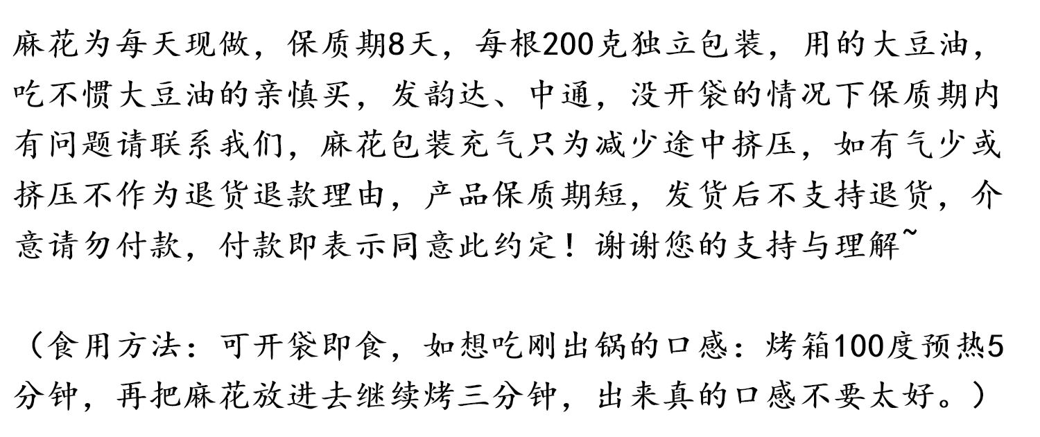 【3根装】花手臂粗,独立包装,阳光小麦粉精制而成,植物油炸制,古法秘制原汁原味。豆沙馅甜而不腻,外酥里嫩非常好吃。