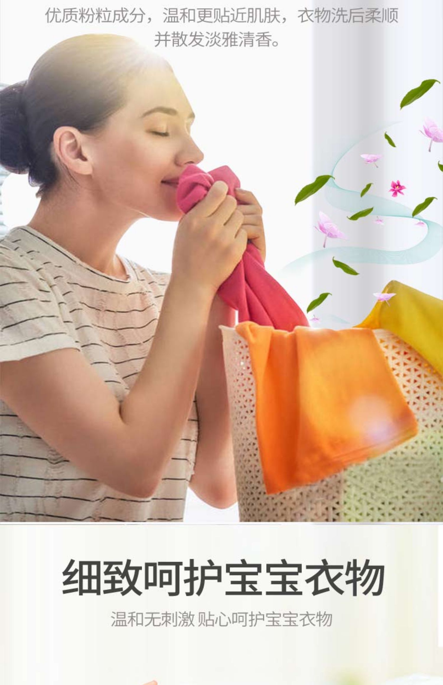 洗衣新“净”界!更温和不伤手的天然皂粉!天然椰子油生产,不含荧光剂,母婴衣物都可用!机洗,手洗都OK~长效清香,强效去黄增艳,去菌除螨,洗完衣服更柔顺不刺激皮肤!
